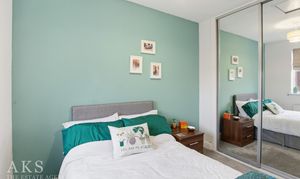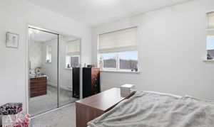 On the top floor, the main bedroom has built‑in mirrored wardrobes and an en‑suite creating a self-contained, private space to relax and unwind. The second bedroom is another generous double with built‑in wardrobes, and the main bathroom next door is modern and fresh, perfect for guests or family.