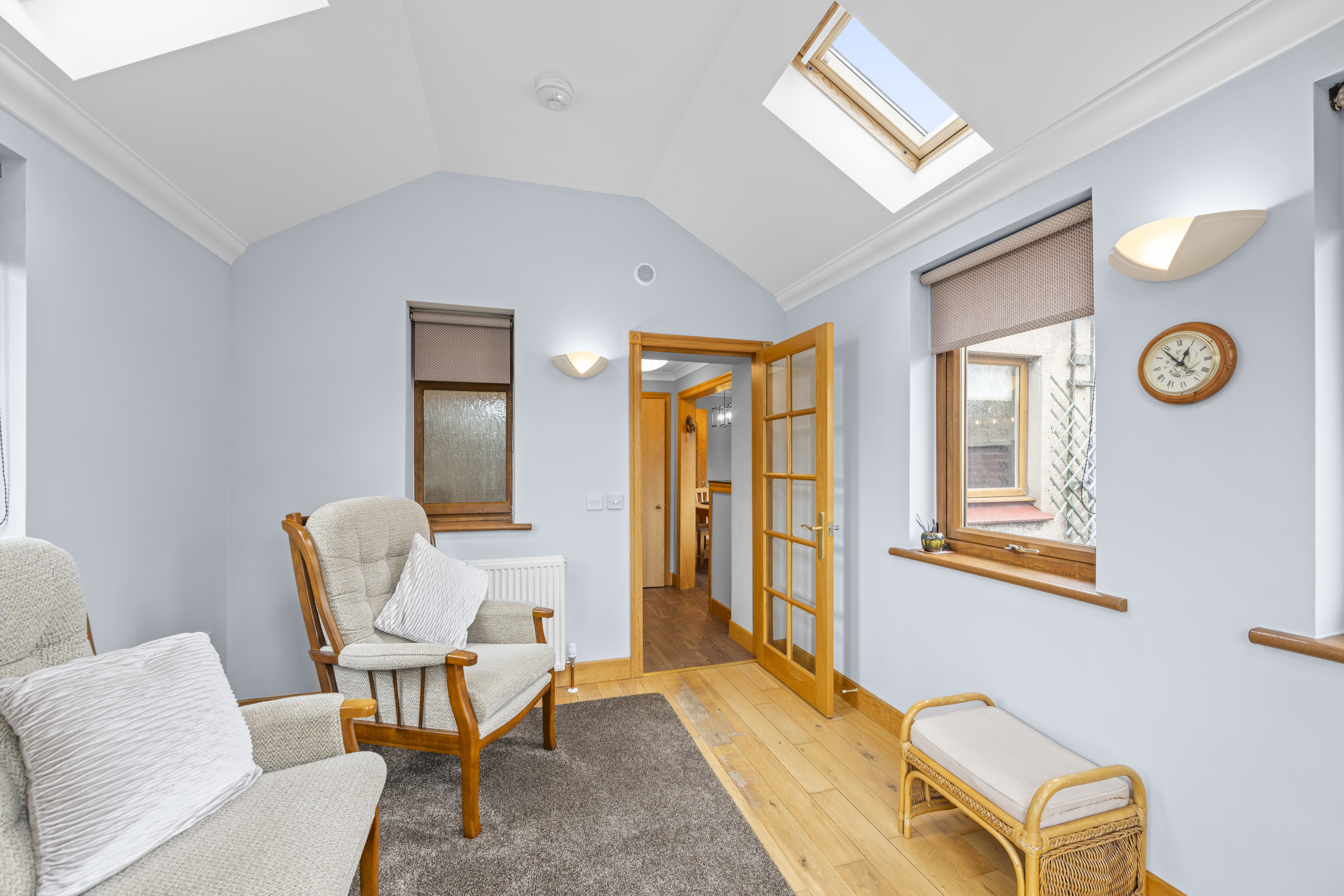 A fabulous room offering versatility of use. French doors connect directly to the garden. Windows to two sides and velux windows creating a delightful room within which to relax.