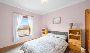 This spacious double bedroom is located to the rear of the property and offers fitted wardrobe storage with additional built-in cupboard providing ample storage. The room offers soothing pastel decor complimented by light carpeting.