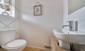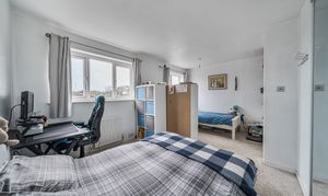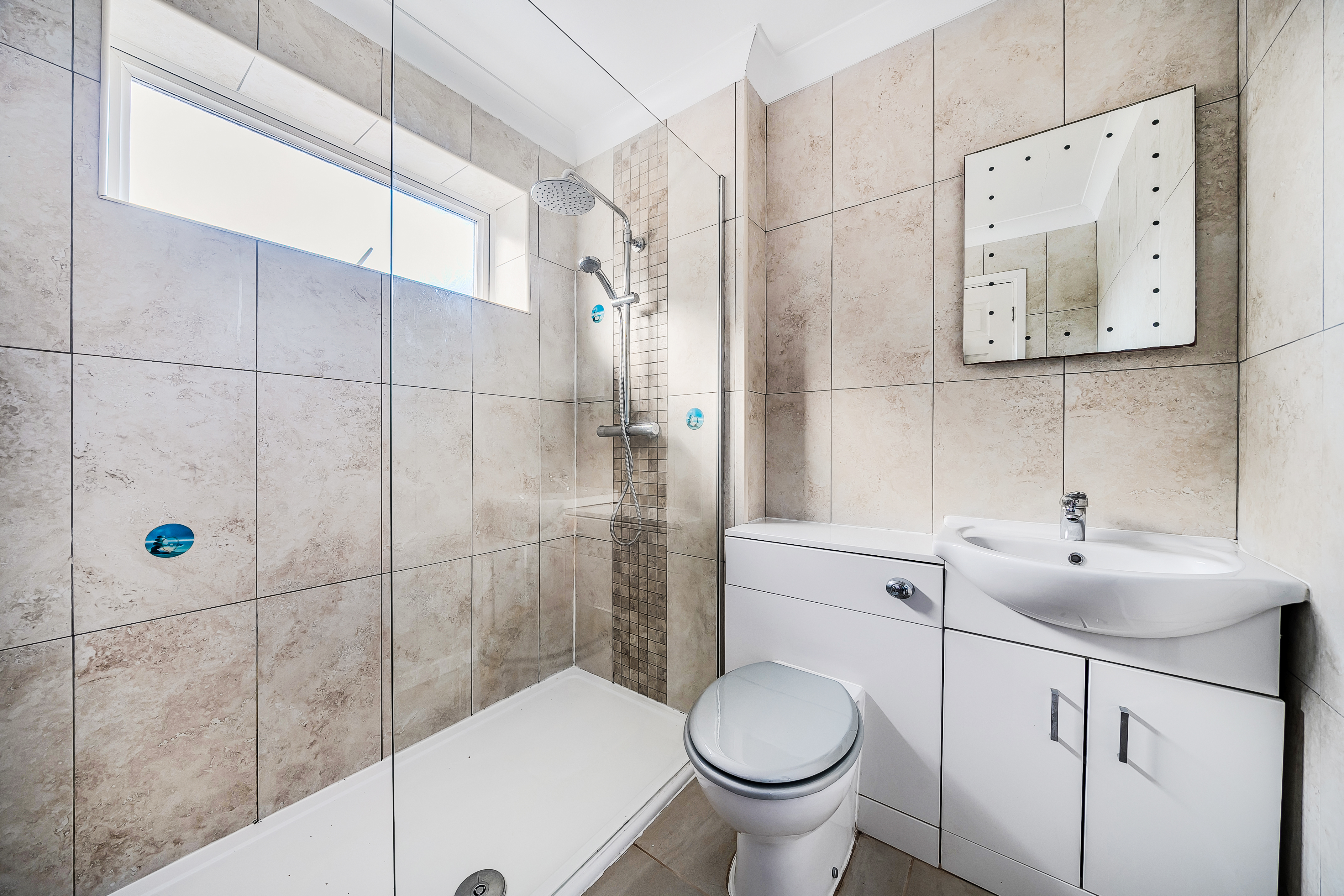 On the first floor, the landing includes a storage cupboard and provides access to two double bedrooms. The large principal bedroom features fitted wardrobes and was formerly configured as two separate bedrooms, an arrangement that could be reinstated if desired. A modern fitted shower room completes the first-floor layout.