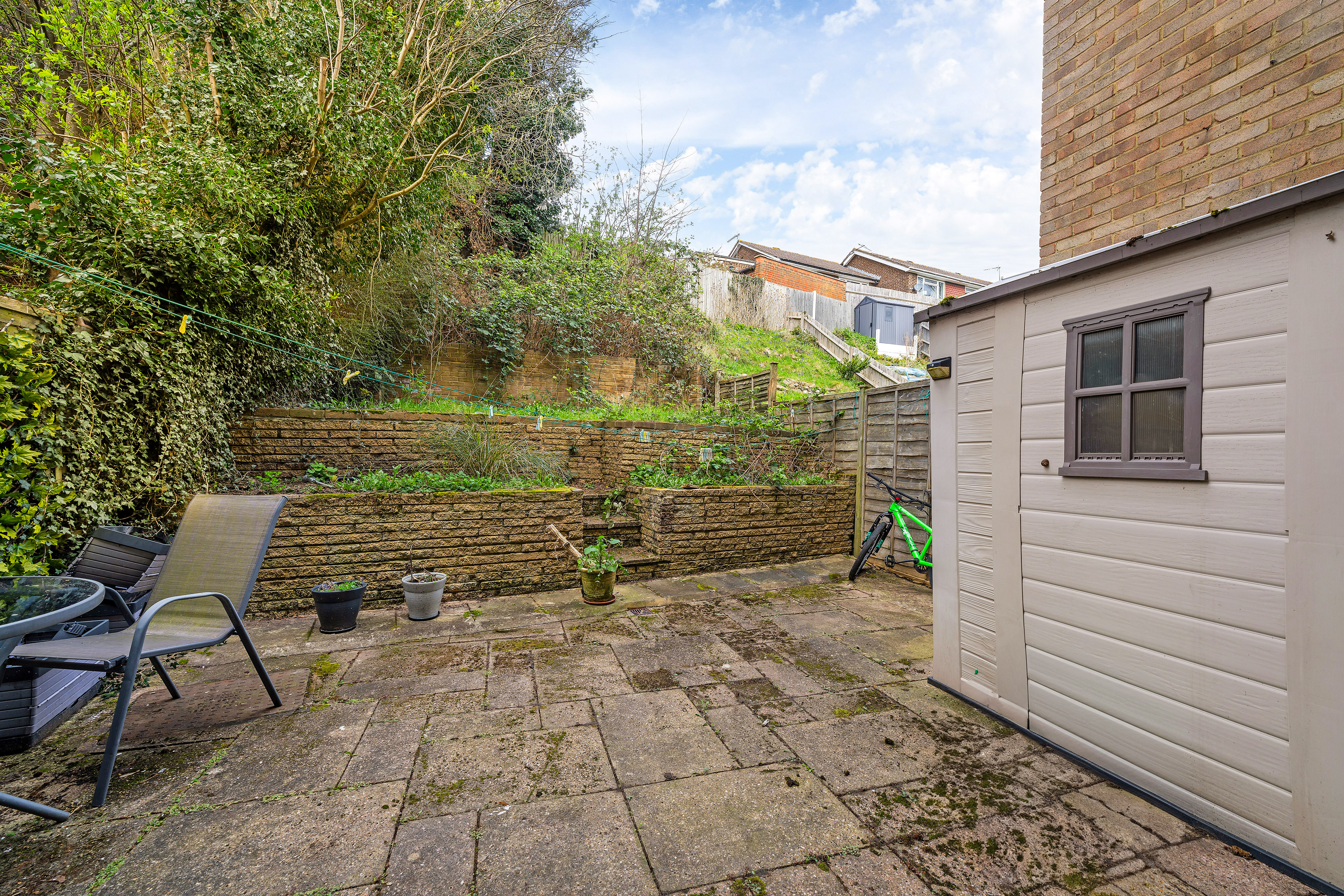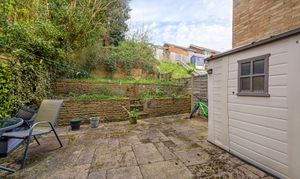 Outside there is a 50ft secluded garden with seating patio area and a front paved driveway for two cars.
