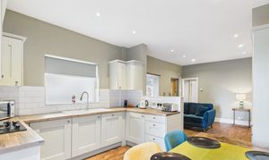 - Open-plan kitchen/living area: Modern fitted kitchen with integrated appliances