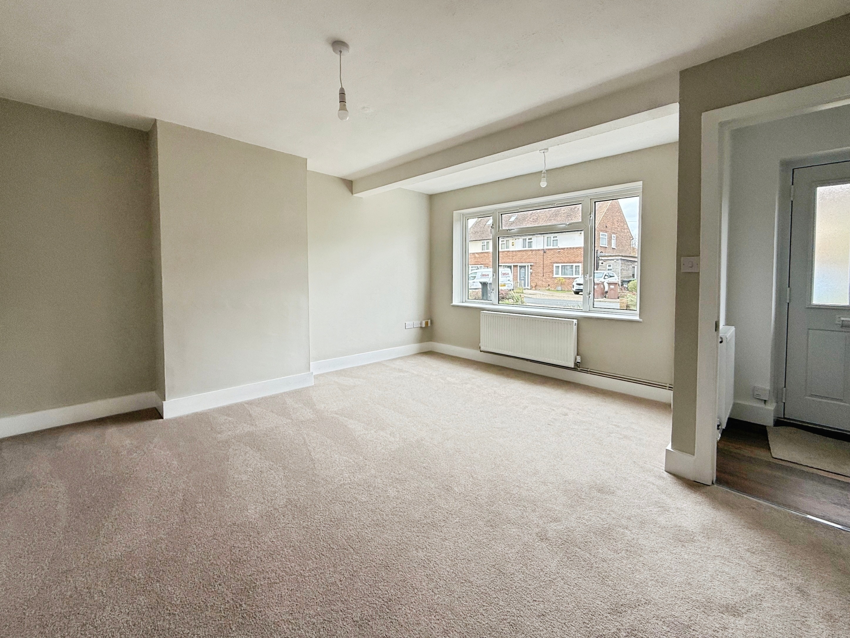 Carpeted, double glazed window to front, radiator, understairs storage cupboard housing fuseboard and meters. Door to: