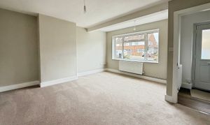 Accessed via UPVC double glazed door. LVT flooring, radiator, carpeted stairs rising to first floor. Door to: