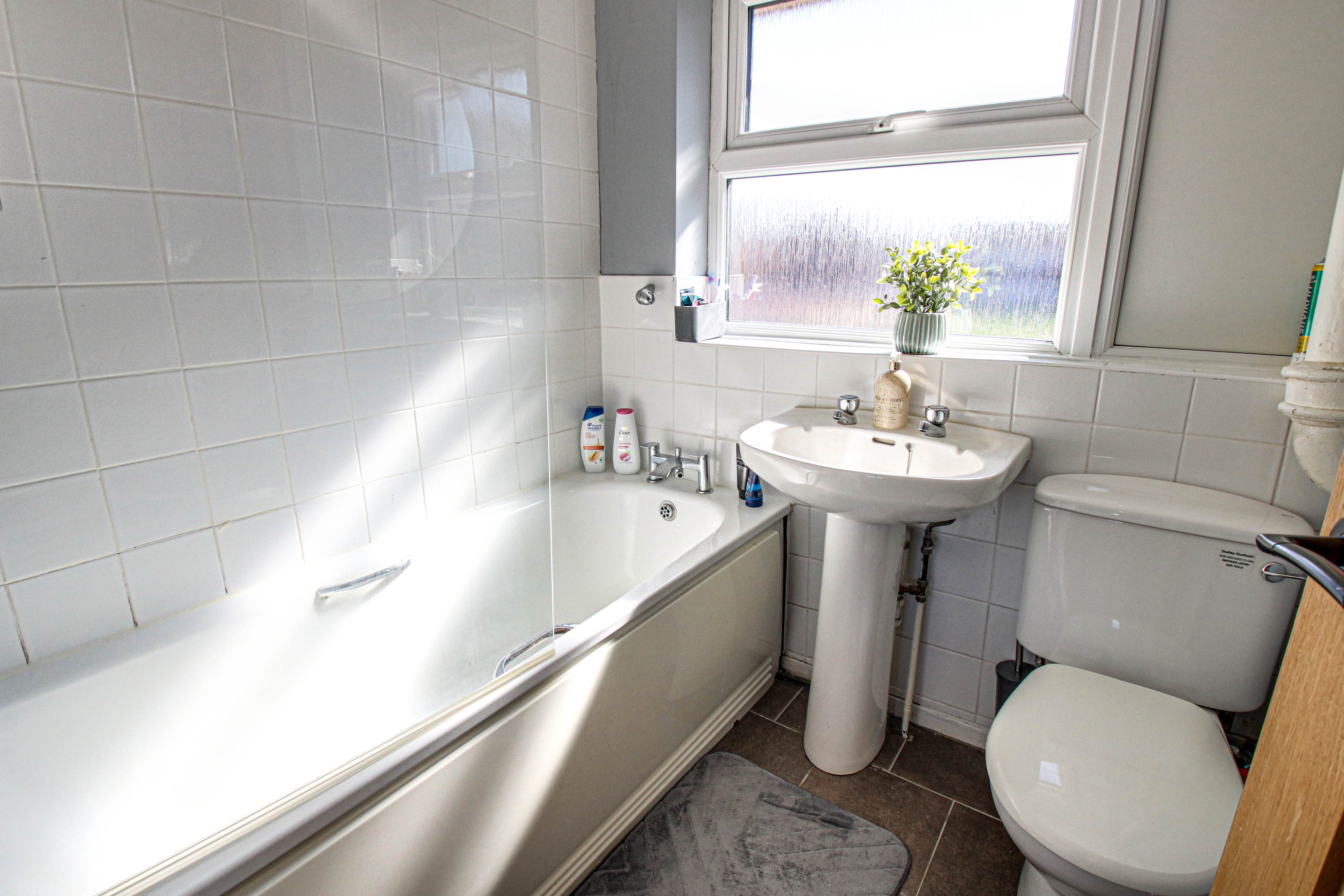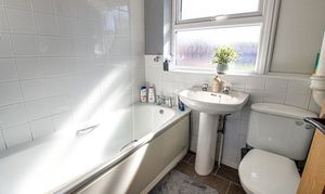 Front facing upvc double glazed window, three piece suite comprising of low flush wc, panel bath and pedestal wash basin. Tiled floor and radiator.