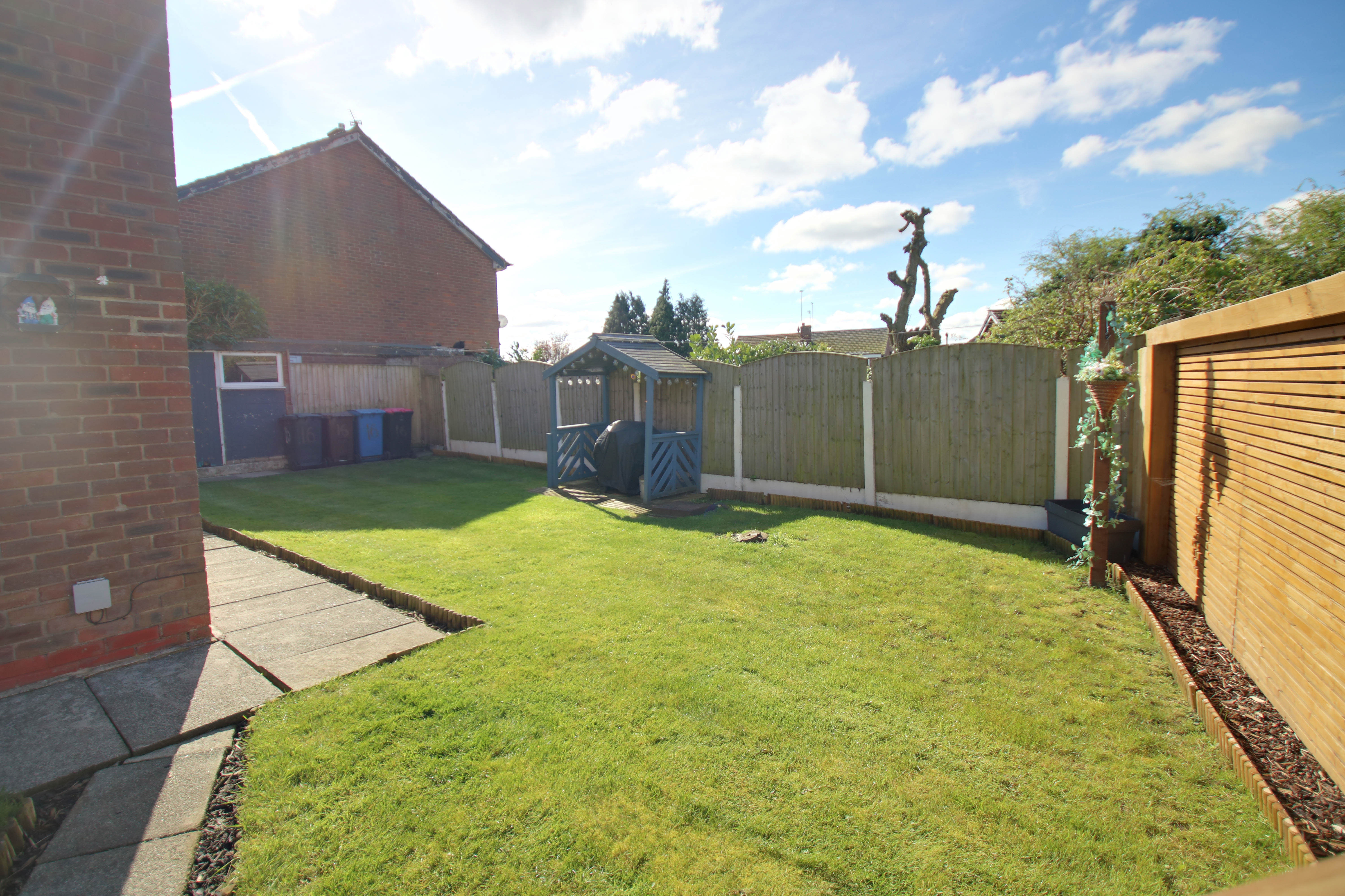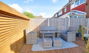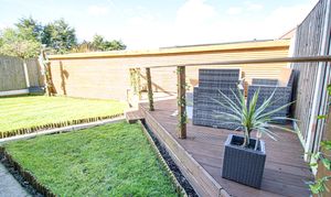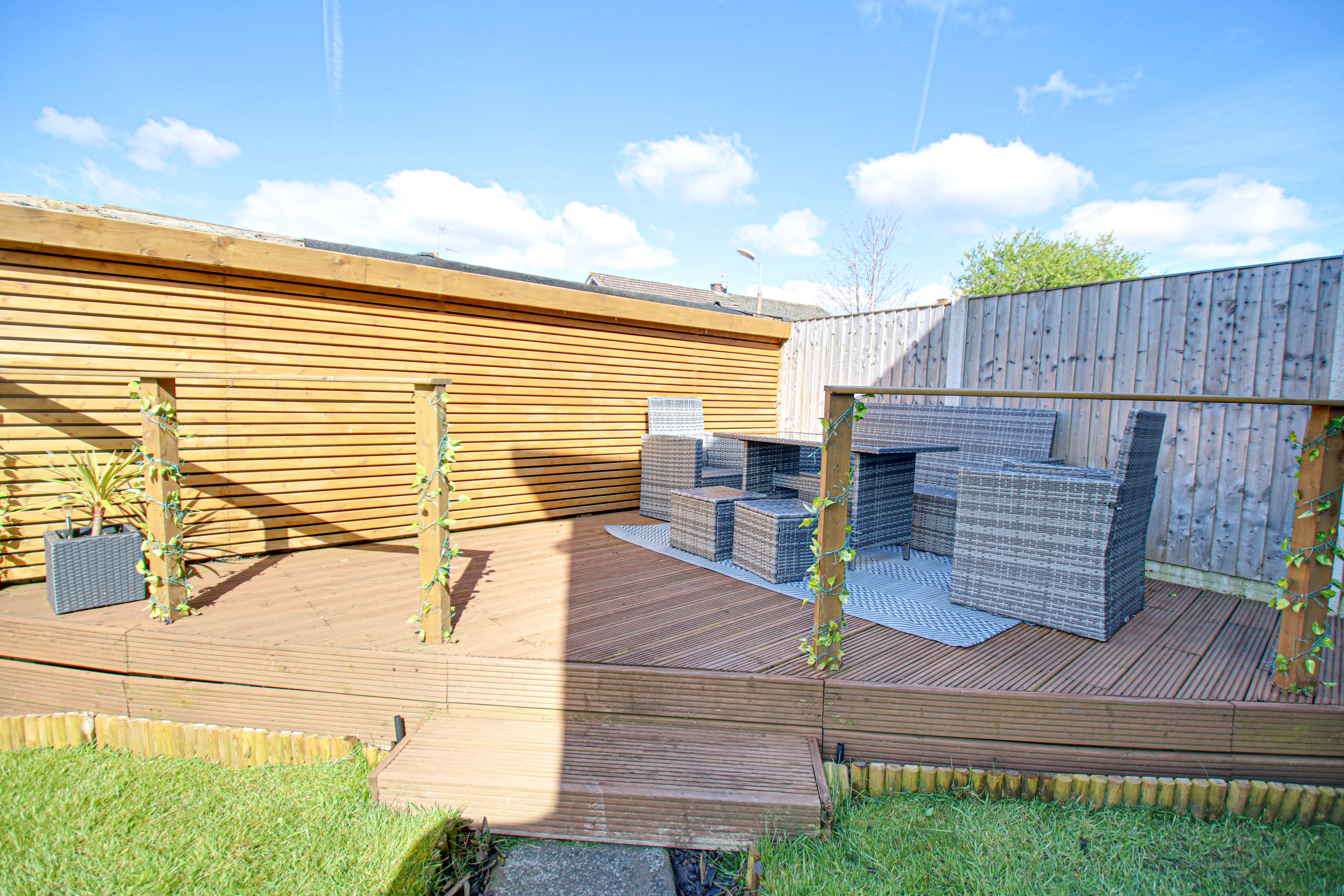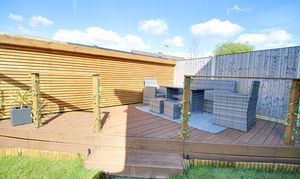 - Large Side Lawn, Rear Lawn and Wood Decking Seating Area