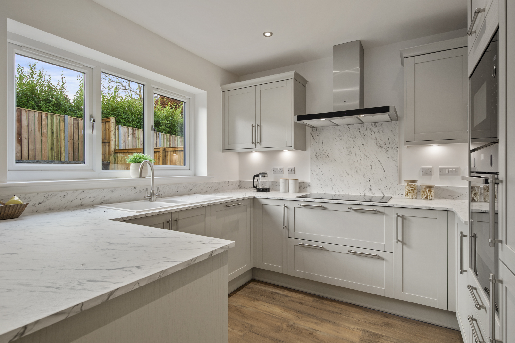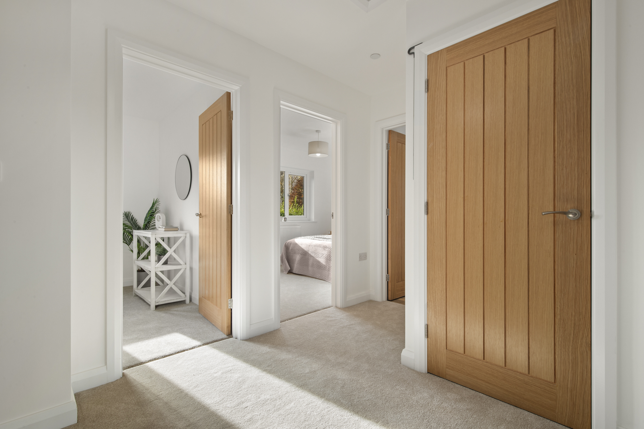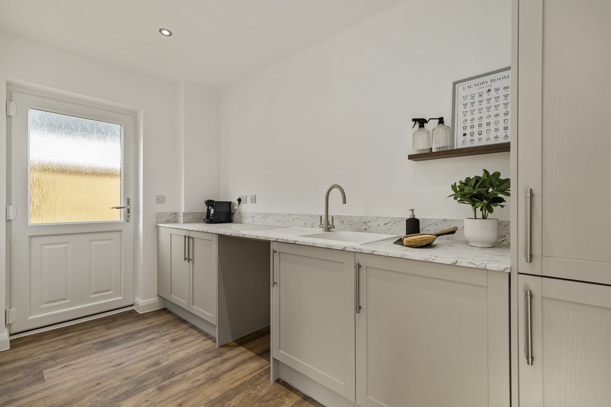 At the heart of the home lies the open-plan kitchen and dining area, designed for those who love to cook and entertain. The kitchen is fully fitted with high-quality appliances and offers plenty of storage and workspace. With bifold doors that open onto the rear patio, this area seamlessly connects indoor and outdoor living, making it perfect for summer barbecues, family meals, or just enjoying the fresh air. The kitchen can also be customised, allowing you to select your preferred finishes and create a space that truly reflects your style. A separate utility room provides practical storage and laundry space with external access for convenience.