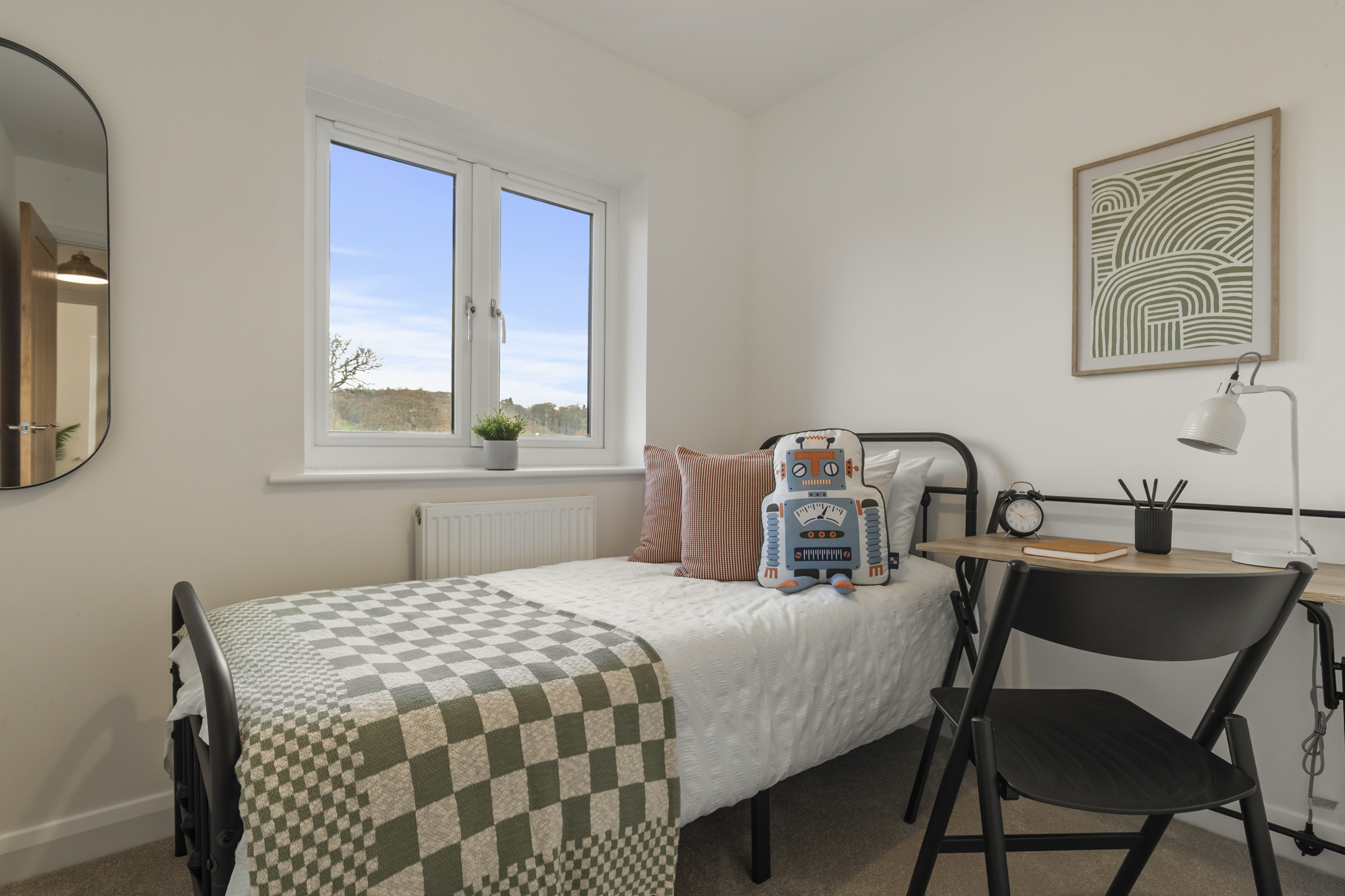 Upstairs, The Enfys features four generously sized bedrooms, all thoughtfully designed to provide privacy and comfort. The master bedroom includes an en-suite bathroom and his-and-hers built-in storage, making it a luxurious retreat within the home. The remaining three bedrooms offer ample space for family members, guests, or even a home office. All bedrooms are bright and spacious, with well-designed layouts to maximise comfort.
