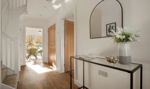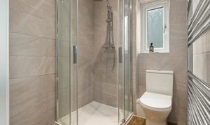 The family bathroom is fitted with high-quality, contemporary fixtures and features a shower over the bath, offering both functionality and style. Downstairs, there is also a convenient guest cloakroom.