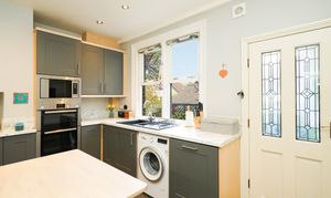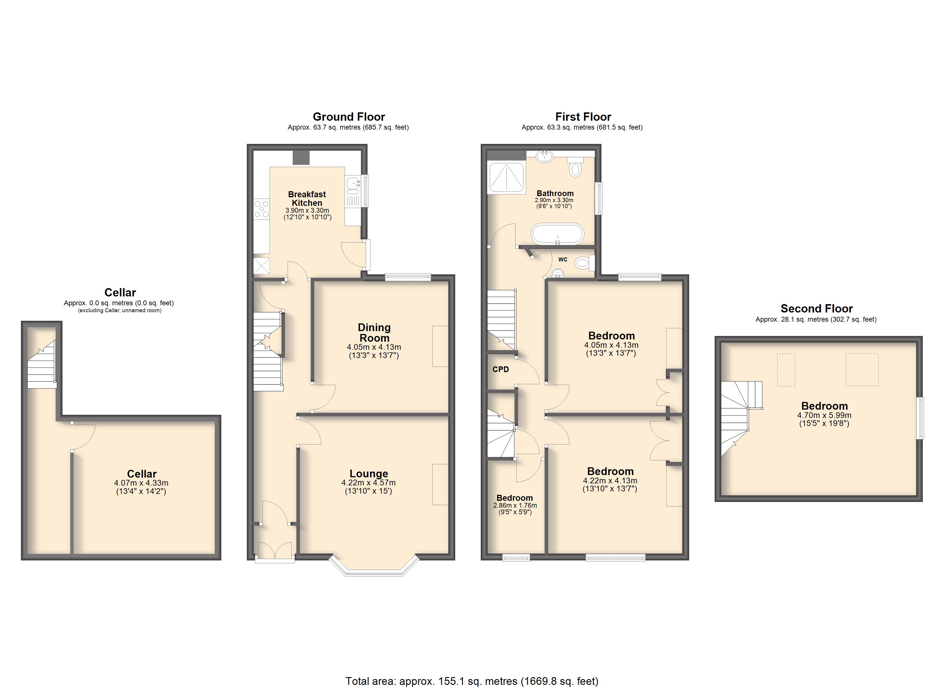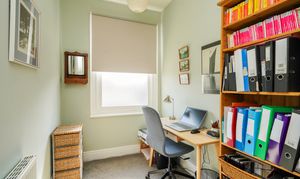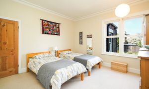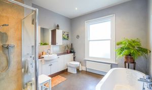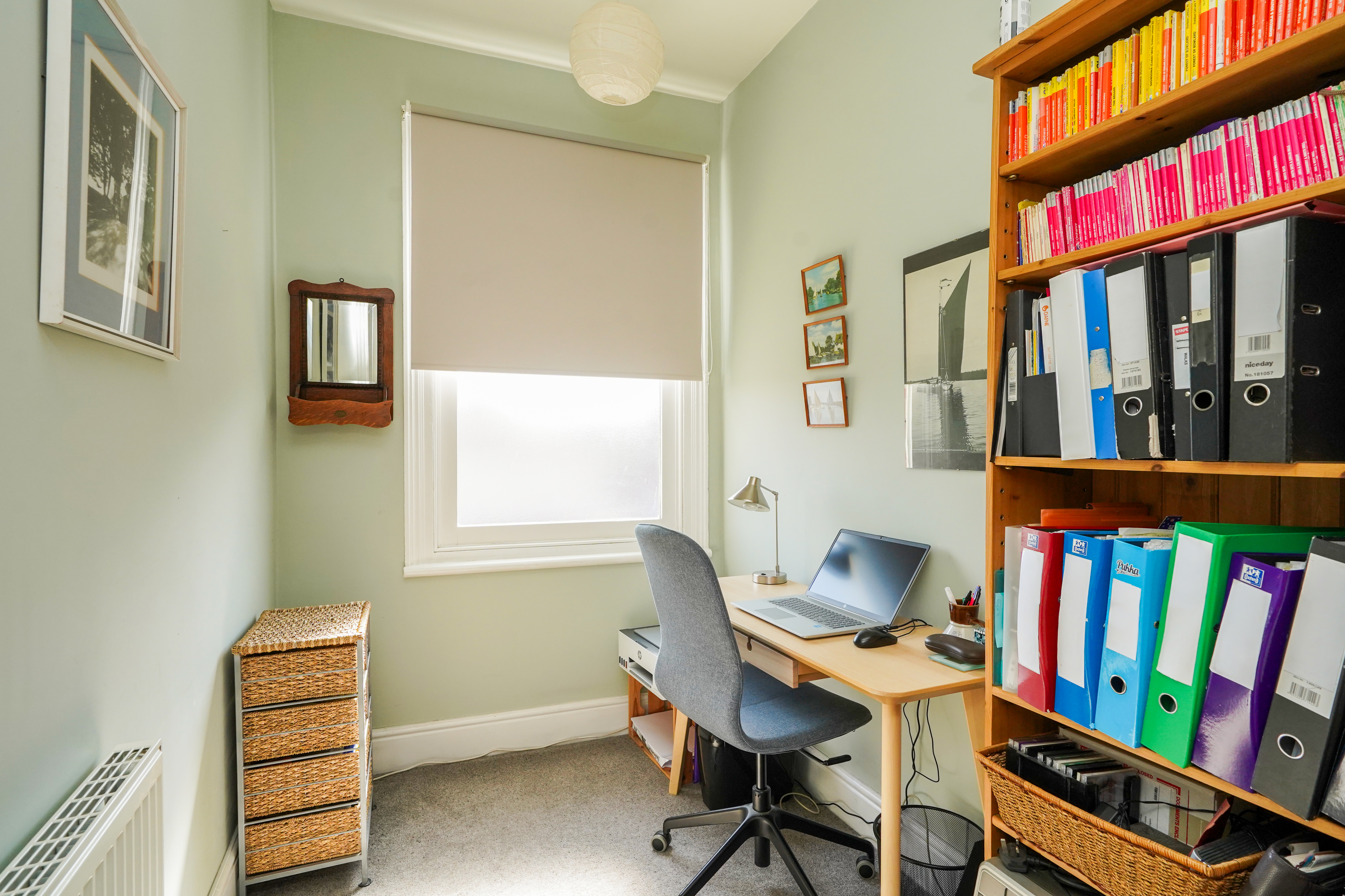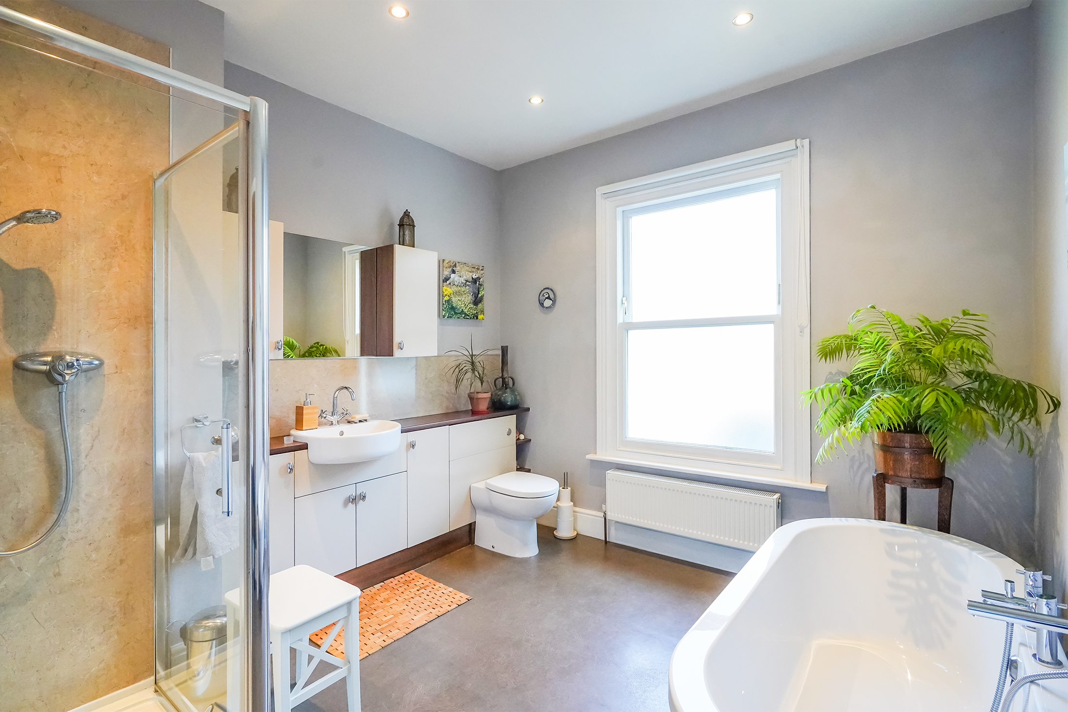 On the upper floors, you will find three generous double bedrooms and a well-proportioned single bedroom perfect for home-working, all benefitting from high ceilings and period detailing. The family bathroom is appointed with a contemporary four-piece suite, while an additional first-floor W.C. adds further convenience for busy households. A substantial cellar offers excellent storage or exciting potential for conversion to additional living space, subject to the necessary consents.