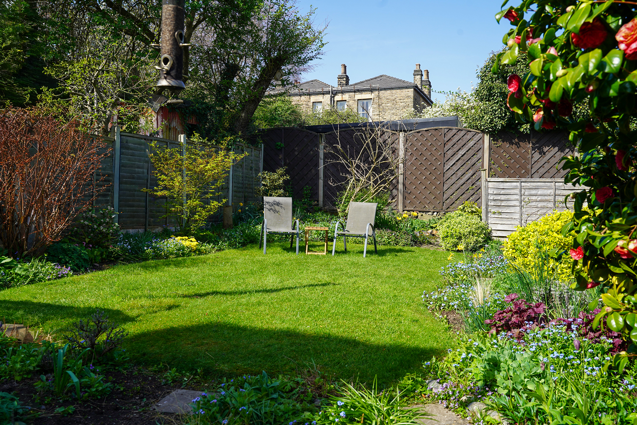 - Landscaped Garden With Patio, Borders, Lawn & Outbuilding