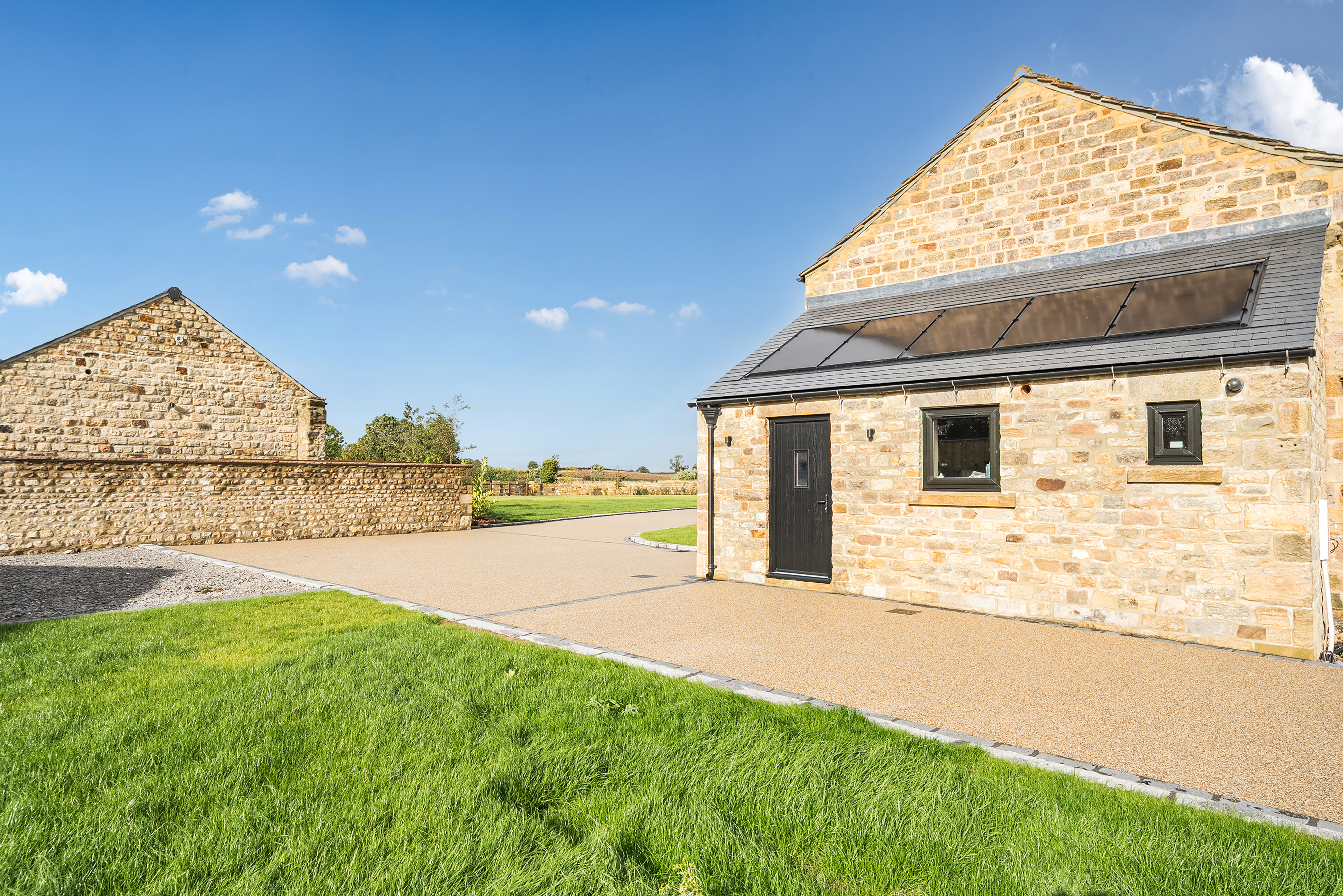 Approached via imposing iron gates, this exceptional detached barn conversion—offered with no onward chain—sits just outside the historic city of Ripon and represents a rare opportunity to acquire a home that is both newly completed and rich in character. Surrounded by tranquil countryside, chiefly the beautiful Fountains Abbey, it offers a lifestyle of luxury, sustainability, and serenity.