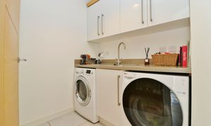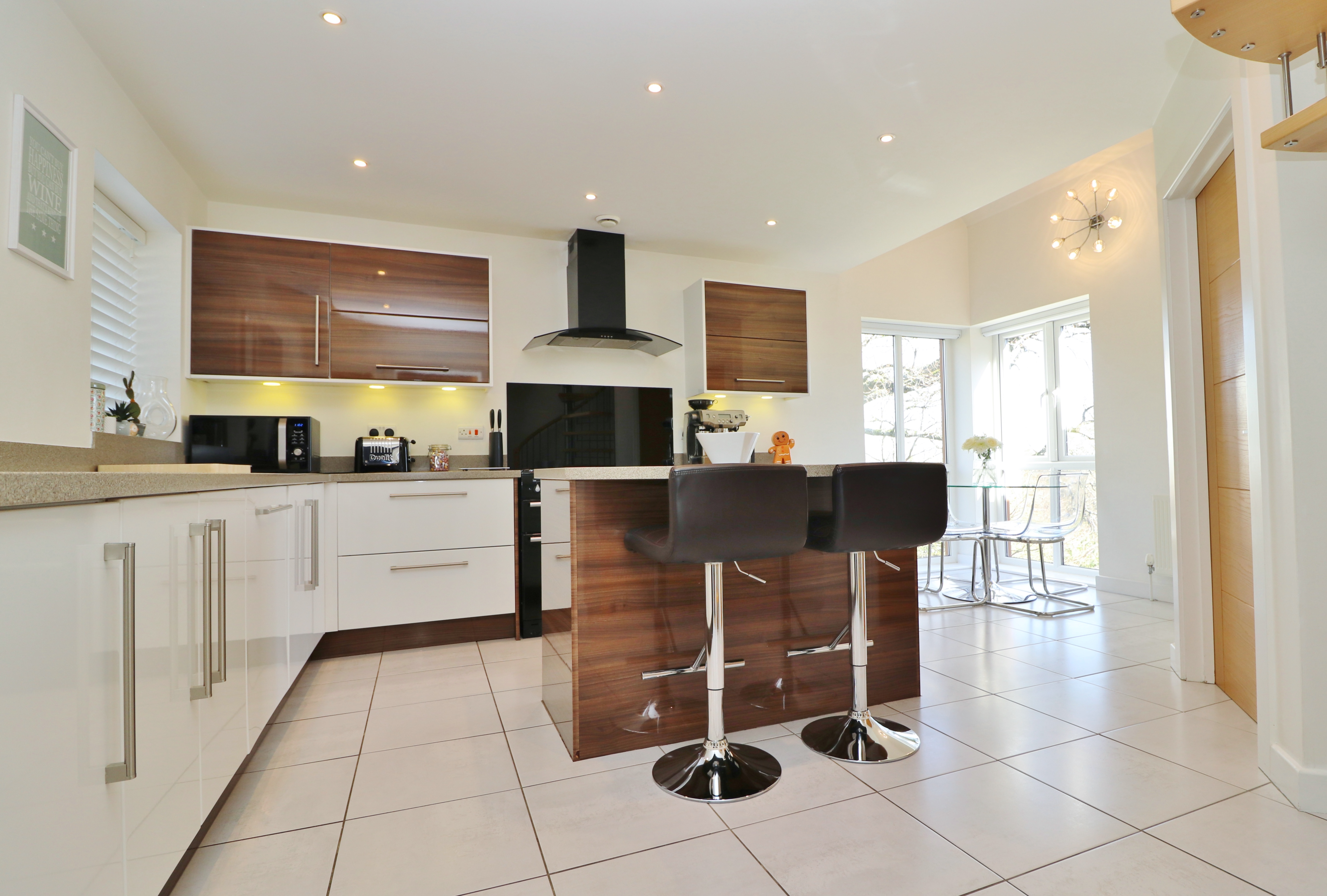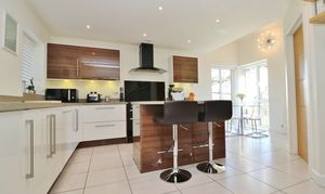 The dual aspect kitchen/breakfast room has been fitted with a contemporary range of wall and base units with a central breakfast bar, a Range style cooker with extractor over, an integrated dishwasher and space for a fridge/freezer. The adjoining utility offers further units and space for a washing machine and tumble dryer.