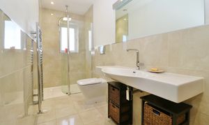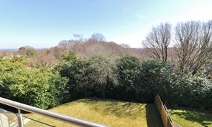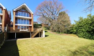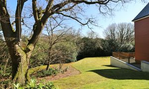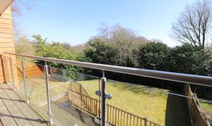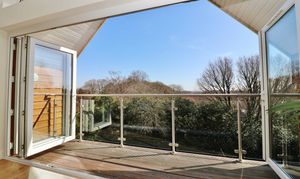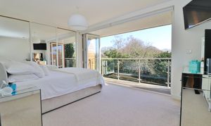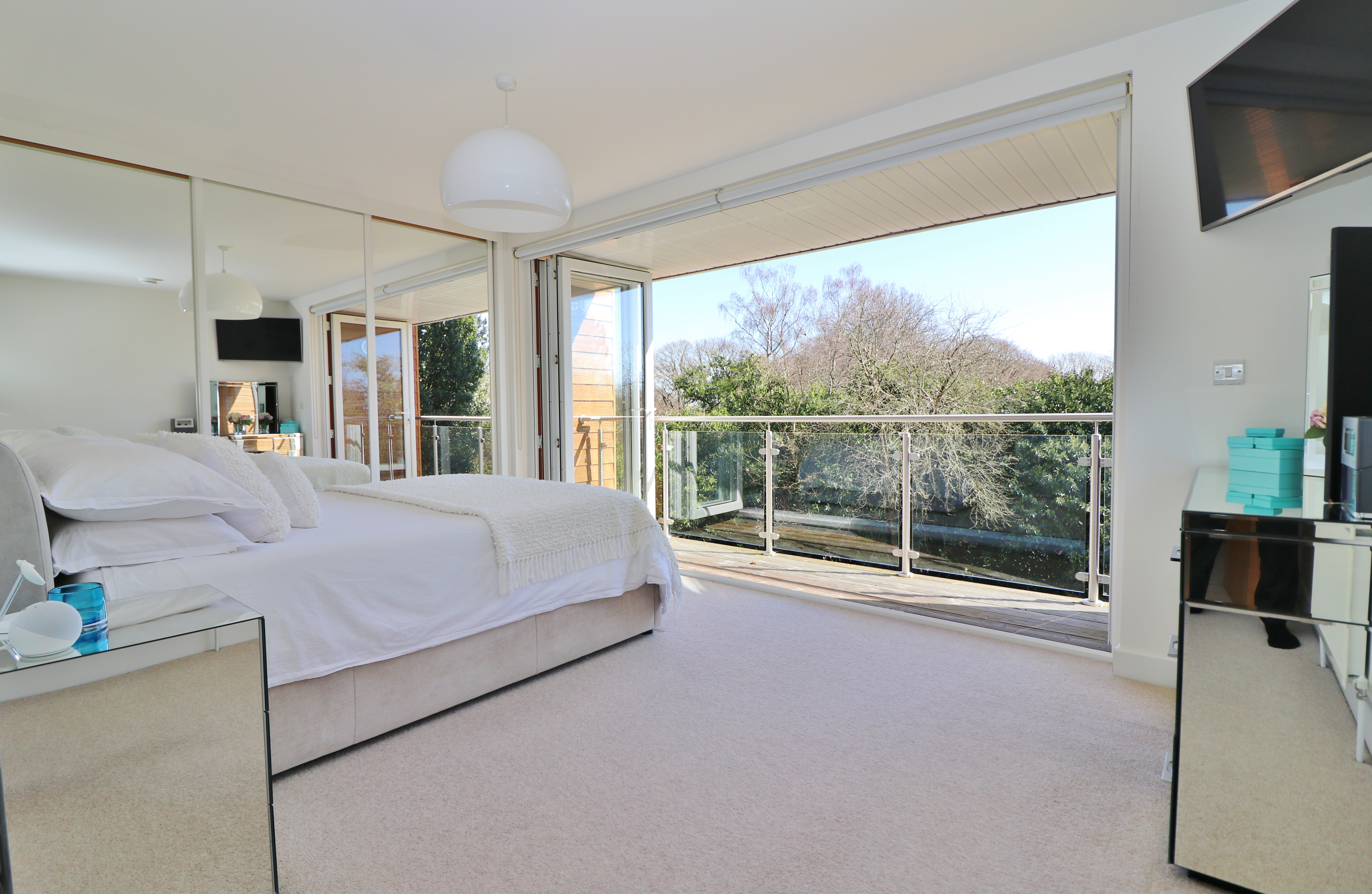 The lower ground floor offers three double bedrooms, the master of which has fitted wardrobes along one wall, a modern en-suite shower room and bi-folding doors onto the rear balcony, which also enjoys wonderful views and overlooks the garden.