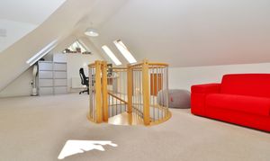 A spiral staircase from the kitchen leads to the top floor where there is a generous family room/office, which could also be used as a fourth bedroom.