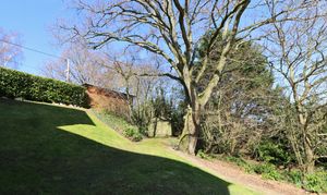 To the front there is driveway parking and a single garage. The attractive rear garden is mainly laid to lawn and secluded with a variety of mature trees, which wrap around to the side of the property where there is further lawn and a storage shed.