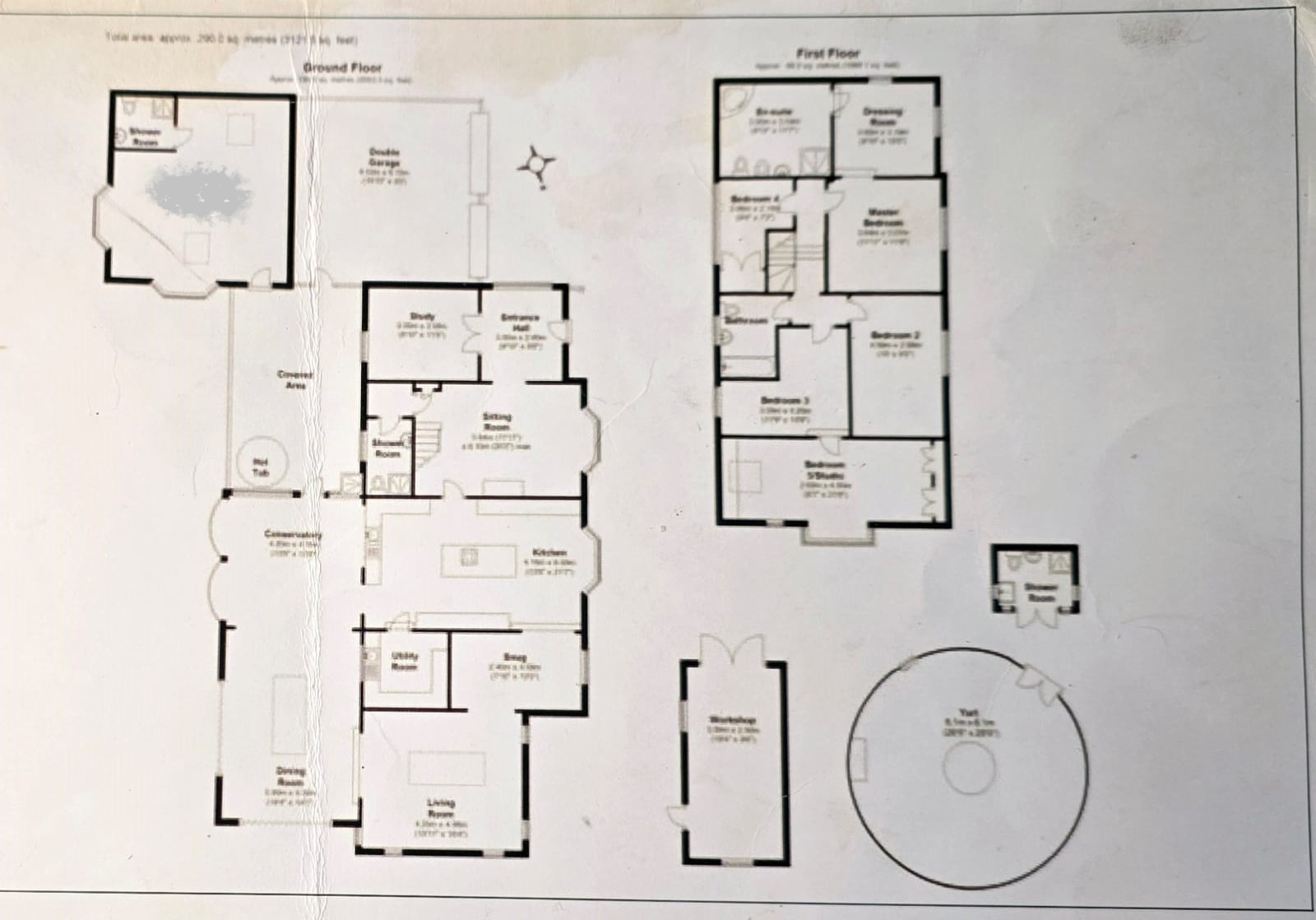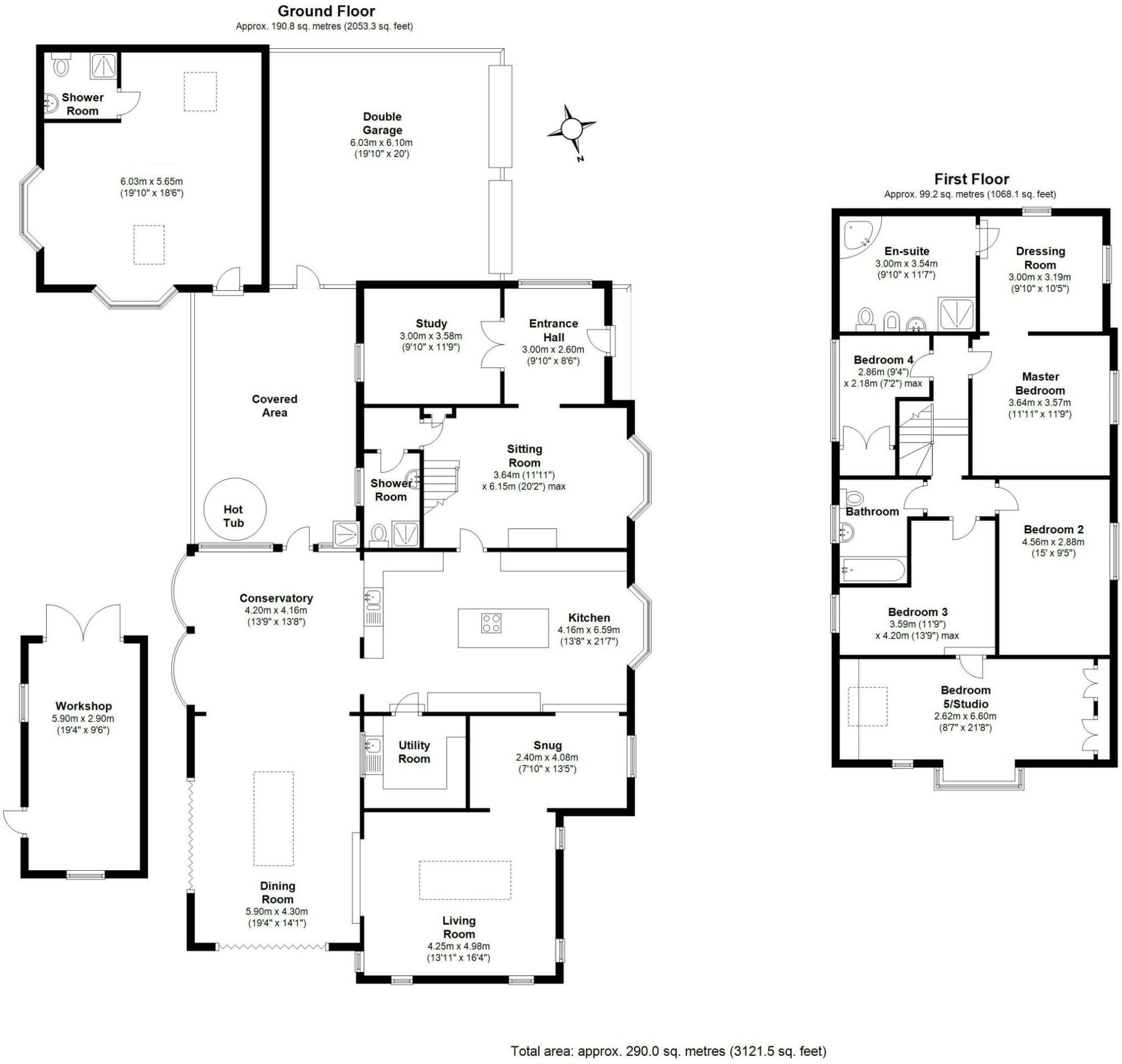 MEASUREMENTS: Entrance Hall 3.00m x 2.60m (9’10” x 8’06”), Study 3.00m x 3.58m (9’10” x 11’09”), Sitting Room 3.64m x 6.15m (11’11” x 20’02”) max, Kitchen 4.16m x 6.15m (13’08” x 21’07”), Dining Room 5.90m x 4.30m (19’04” x 14’01”), Living Room 4.25m x 4.98m (13’11” x 16’04”), Snug 2.40m x 4.08m (7’10” x 13’05”), Conservatory 4.20m x 4.16m (13’09” x 13’08”), Master Bedroom 3.64m x 3.57m (11’11” x 11’09”), Bedroom 4.56m x 2.88m (15’00” x 9’05”), Bedroom 3.59m x 4.20m (11’09” x 13’09”)max, Bedroom 2.86m x 2.18m (9’04” x 7’02”)max, Bedroom 2.62m 6.60m (8’08” x 21’08”), Studio 6.03m x 5.65m (19’10” x 18’06”), Garage 6.03m x 6.10m (19’10” x 20’00”)