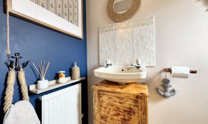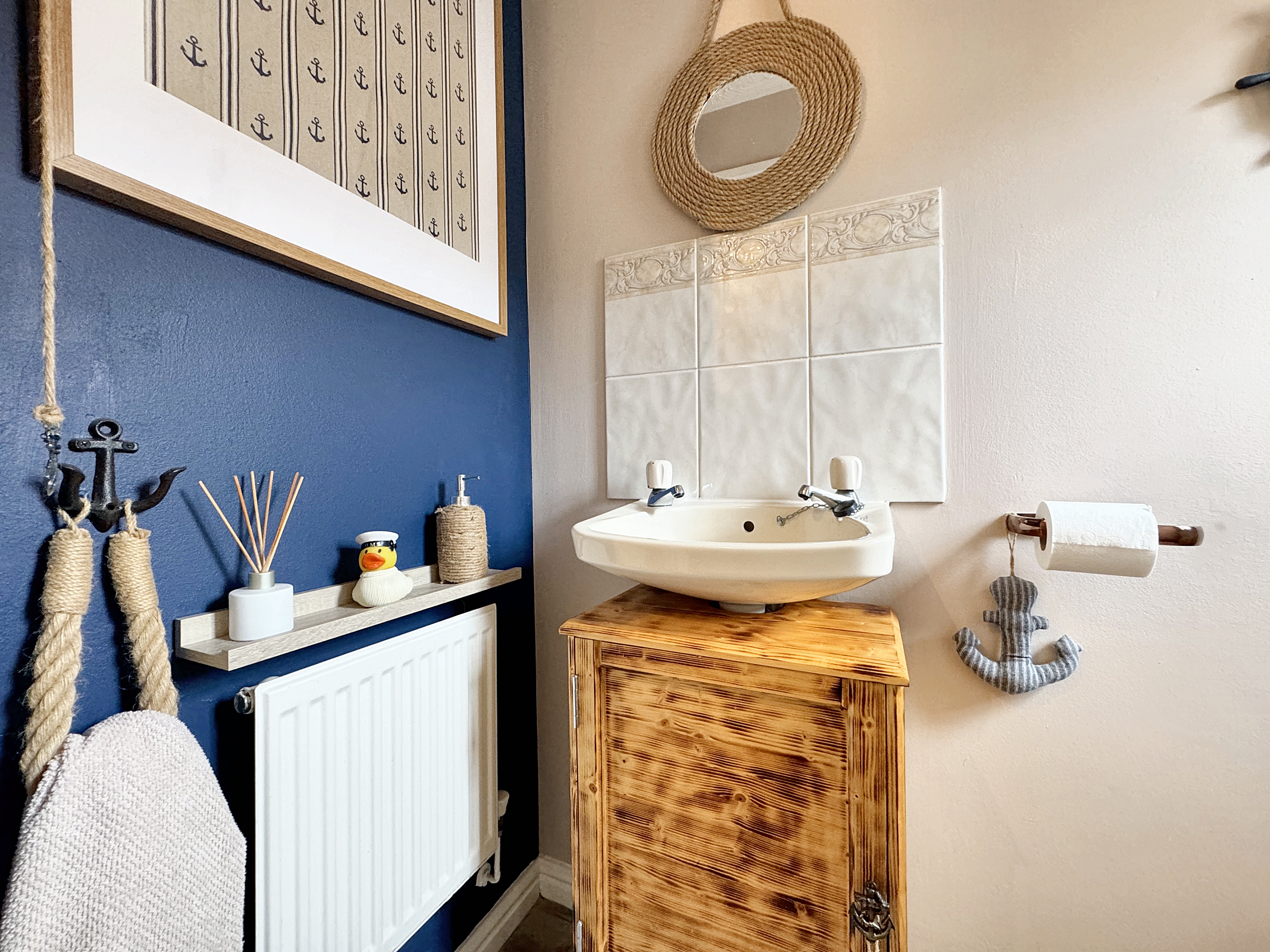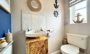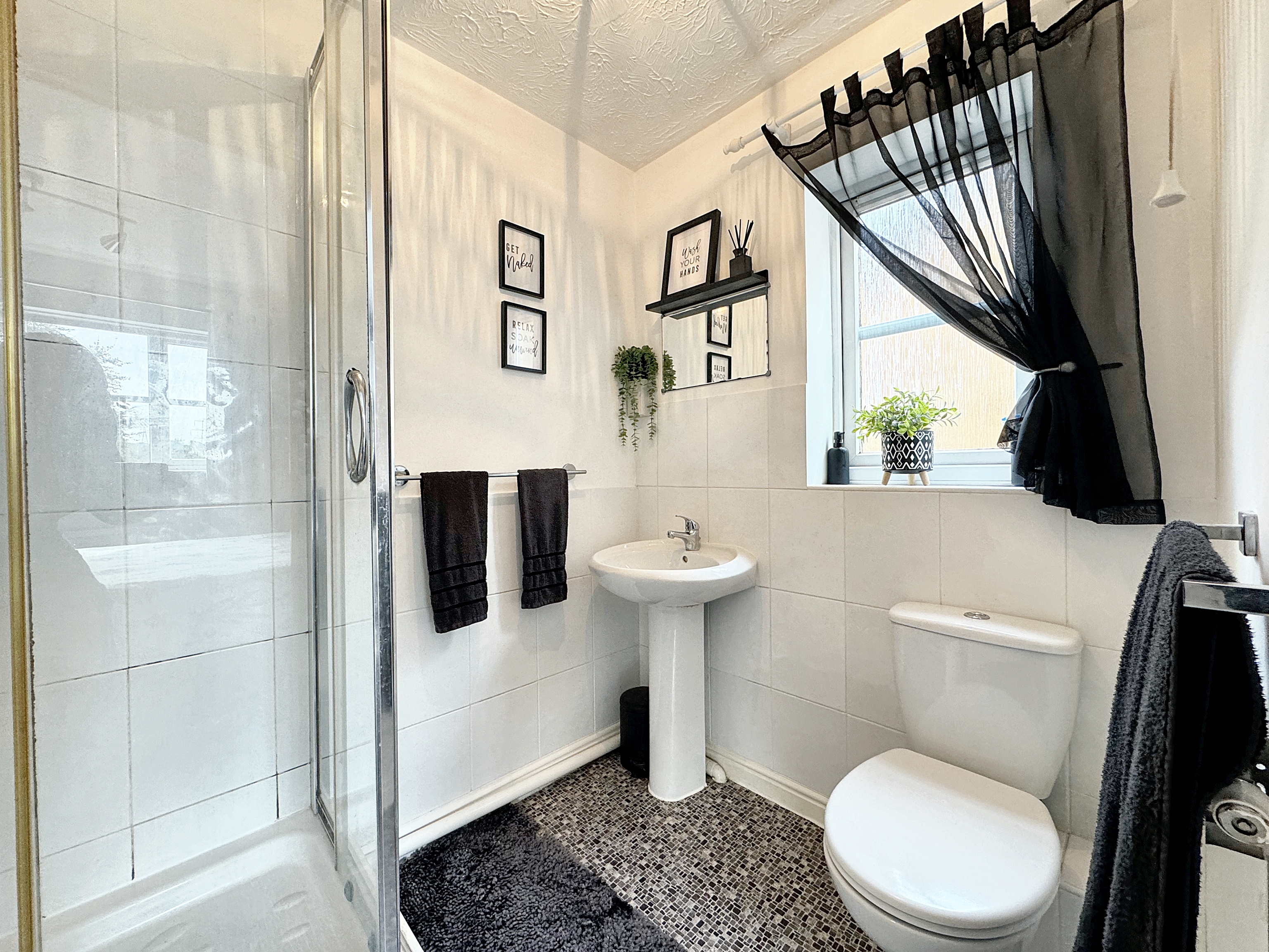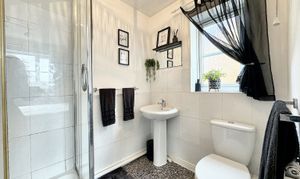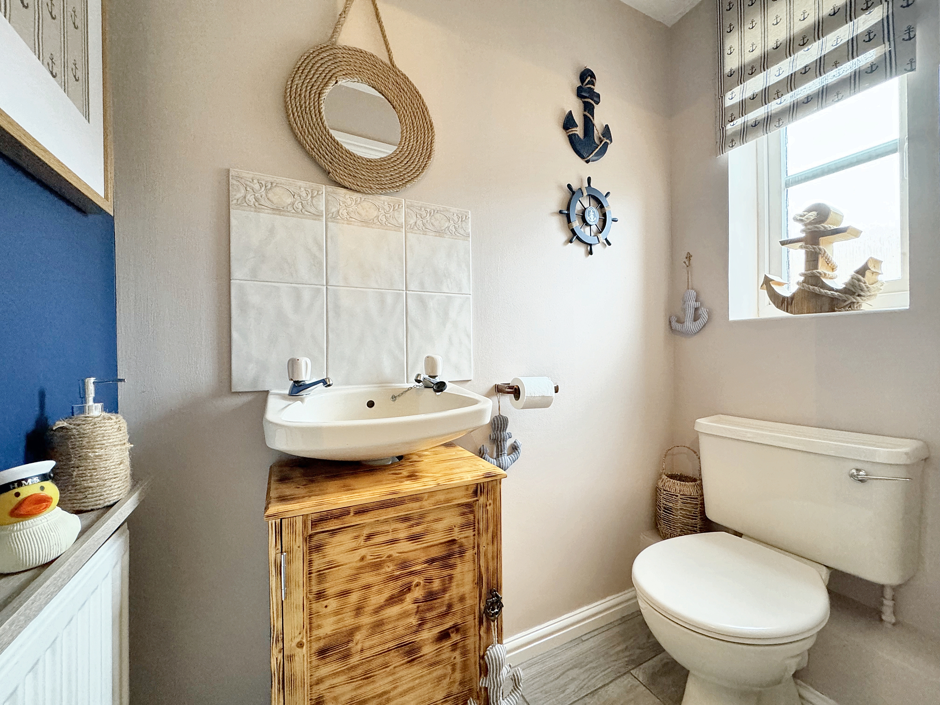 A front facing window lights up the w/c, with smooth painted walls, artex ceiling and tiled floor, this suite features a toilet, sink and toilet.