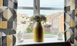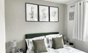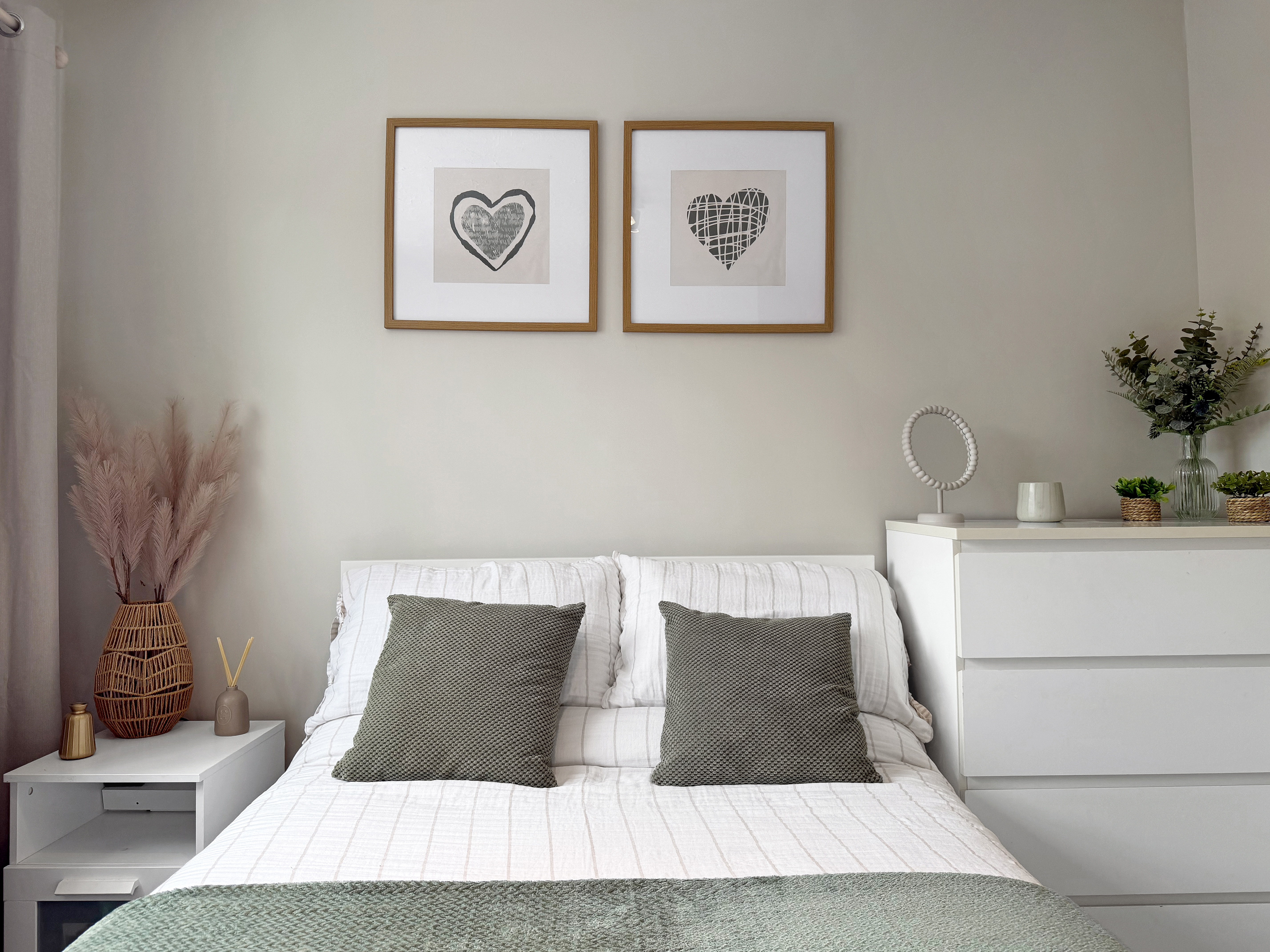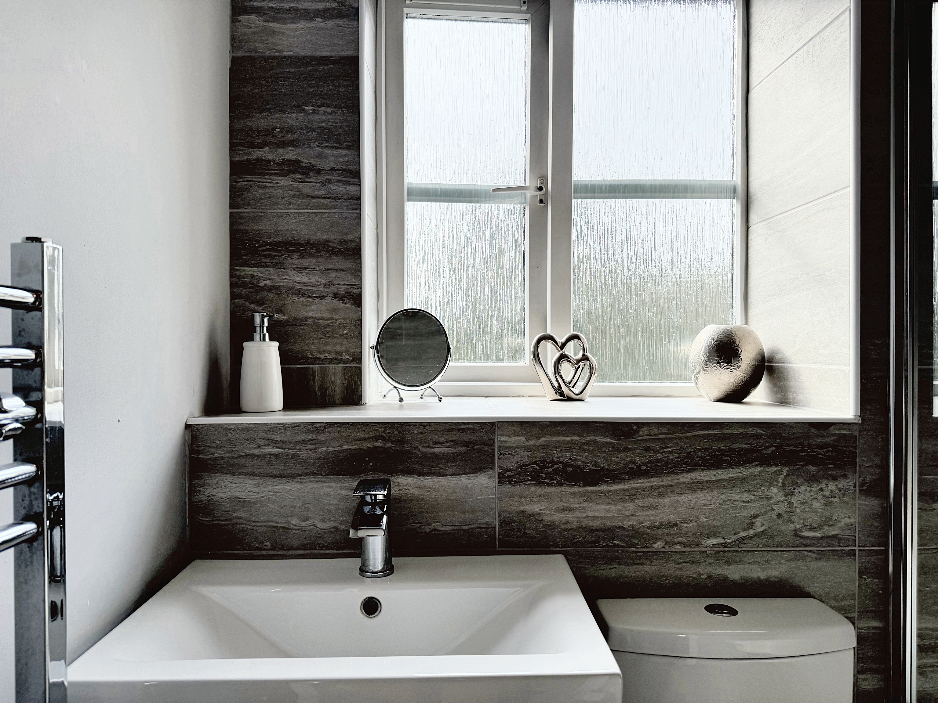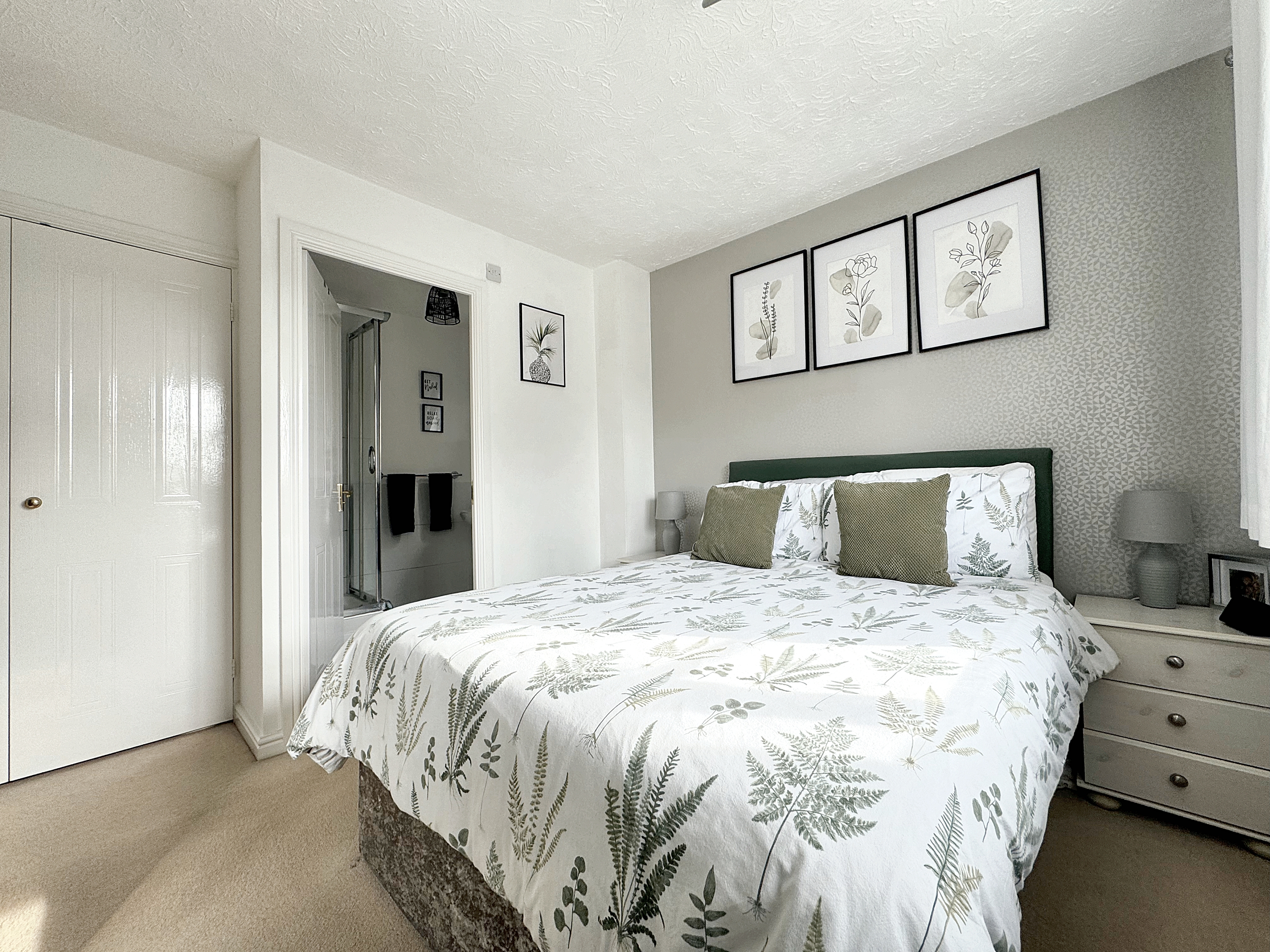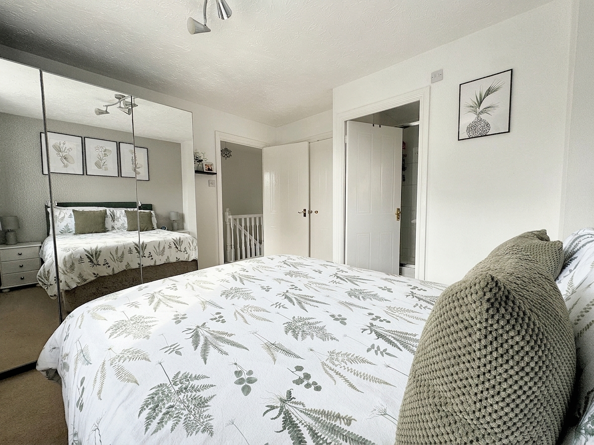 The primary bedroom is to the rear of the property with views looking out over the stunning valley through the rear window. The floors throughout the first floor are carpeted, walls are smooth with a feature papered wall and the ceiling is artex. This master bedroom has a warm homely feel, built in double wardrobe/storage and an en-suite.