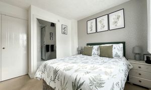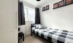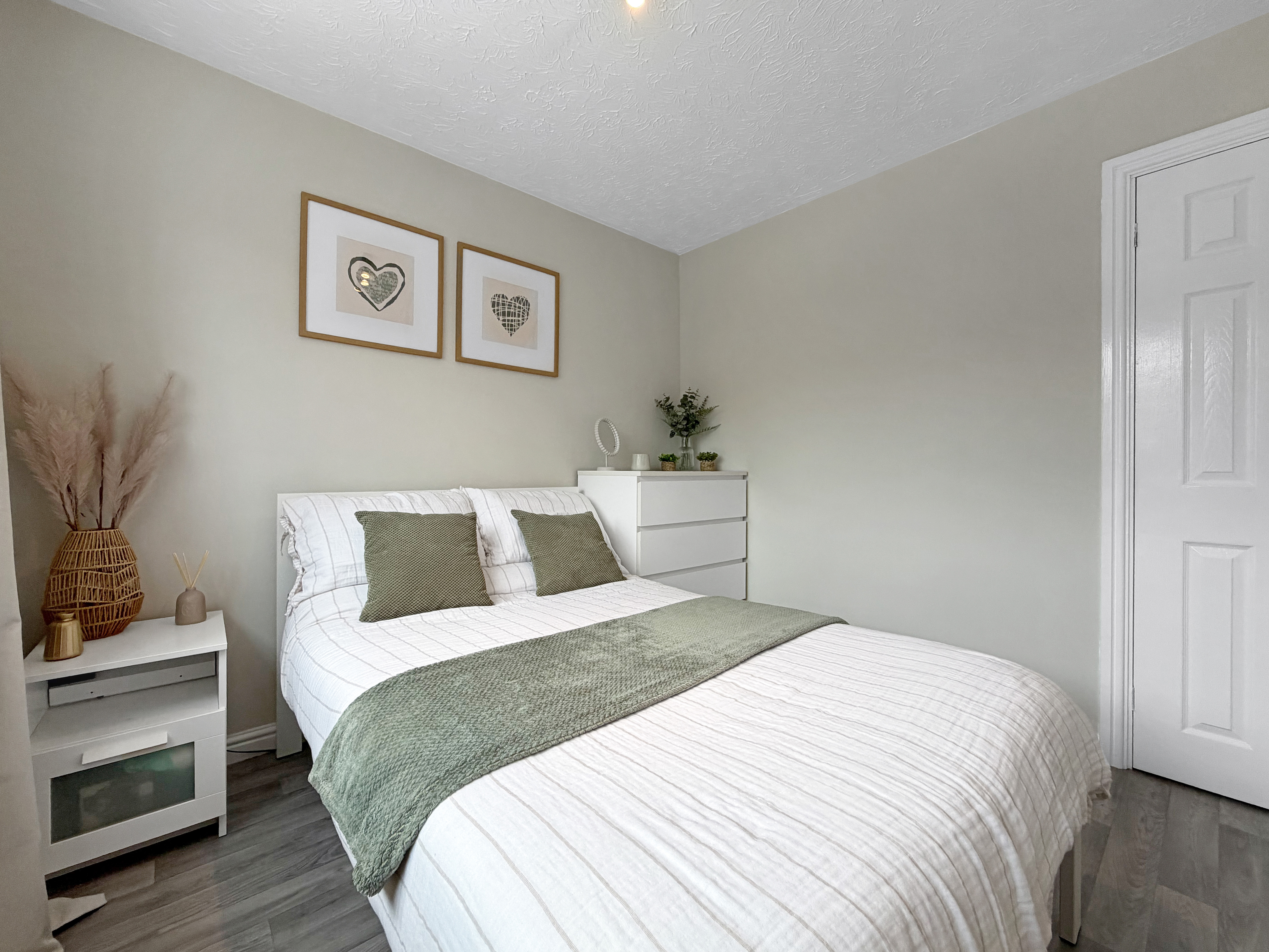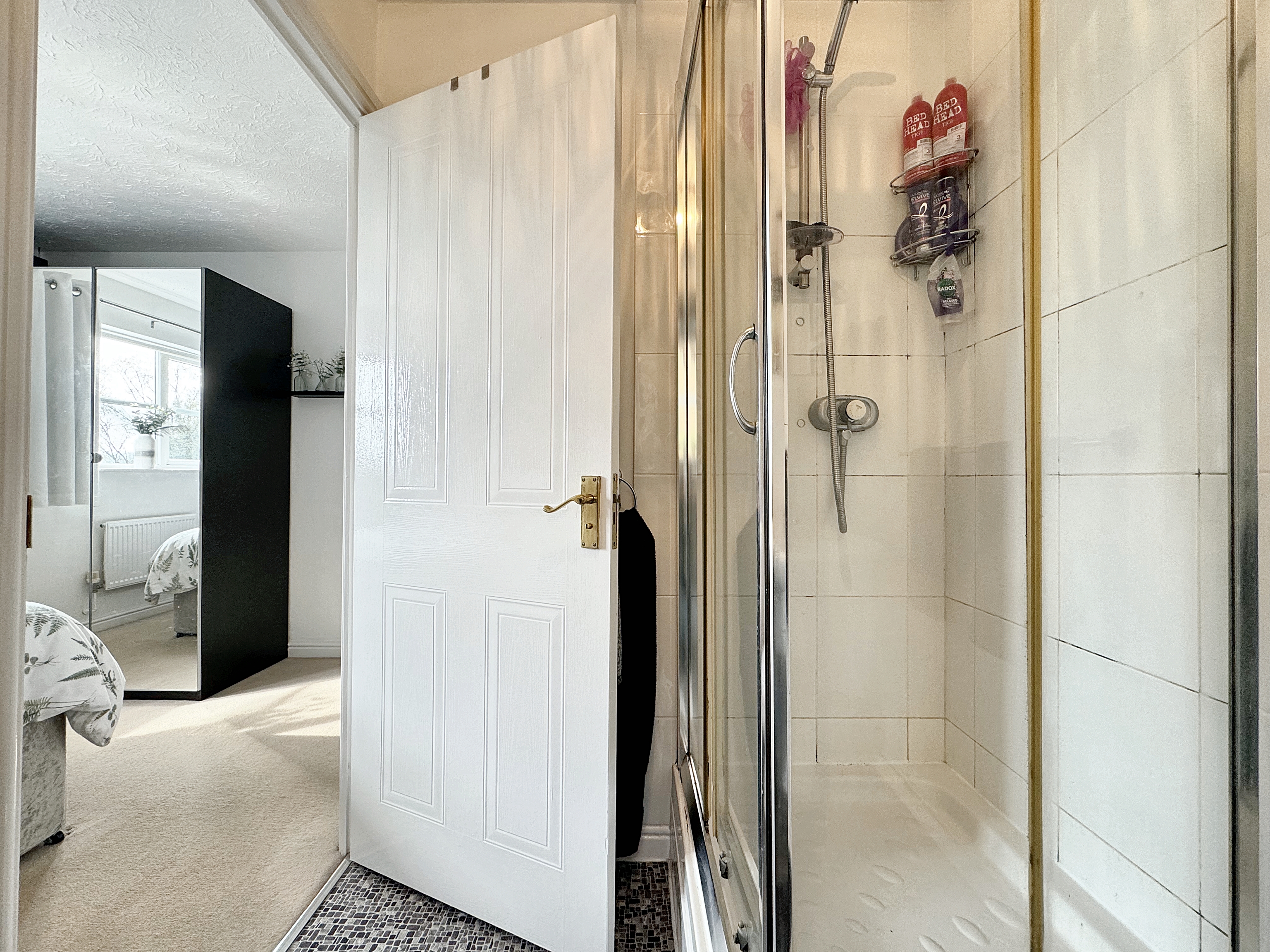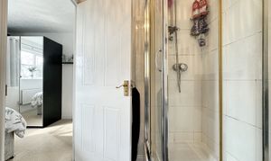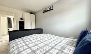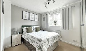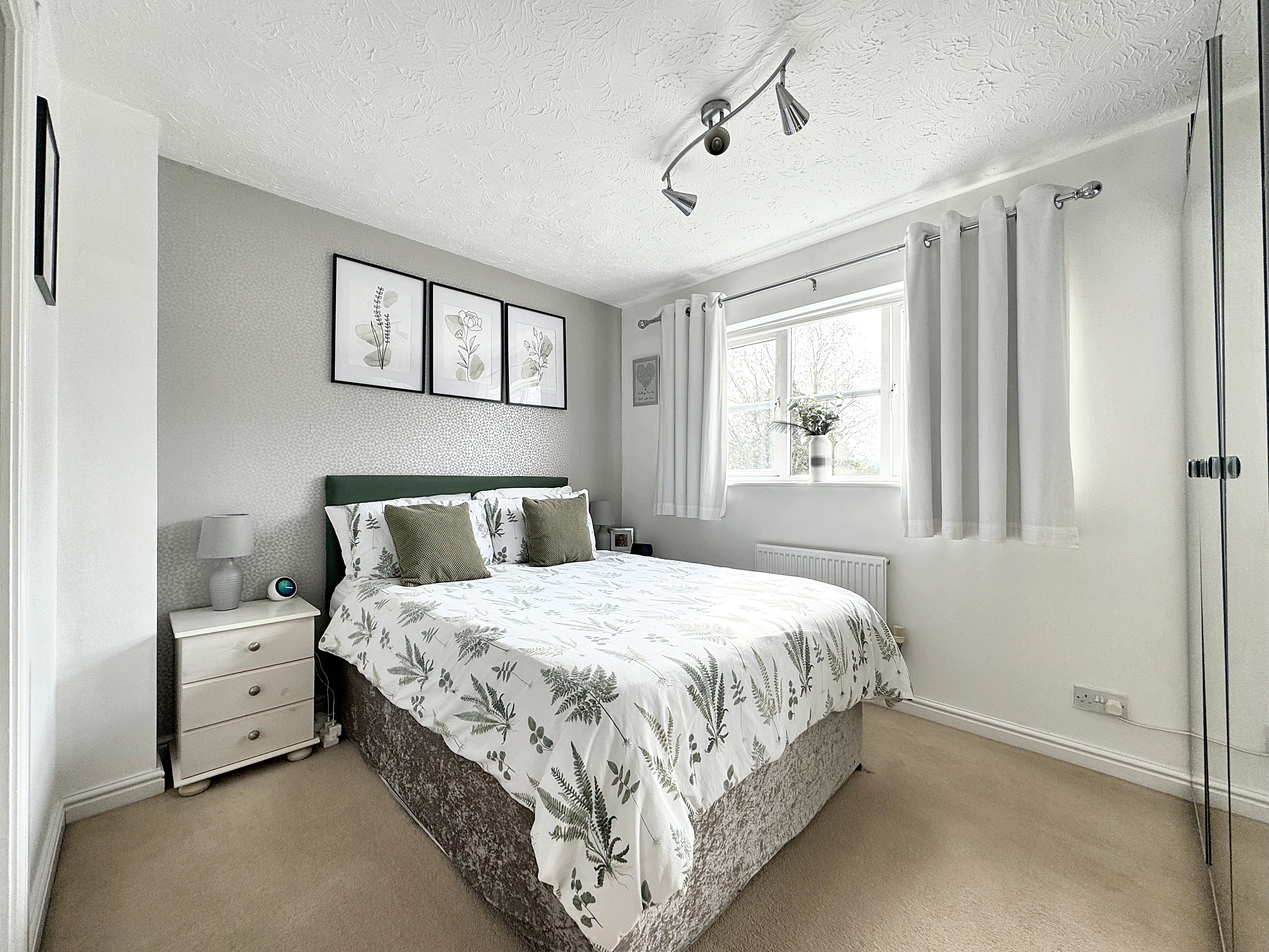 Bedroom 2 is to the front of the property with a large front facing window and of similar size to the master. There is built in storage/double wardrobe allowing for more space for bedroom furniture. The floors are carpeted, walls are smoothly painted and the ceiling is artex.