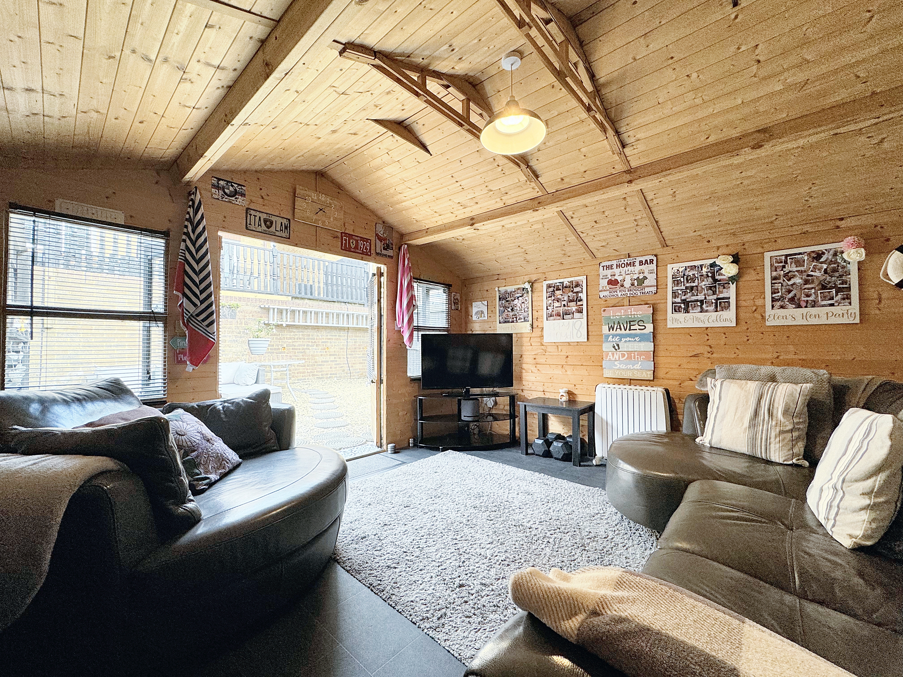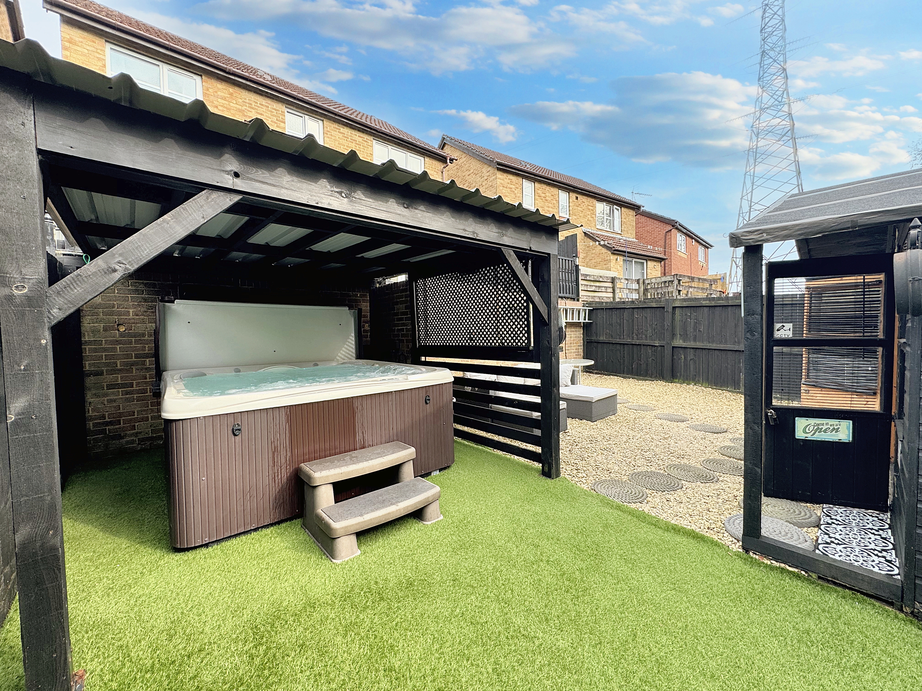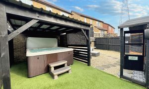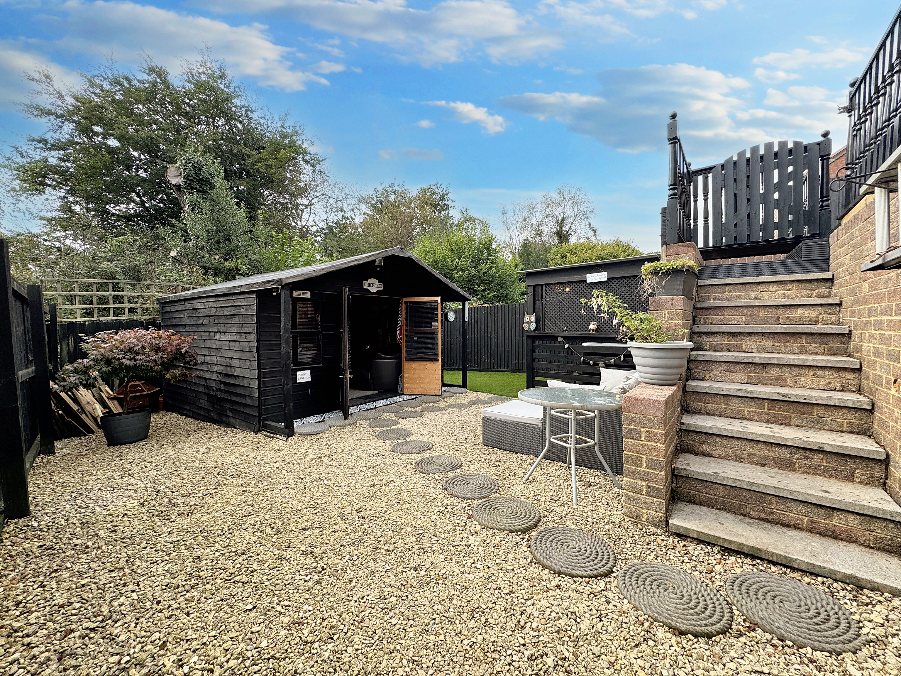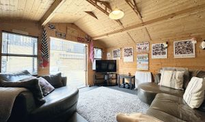 The rear garden is a fantastic space, with multiple tiers and views across the valley. The top tier is a large decked space enclosed with fencing and perfect for BBQs, outdoor dining etc. Steps lead you down to the next tier where there is a large stoned area with a large garden shed / summer house with double doors, windows and seating inside. Furthermore, there is a large turfed area, currently home to the hot tub and a pergola for shelter. The garden is enclosed, is surrounded by trees and the beautiful sound of the birds.