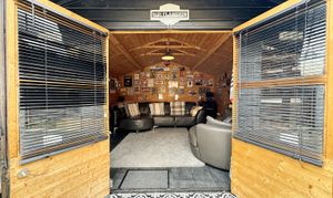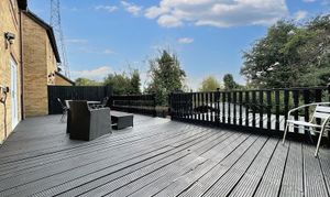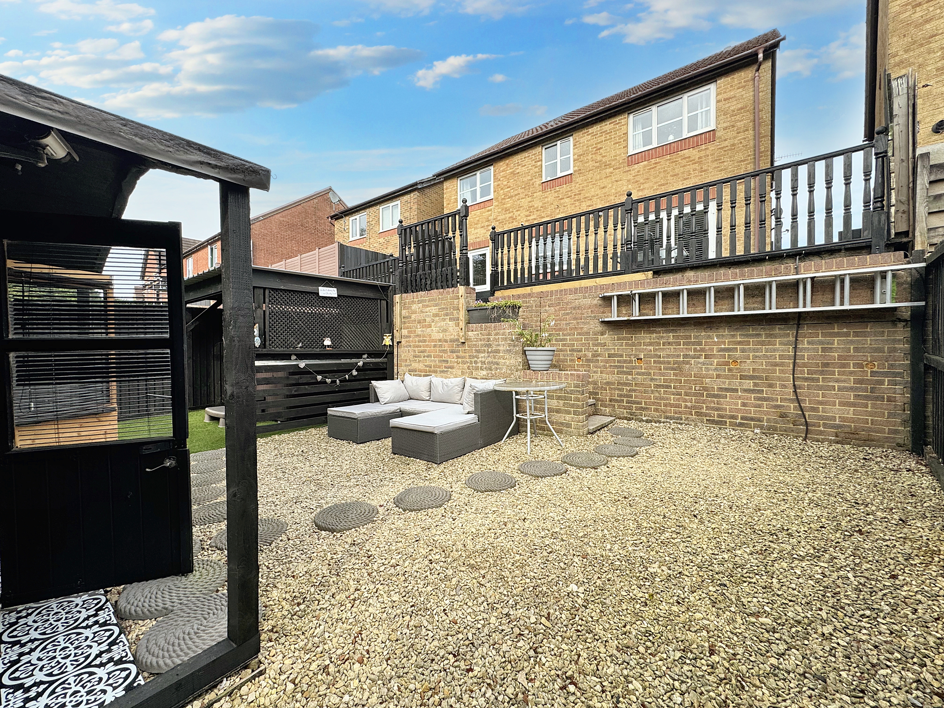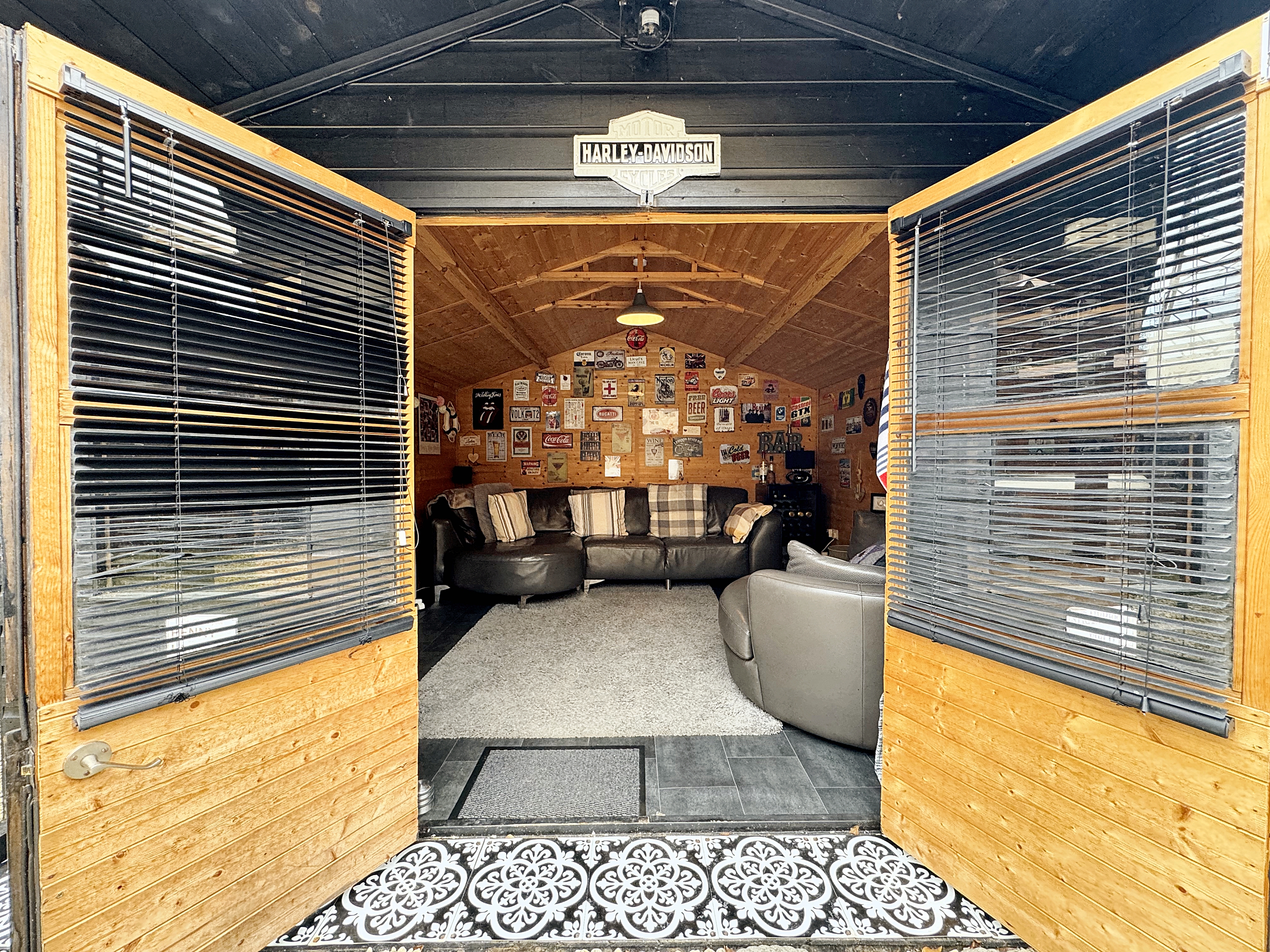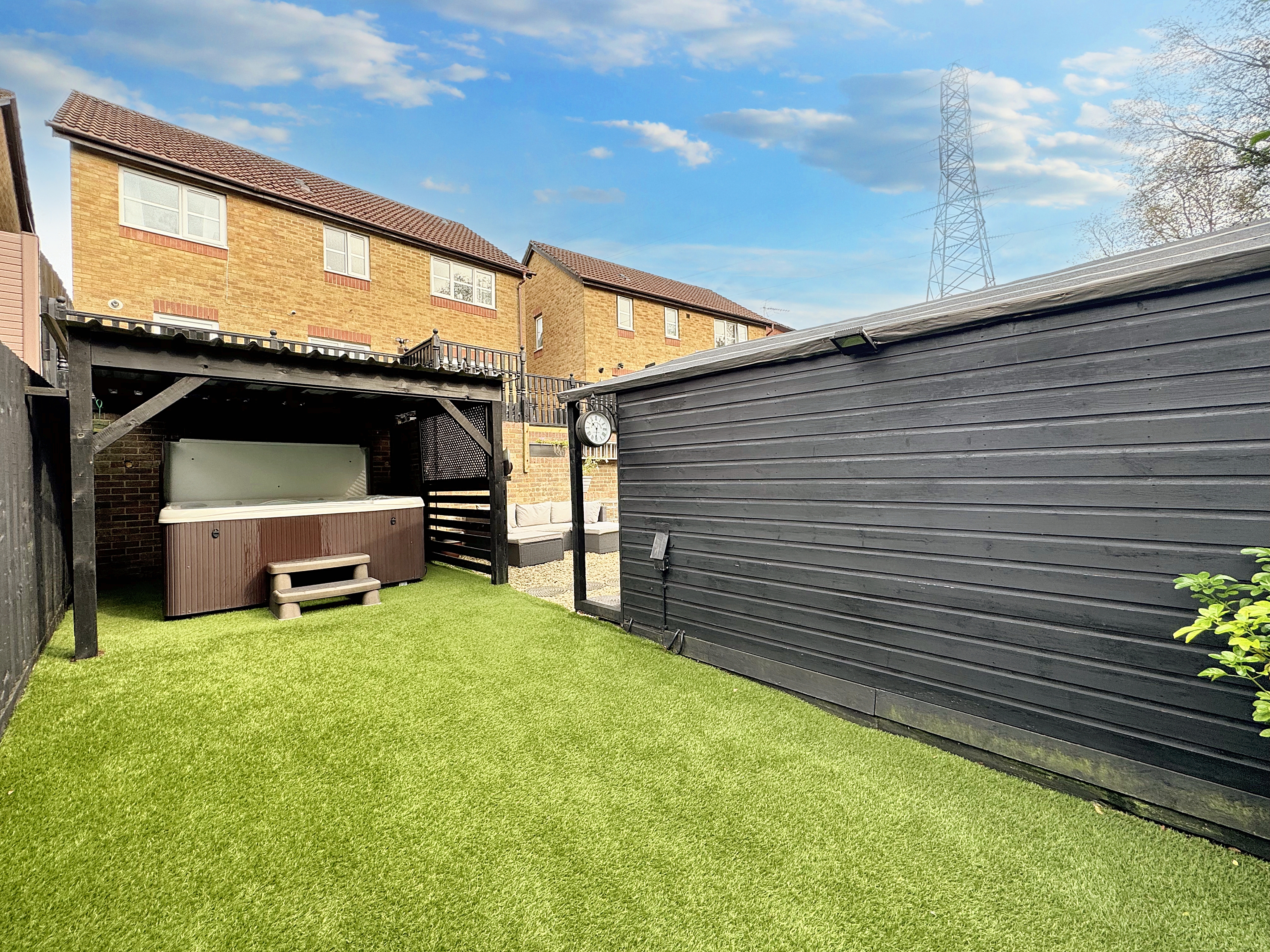 The rear garden is a fantastic space, with multiple tiers and views across the valley. The top tier is a large decked space enclosed with fencing and perfect for BBQs, outdoor dining etc. Steps lead you down to the next tier where there is a large stoned area with a large garden shed / summer house with double doors, windows and seating inside. Furthermore, there is a large turfed area, currently home to the hot tub and a pergola for shelter. The garden is enclosed, is surrounded by trees and the beautiful sound of the birds.
