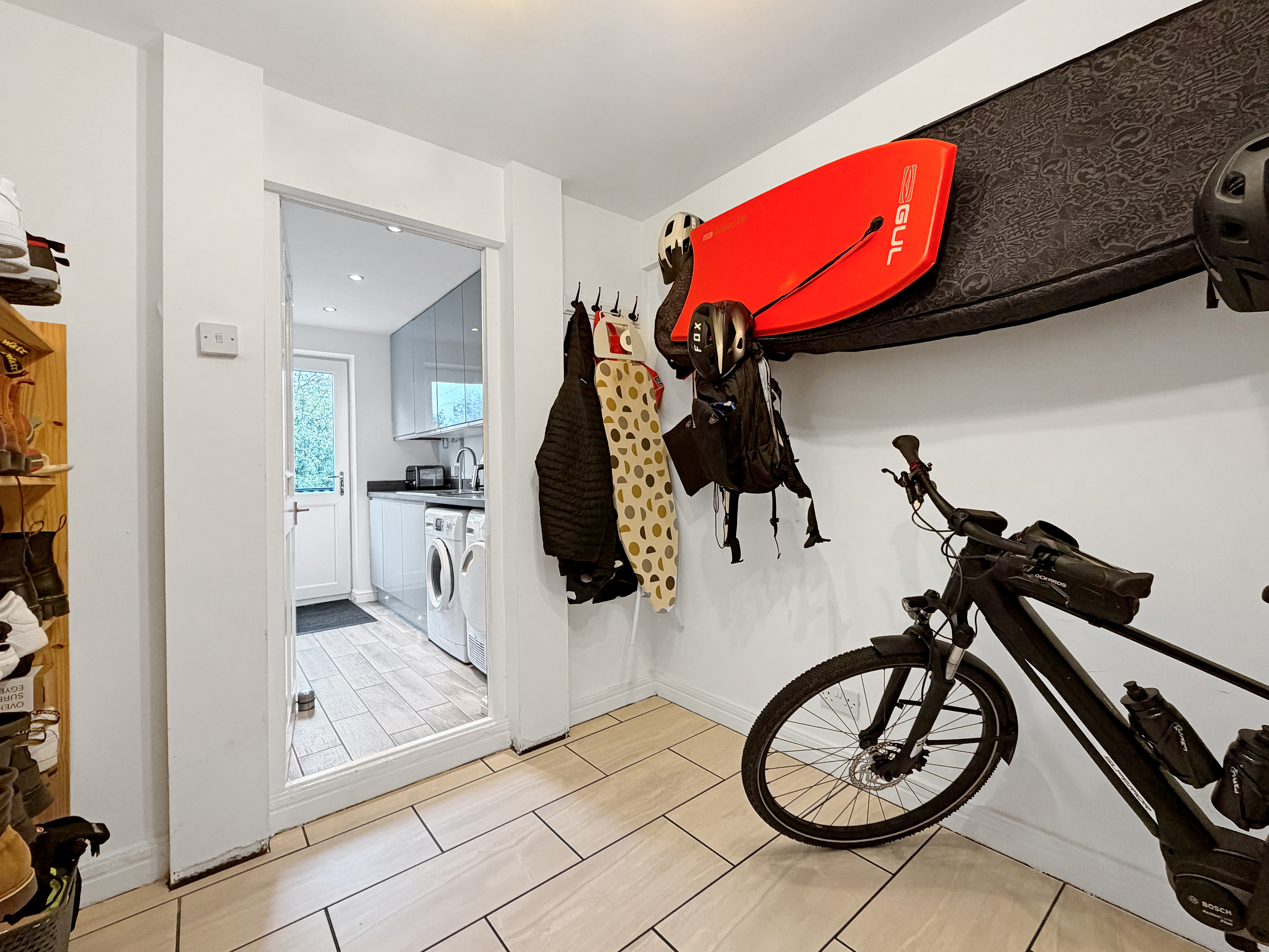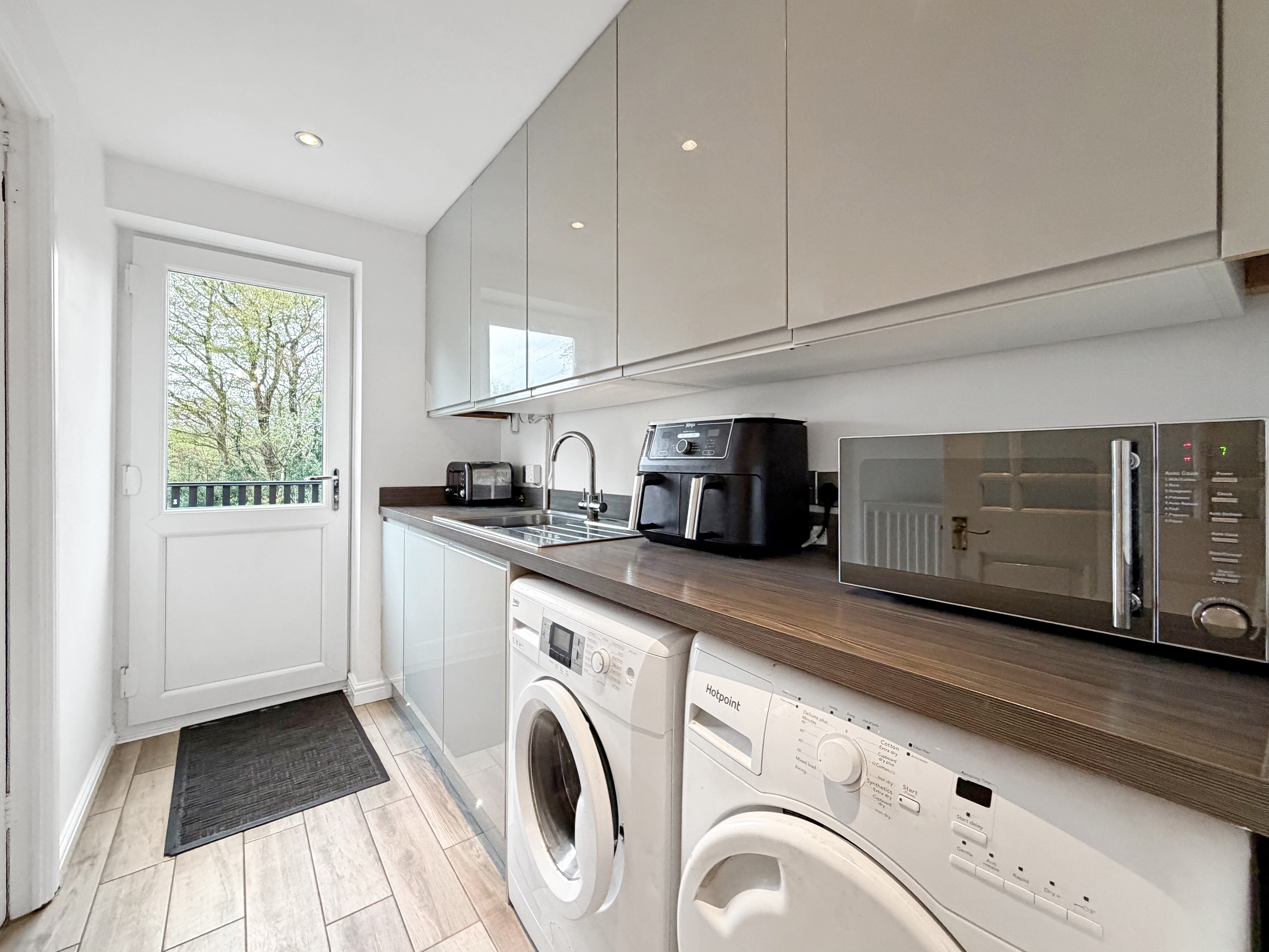 The utility room provides access to the garden via the rear UPVC door overlooking the views of the valley. Floor and wall units line the room with an additional sink and storage all coinciding with the kitchen. It is from the utility you have access to the spare room.