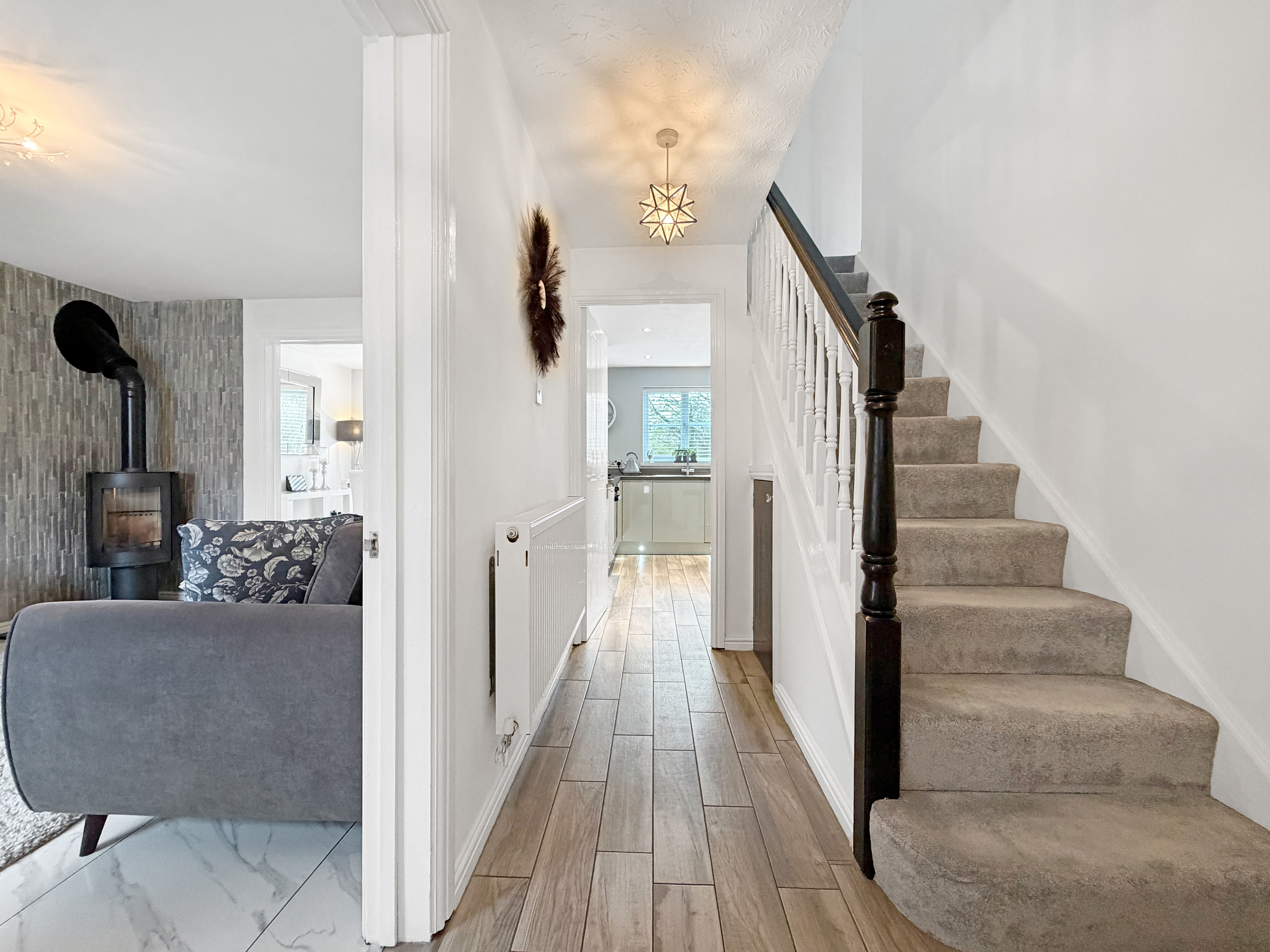 A composite door leads you into this spacious and modern home, with tiled floor, smooth painted walls and ceiling, this hallway welcomes you in with access to the lounge, kitchen/diner, W/C and upstairs.