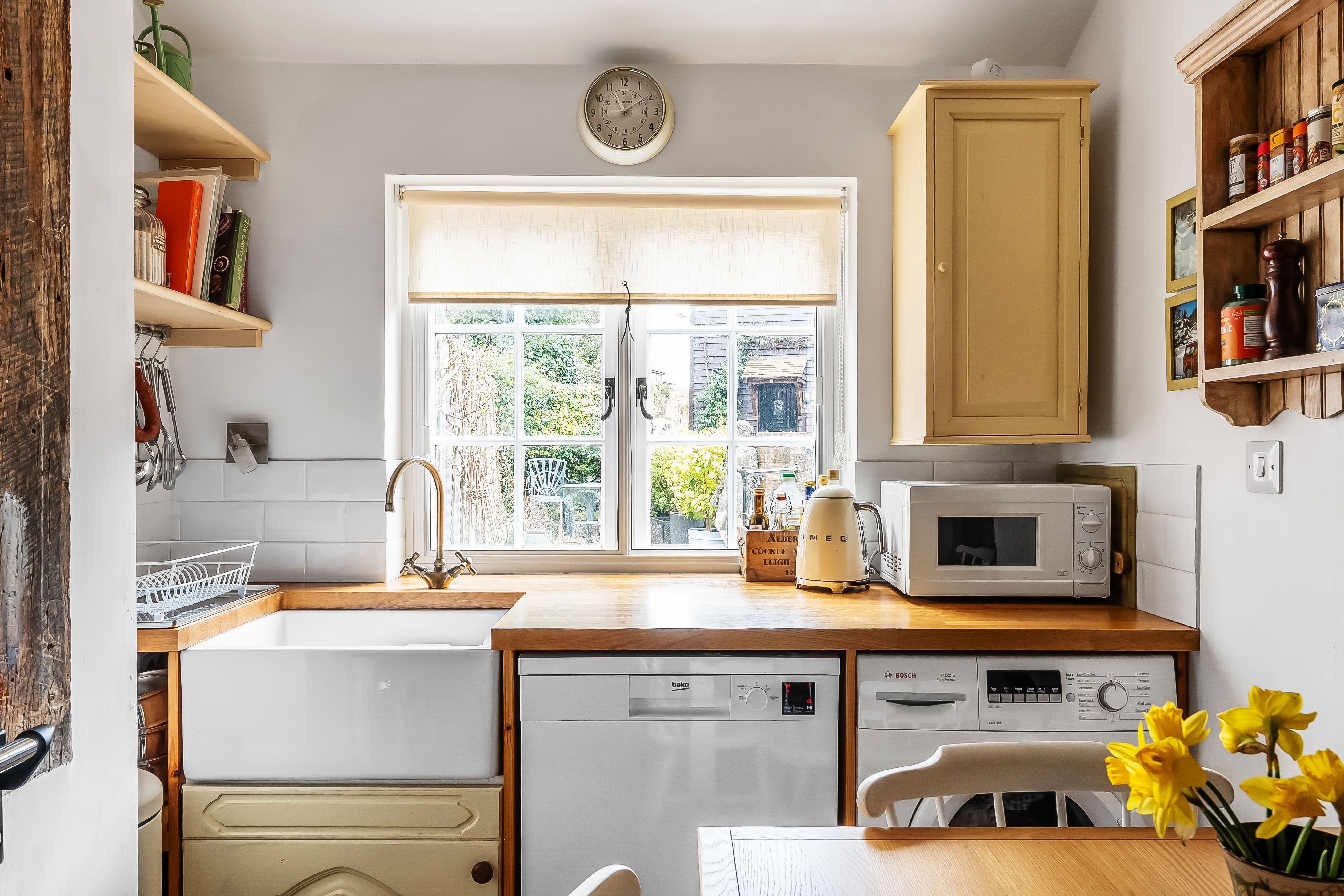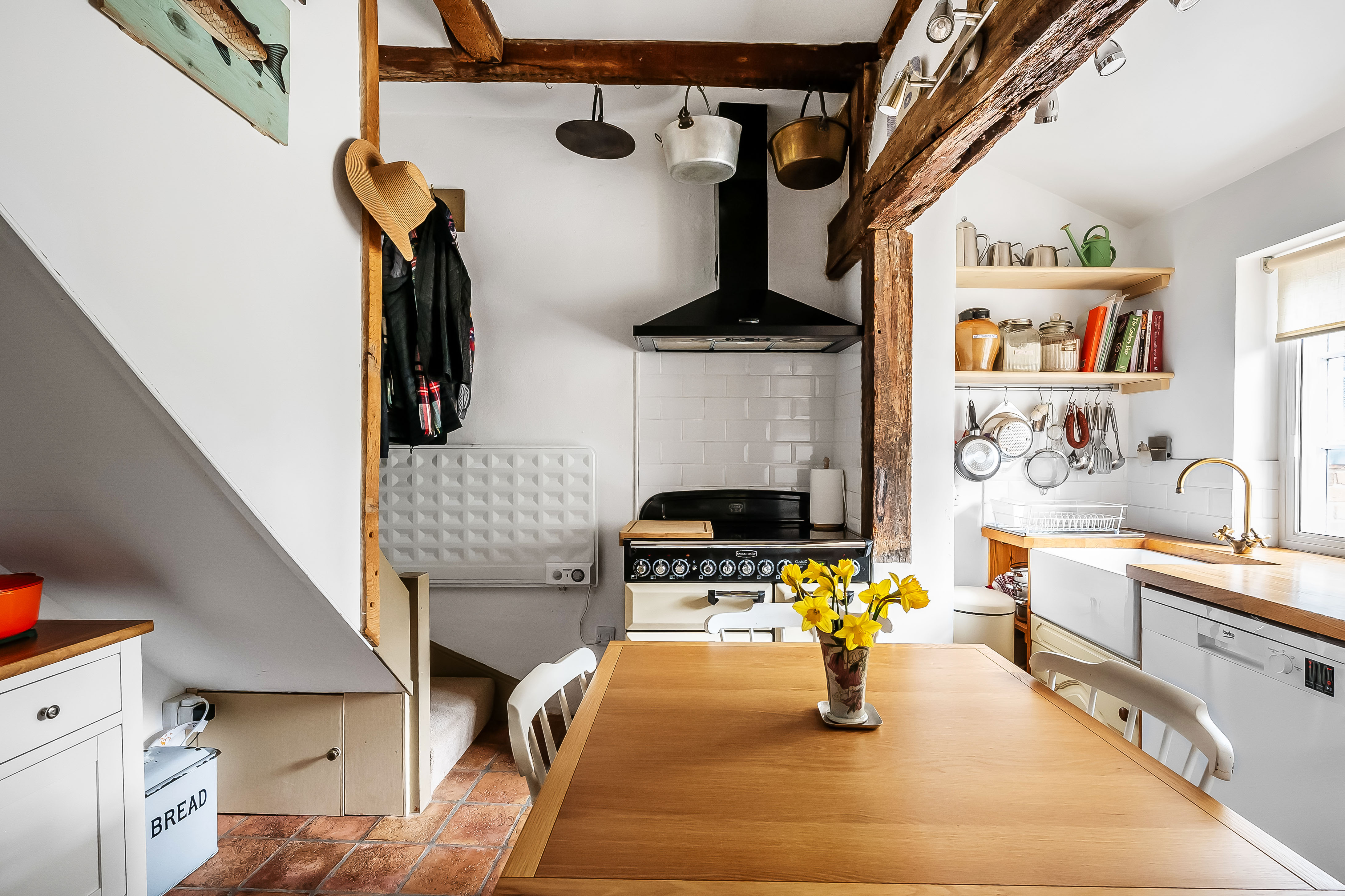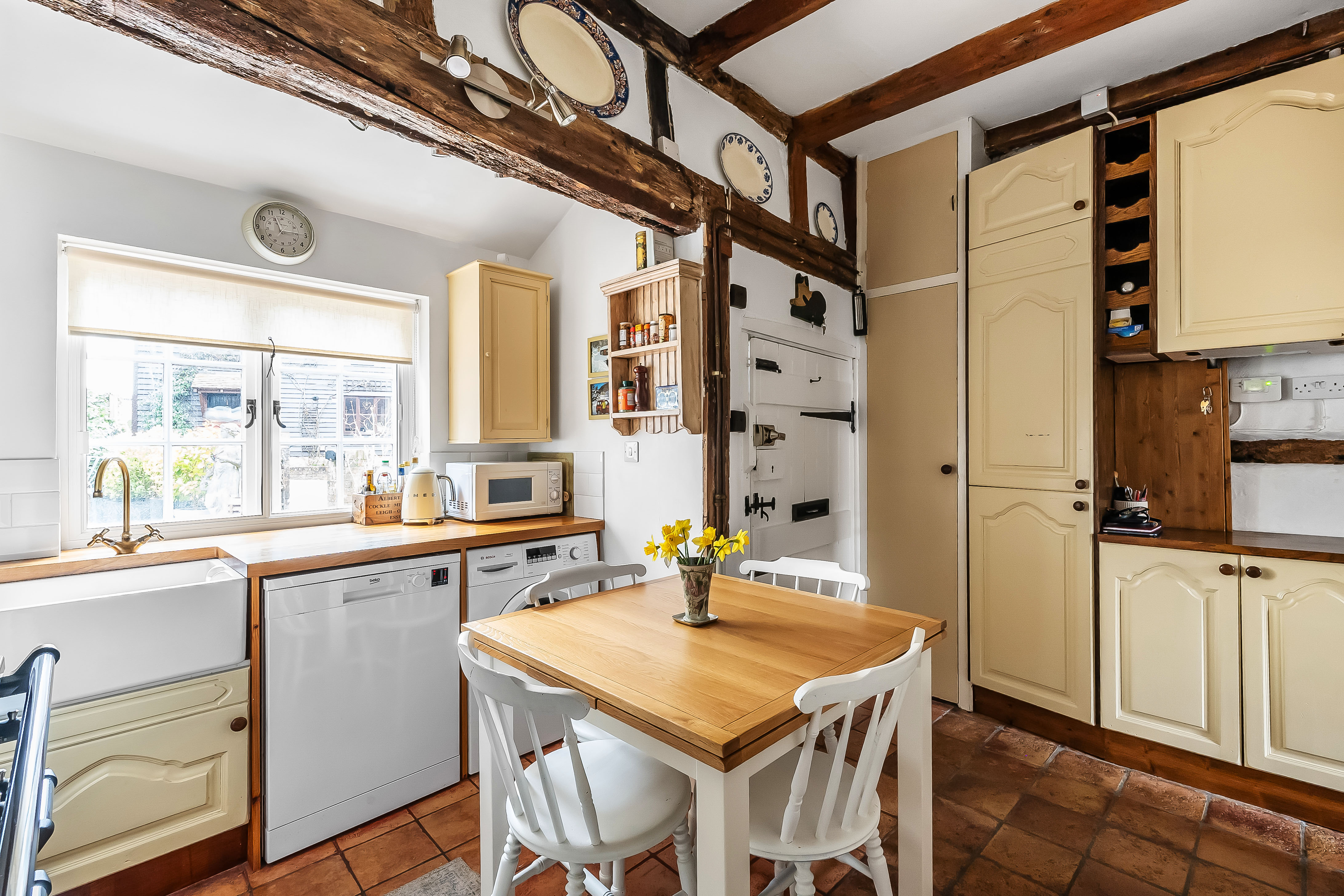 Builth Cottage is a captivating attached former Wealden Hall House set in the very heart of this sought-after village. Steeped in history and charm, it features beautifully exposed wall and ceiling timbers, warm wood flooring and an impressive full-width inglenook fireplace that forms a wonderful focal point within the home.