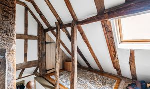 - Exposed wall and ceiling timbers and oak flooring throughout
