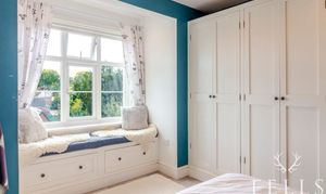 A peaceful master double with fitted wardrobes, original feature fireplace and a charming window seat overlooking the garden.