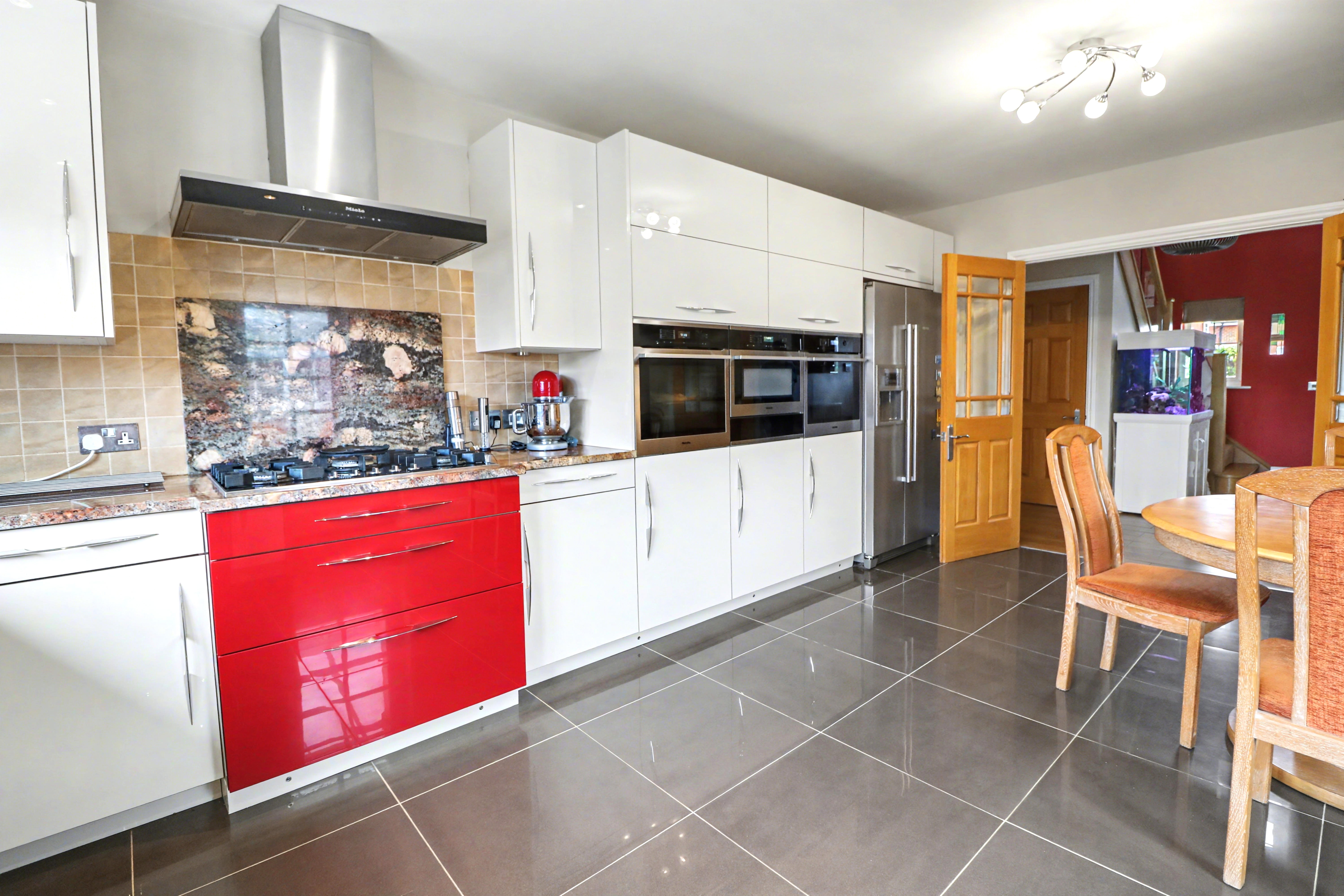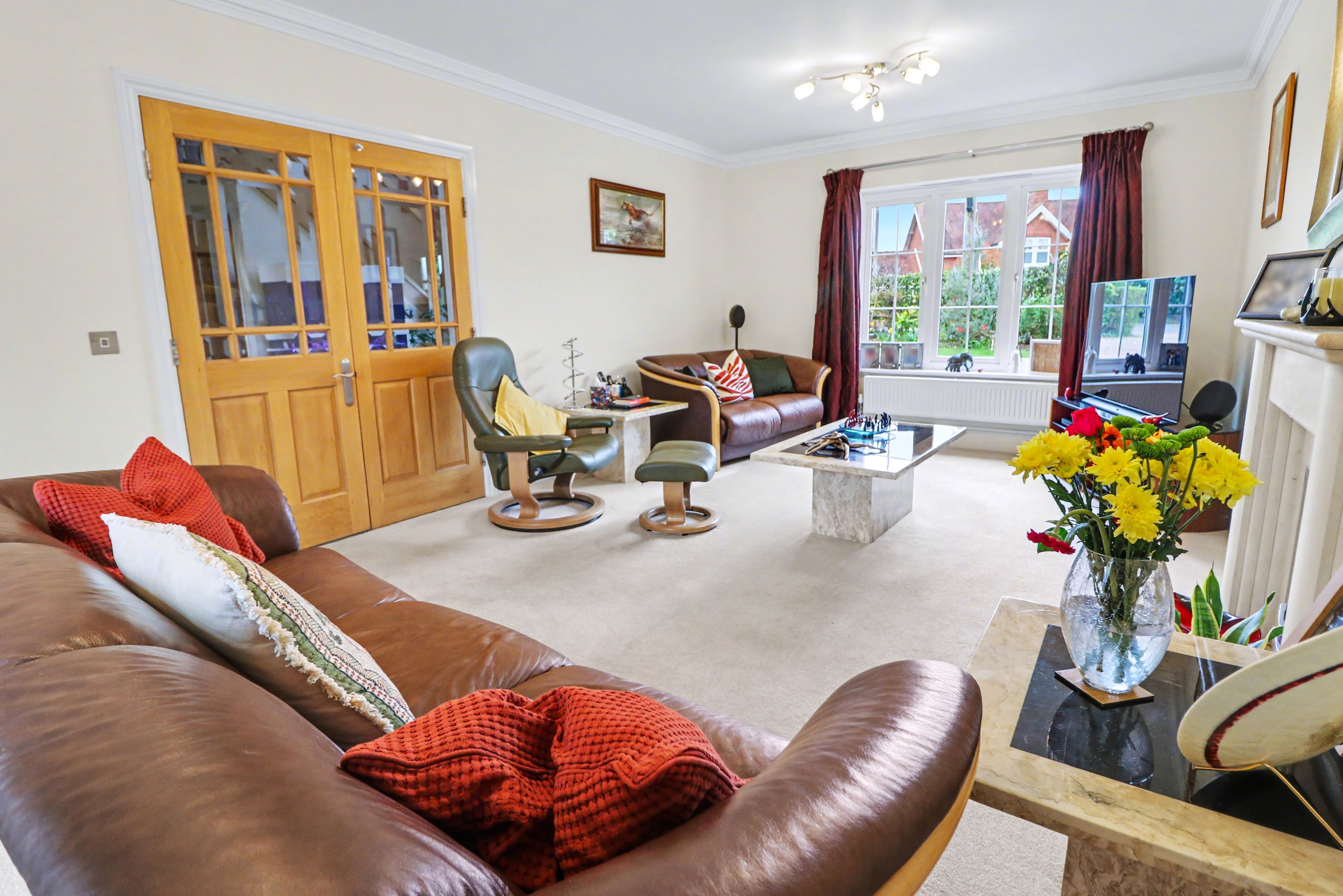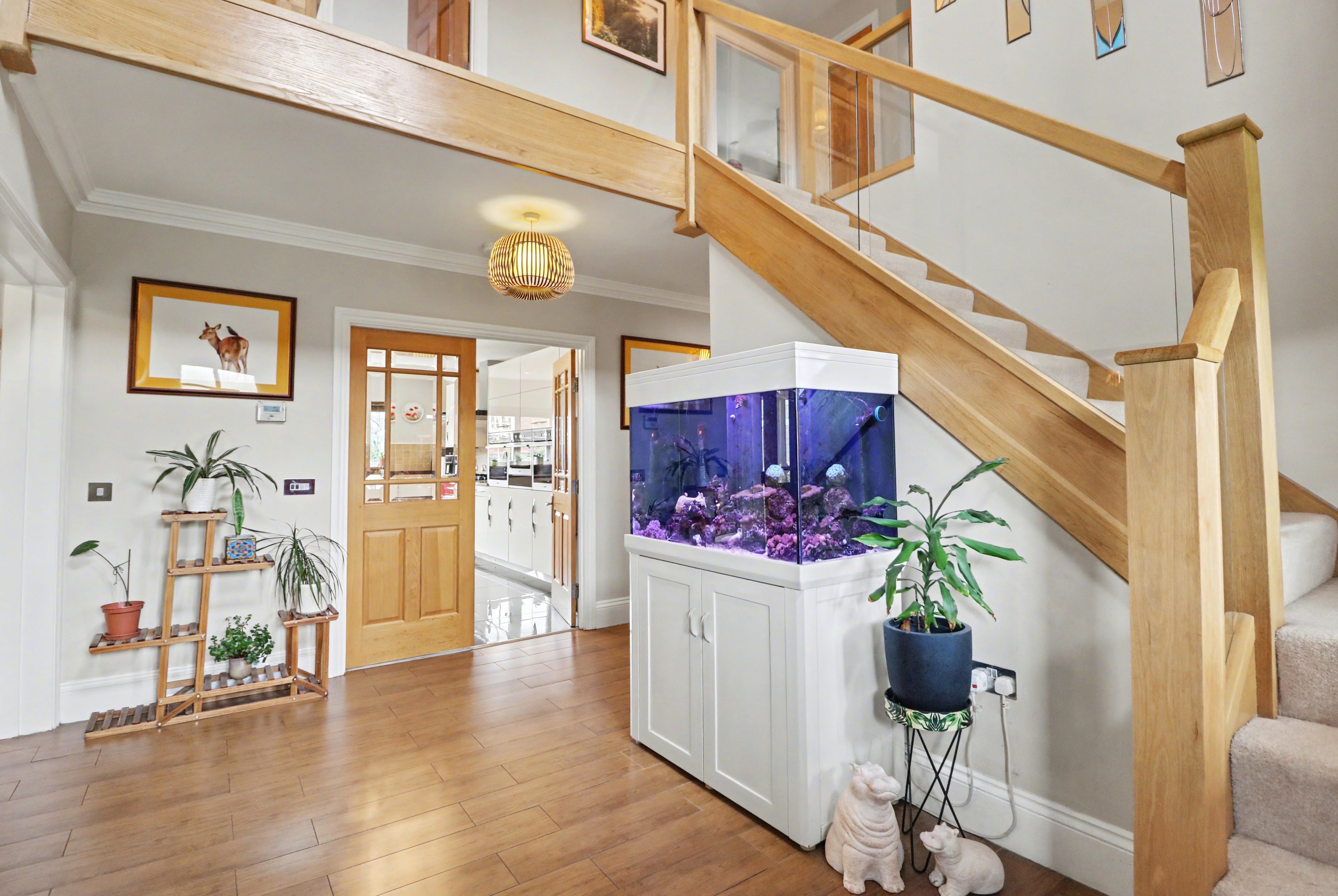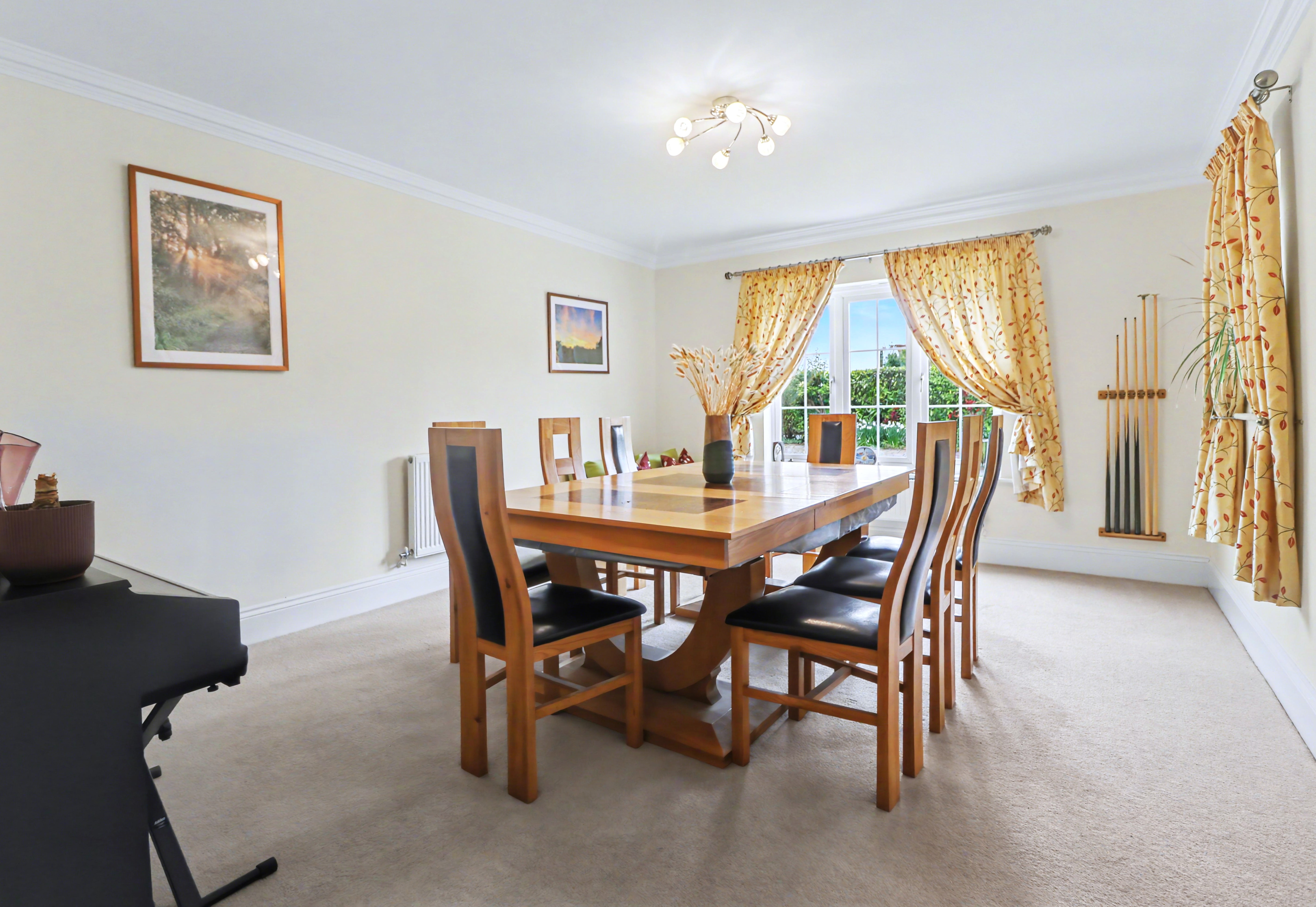 This impressive, five bedroom detached family home benefits from an attractive rear garden, a double garage and driveway parking for several cars.