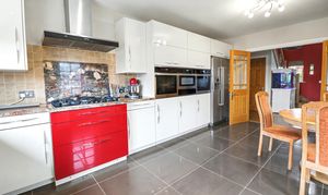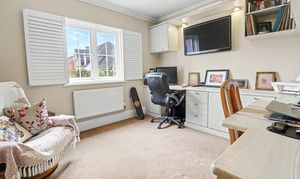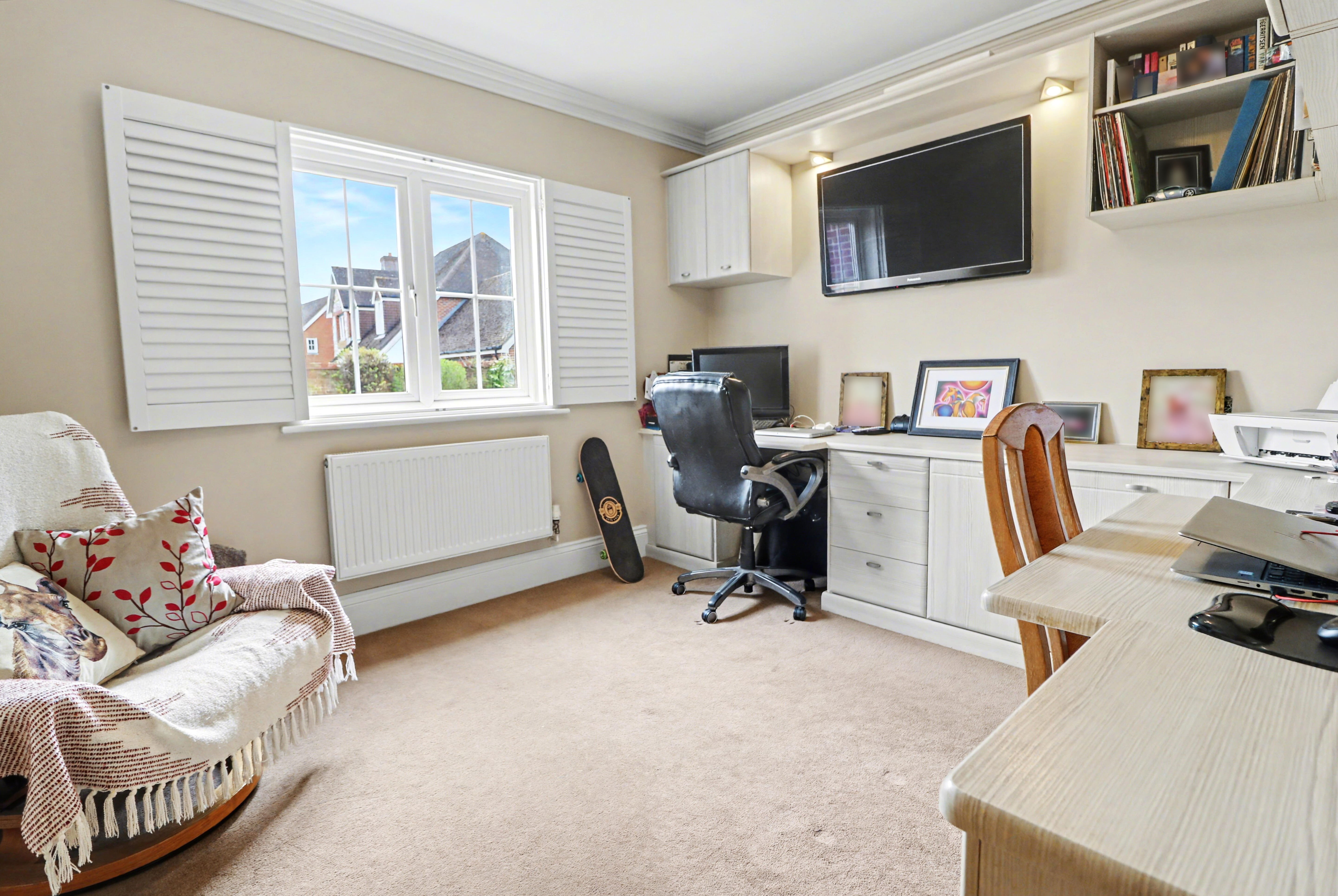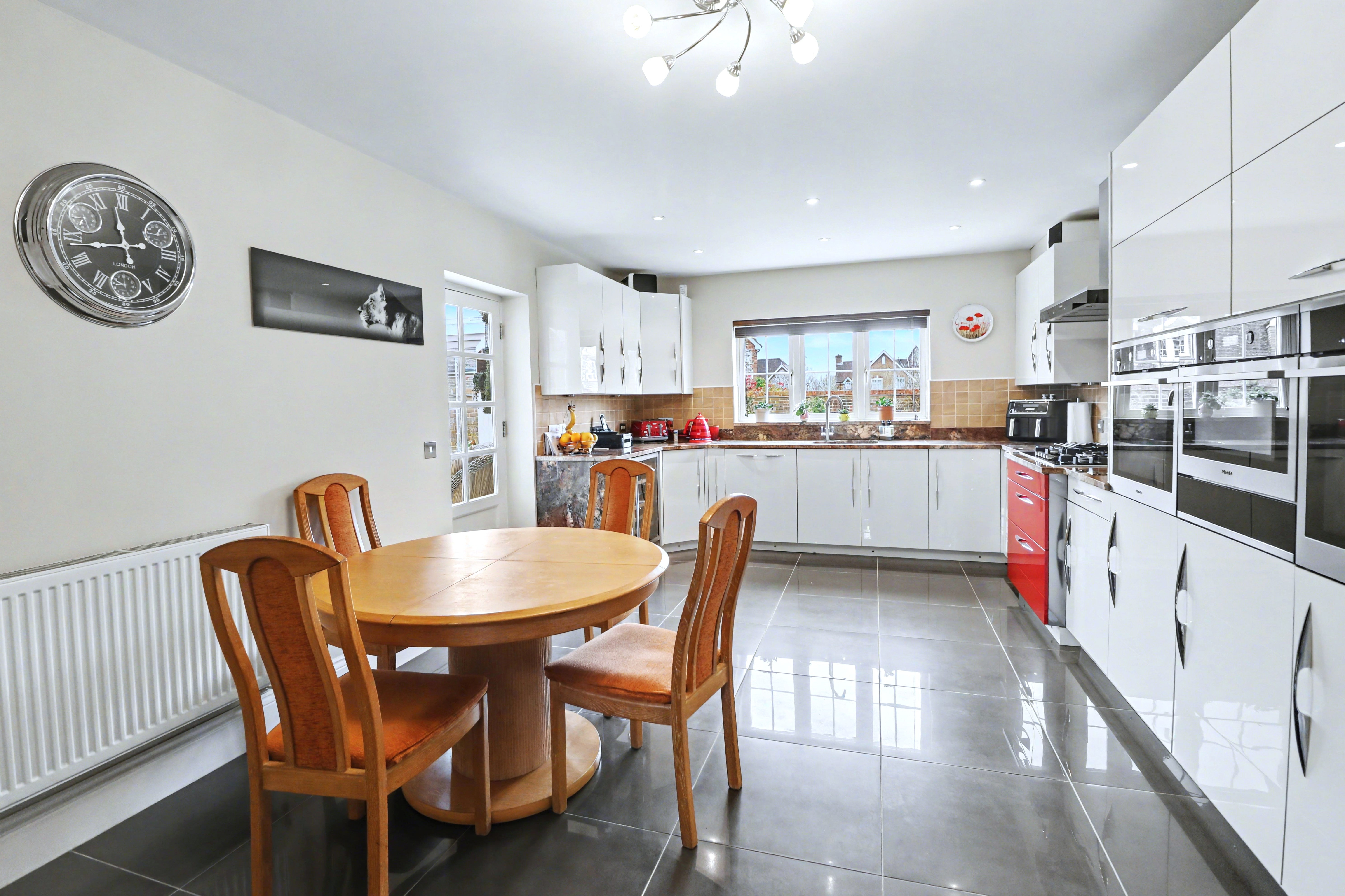 The good size dining room has windows to the front aspect, whilst the study has a window to the rear and a range of fitted office furniture. The utility offers fitted units with space for a washing machine and tumble dryer and has a door to the side.