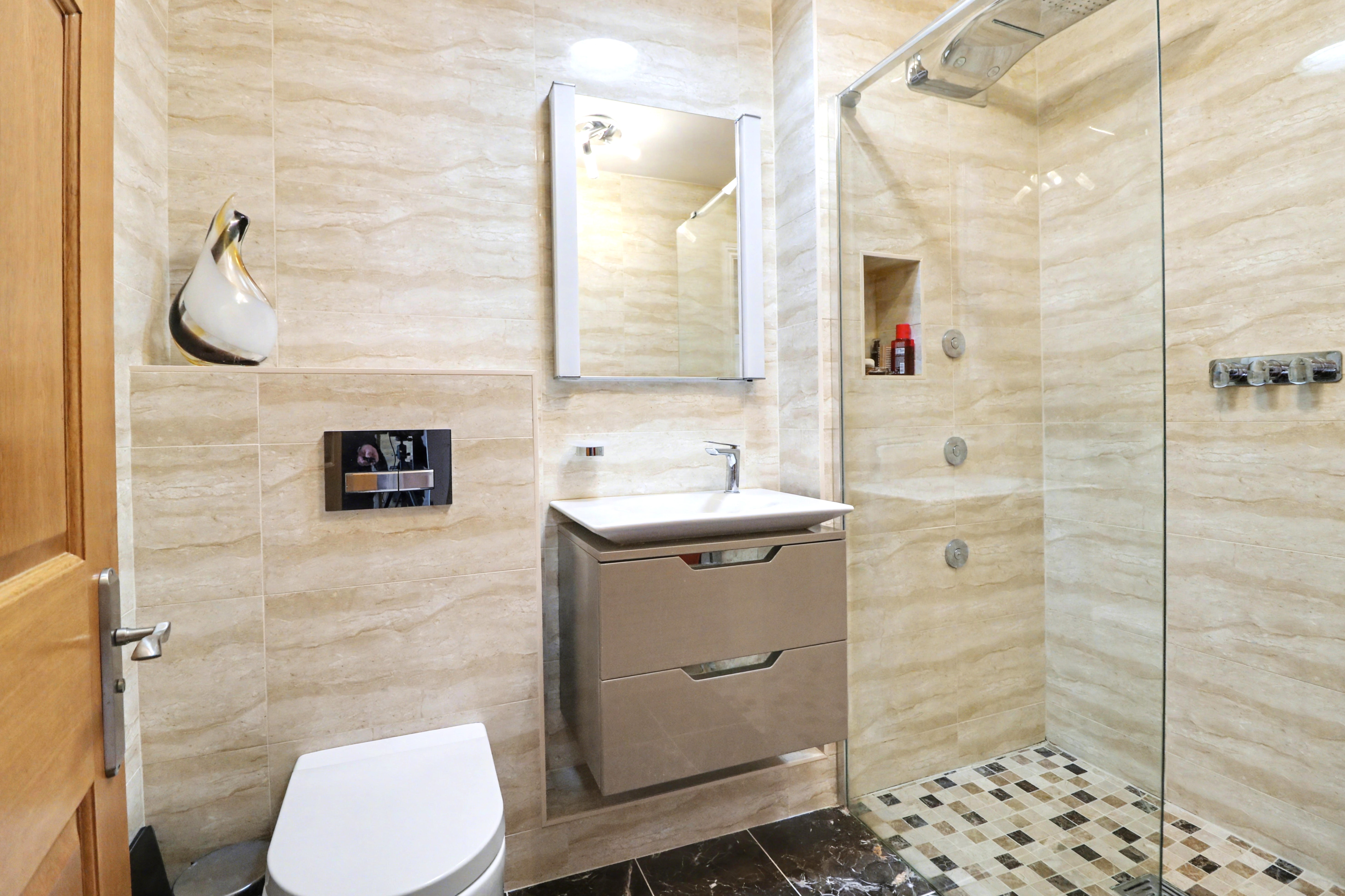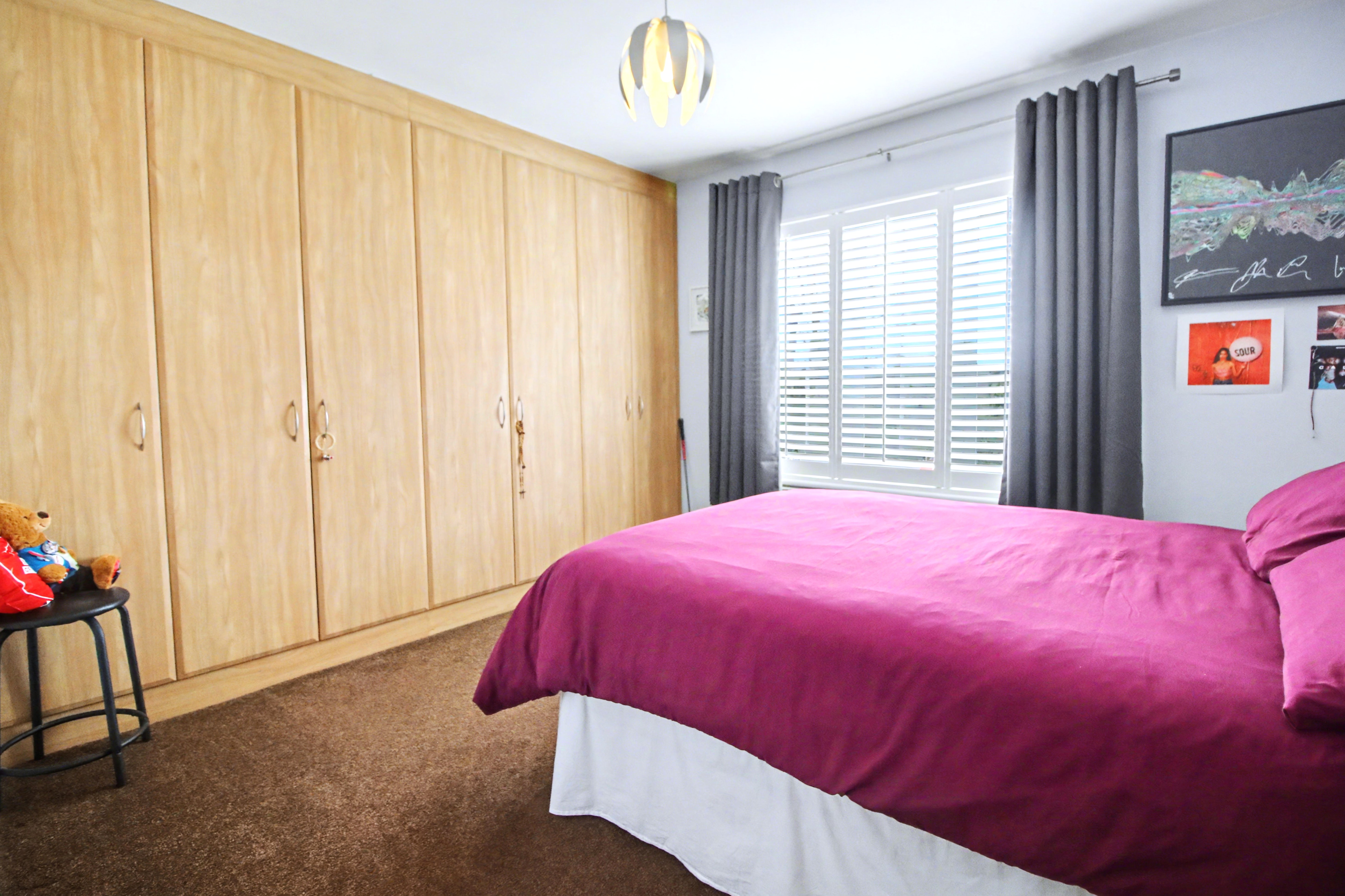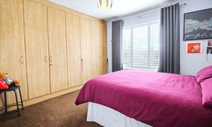 On the first floor, the good size master bedroom overlooks the rear garden and has a wide range of fitted wardrobes and cupboards. The adjoining, modern en-suite comprises a walk-in shower, vanity wash hand basin and WC.