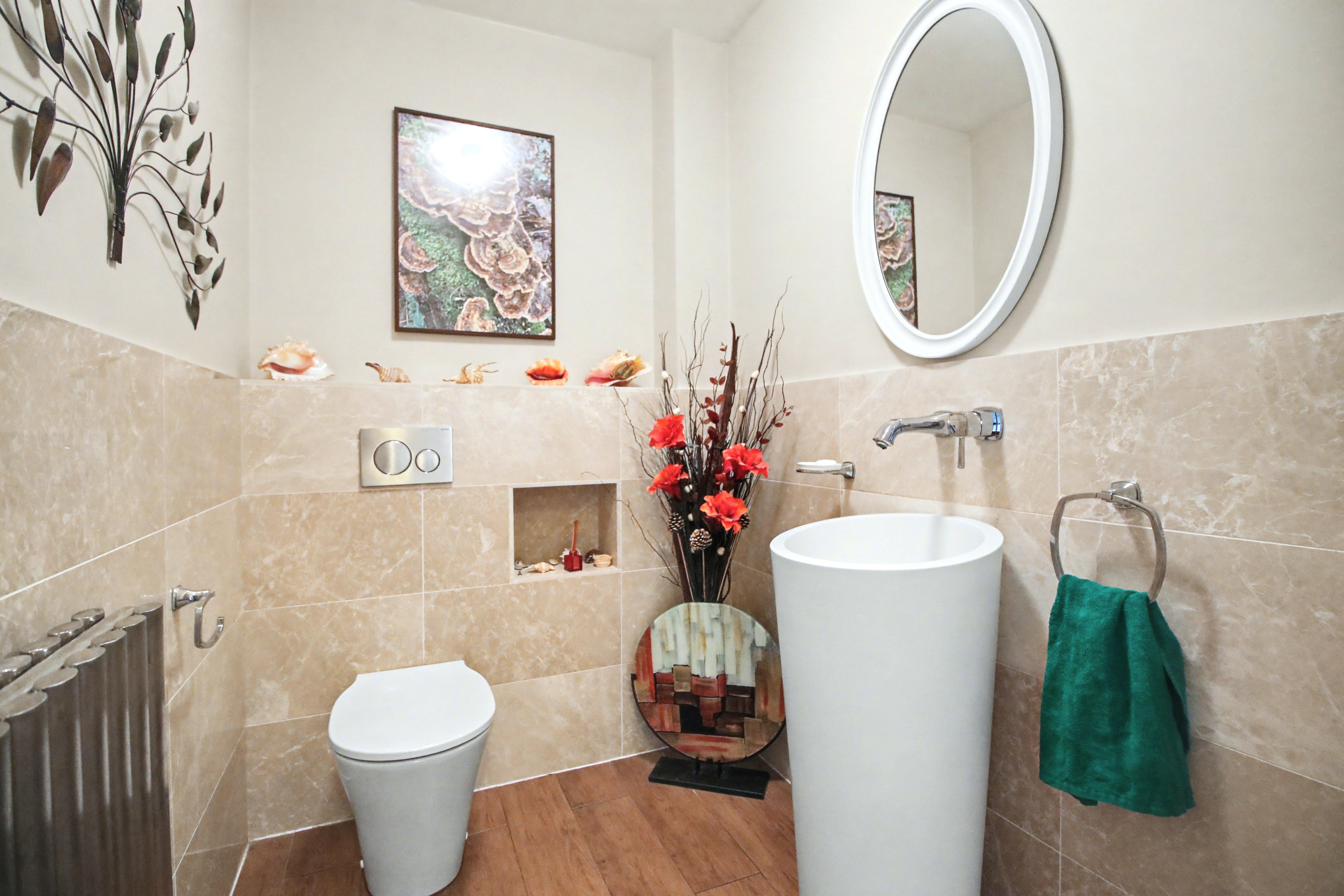 Bedroom two faces the front and has fitted wardrobes and storage along one wall, as well as a beautifully appointed en-suite with a walk-in shower, vanity wash hand basin and WC. Bedrooms three and five both enjoy views across the rear garden, whilst the fourth bedroom has a window to the front and fitted wardrobes and cupboards.