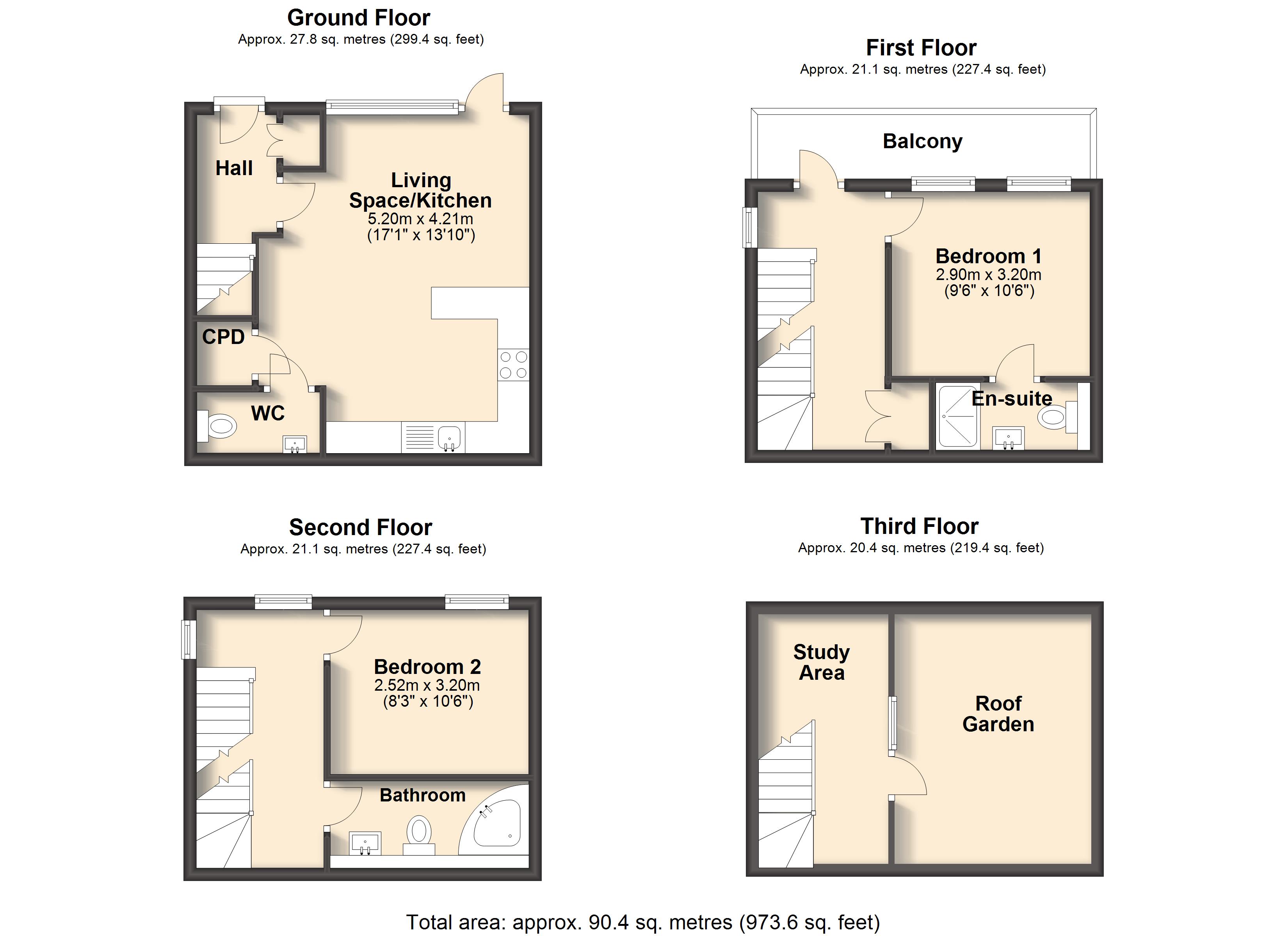 - Approx Sq Feet: 973 sqft