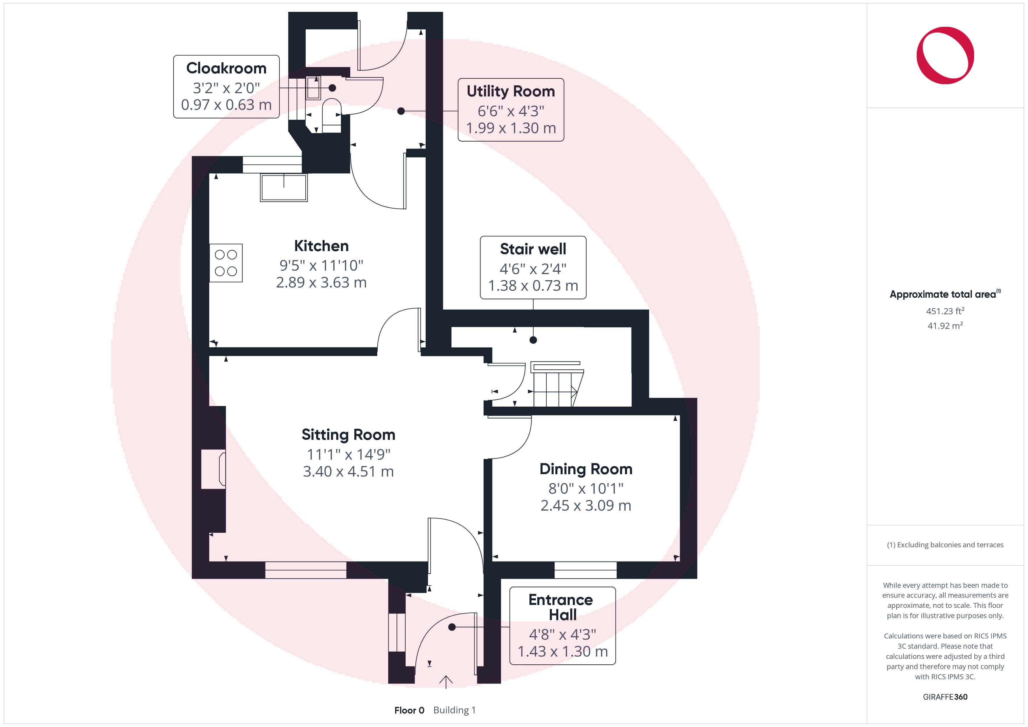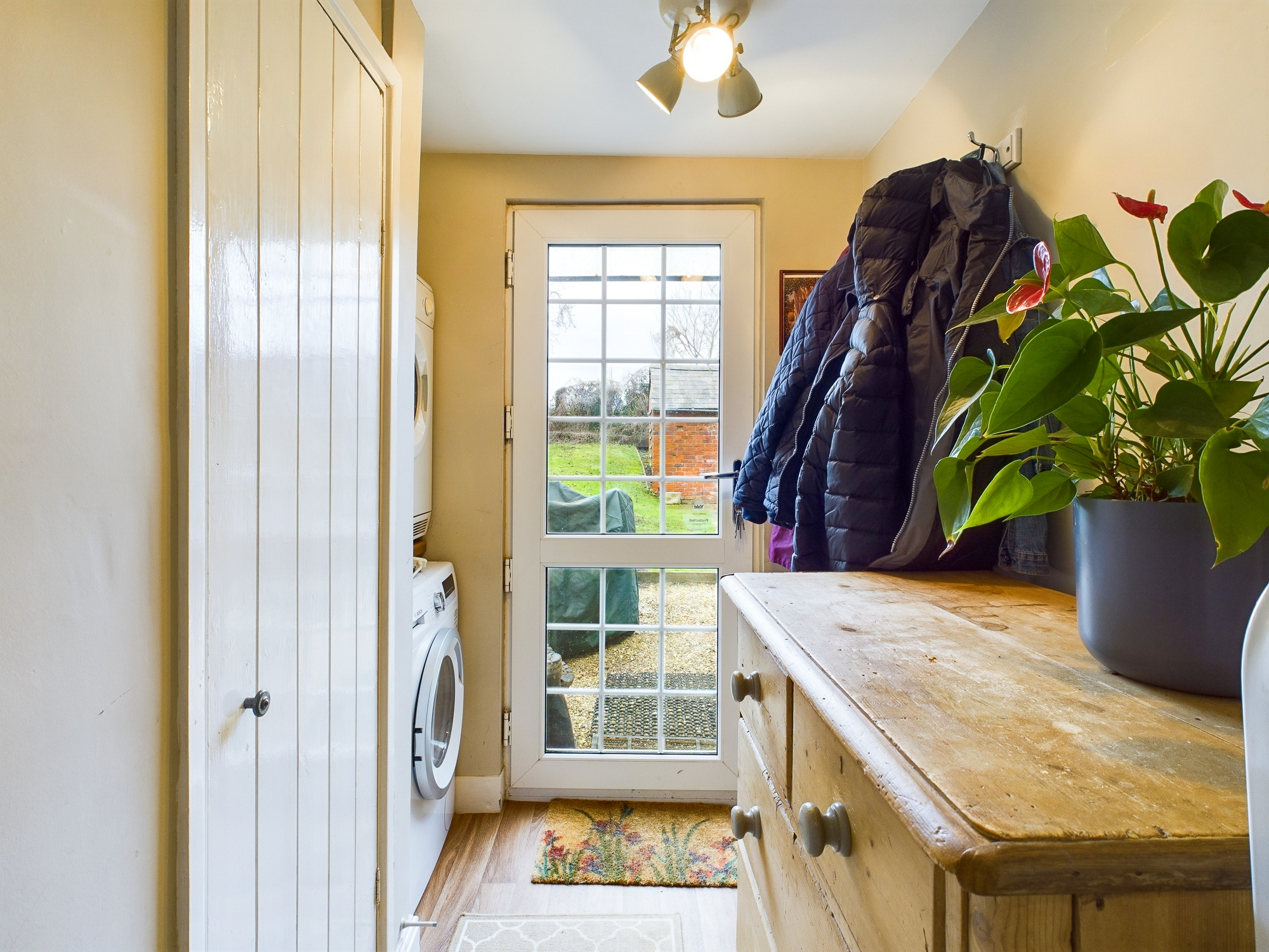 uPVC door into the rear garden. Plumbing for washing machine. Space for a tumble dryer above.