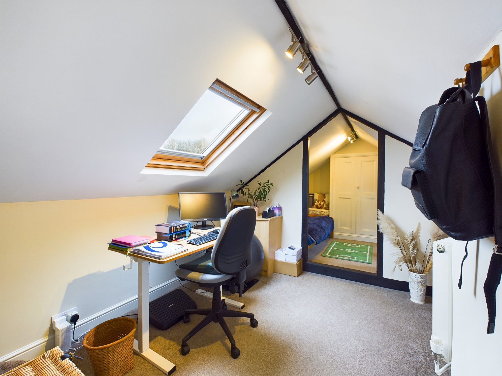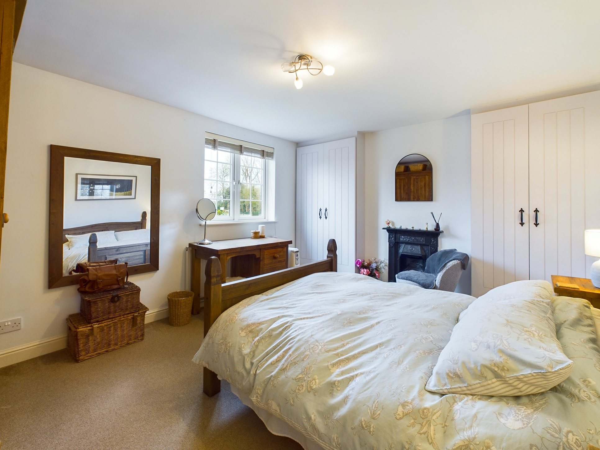 Situated at the front of the property, the large garage has a personal door to the side and a pair of wooden double doors to the front. Inside power and light are connected. The garage also benefits from approved planning permission to be converted into a Annexe consisting of a living room with kitchenet and French doors onto a patio, bedroom and shower room. For more information on the planning use reference ‘2023/5751/FULL’ on the West Northamptonshire Council planning portal.