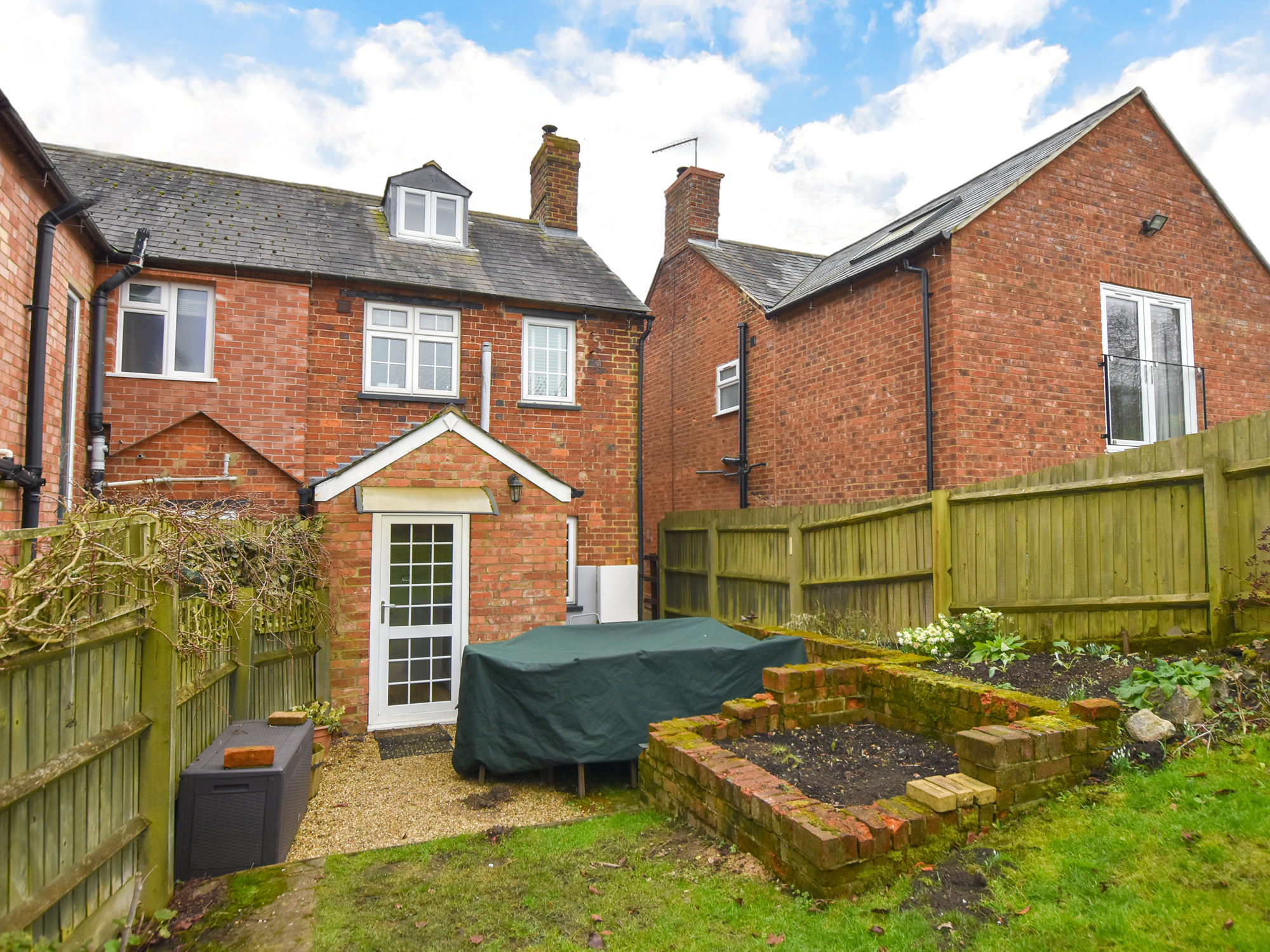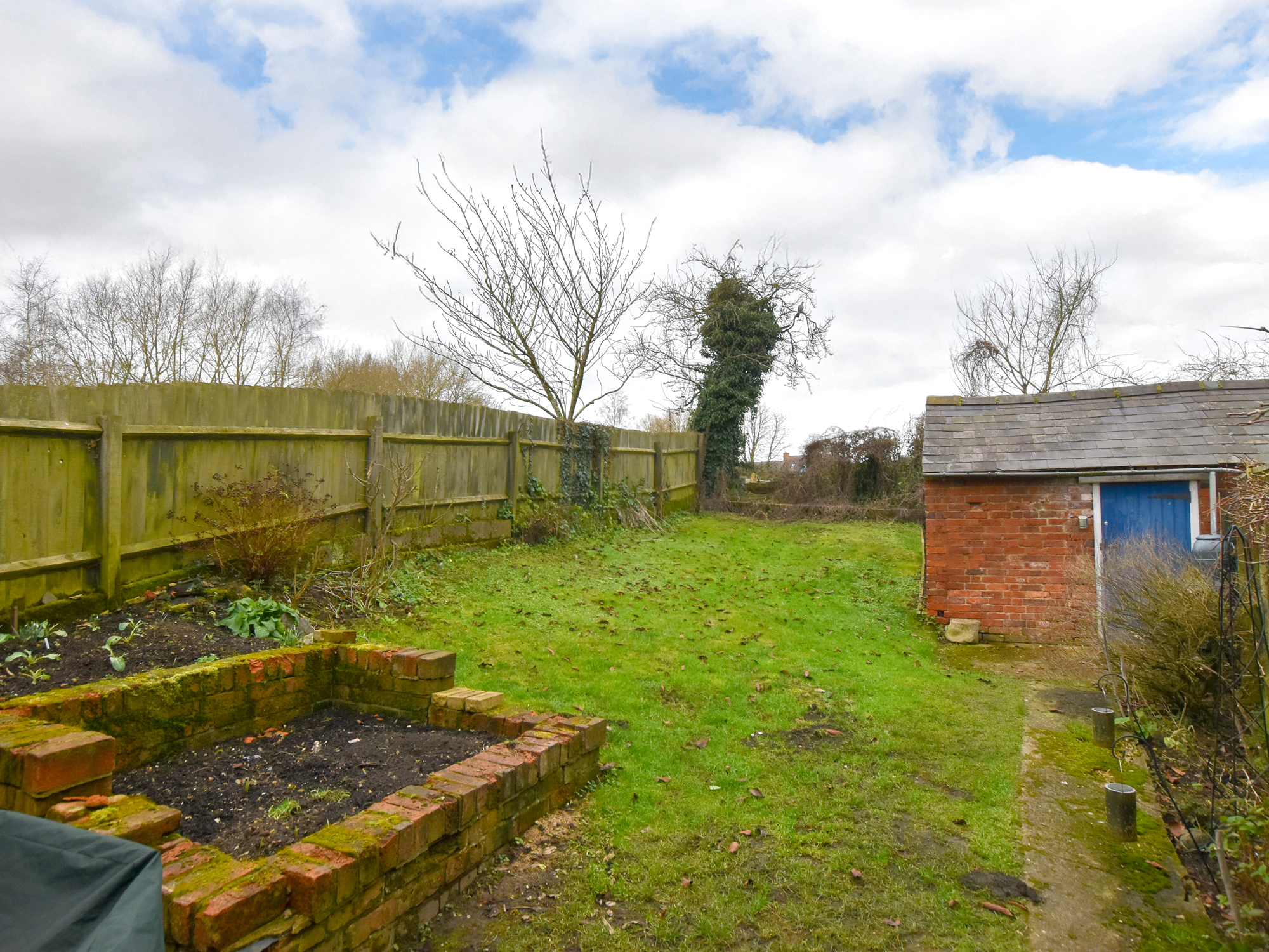 Fully enclosed by timber fencing and hedging, the rear garden is primarily laid to lawn and features a brick patio seating area, brick built raised beds, an outside tap and a gravel path leading to the side access.