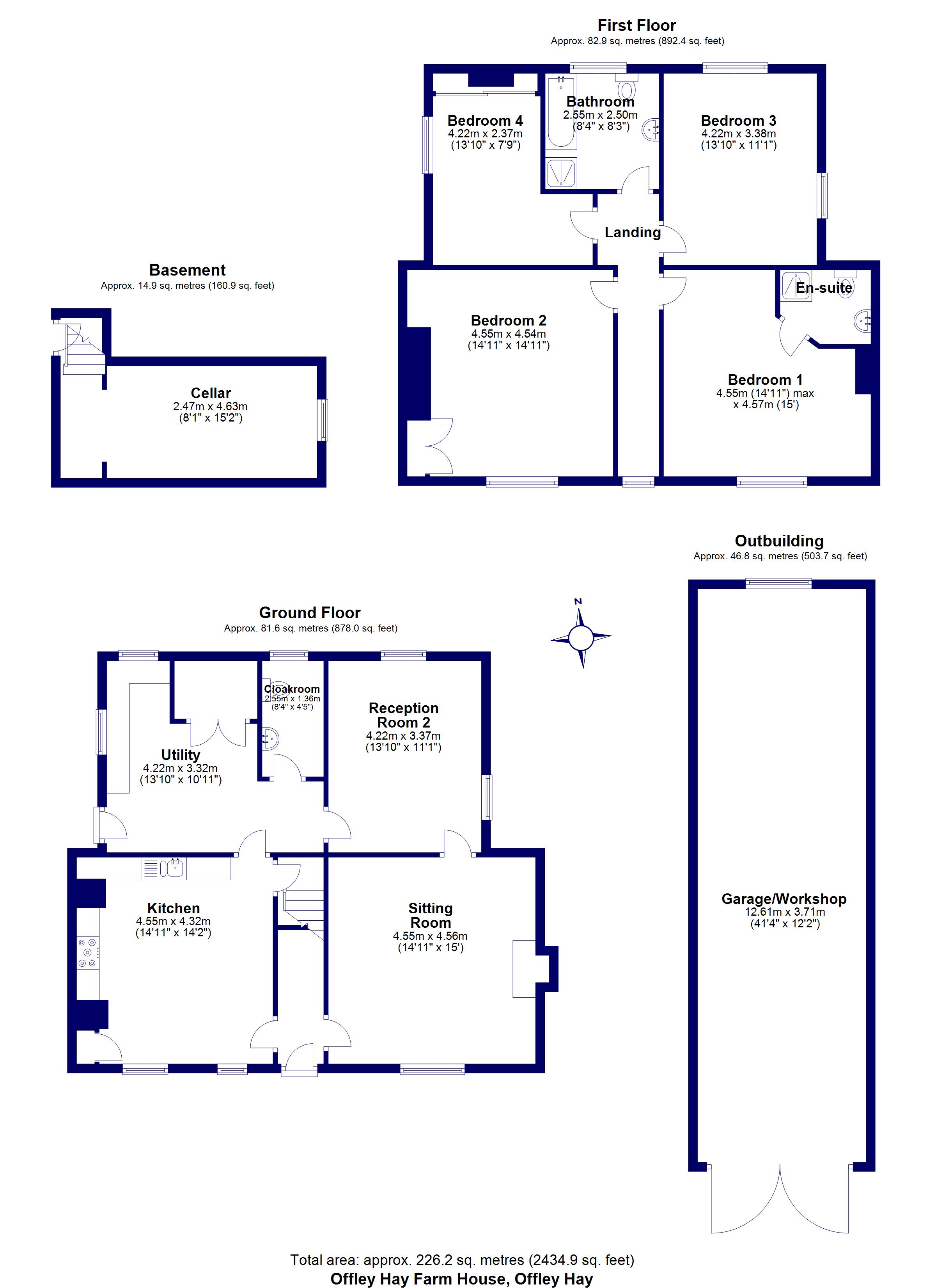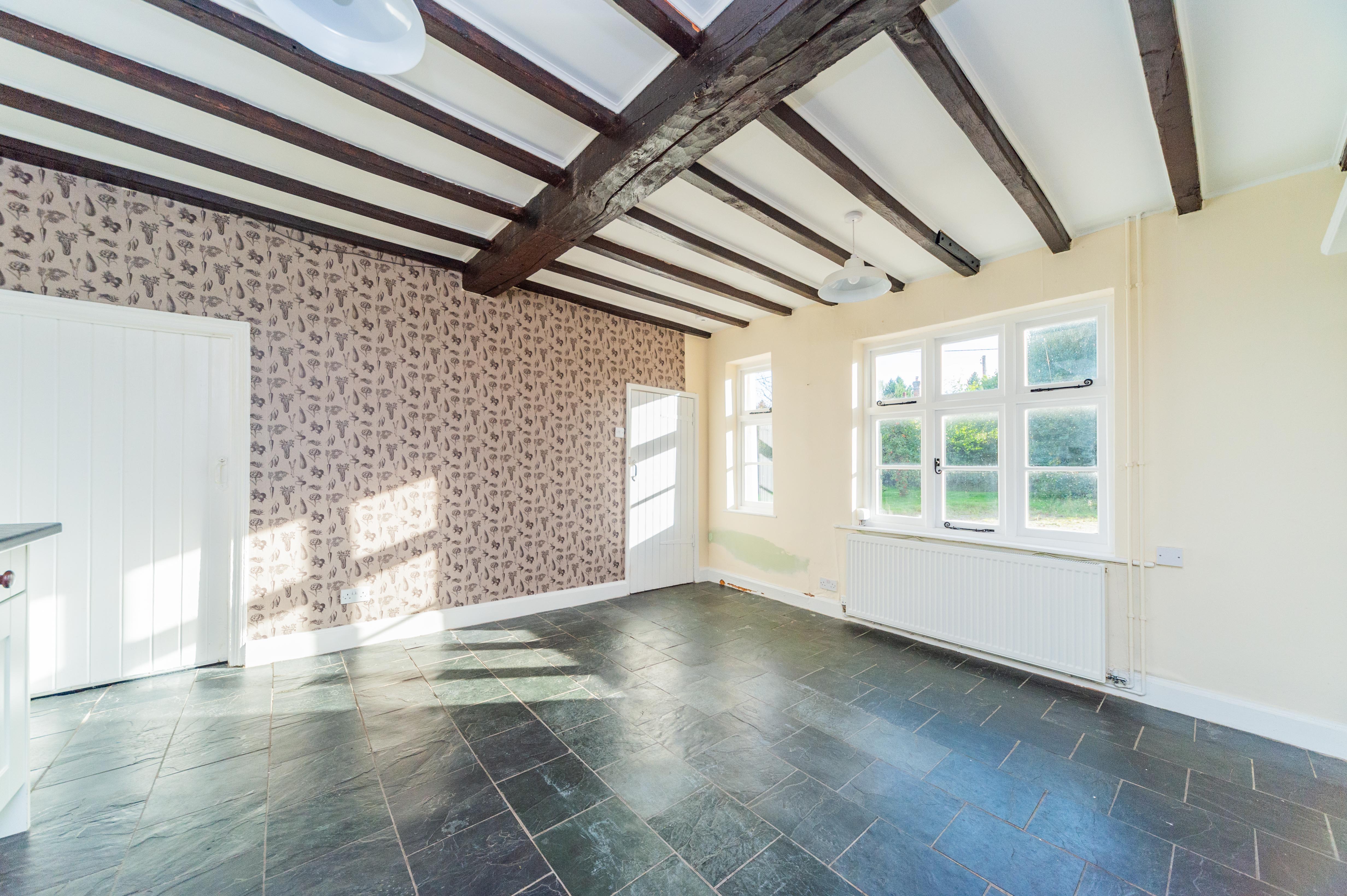 On entering Offley Hay Farm House, you are greeted with a light and airy hallway with access to either the sitting room on the right or kitchen to the left. The kitchen is of a country style with ample storage and retains character with wooden beams. Following through is the large utility and access to the kitchen courtyard. A WC follows with a reception room to the right which could be utilised as a snug, study or playroom. This leads through to the large sitting room which features a log burner. Access to the cellar is from the kitchen and is complete with electrics.