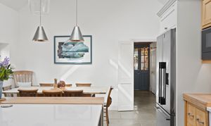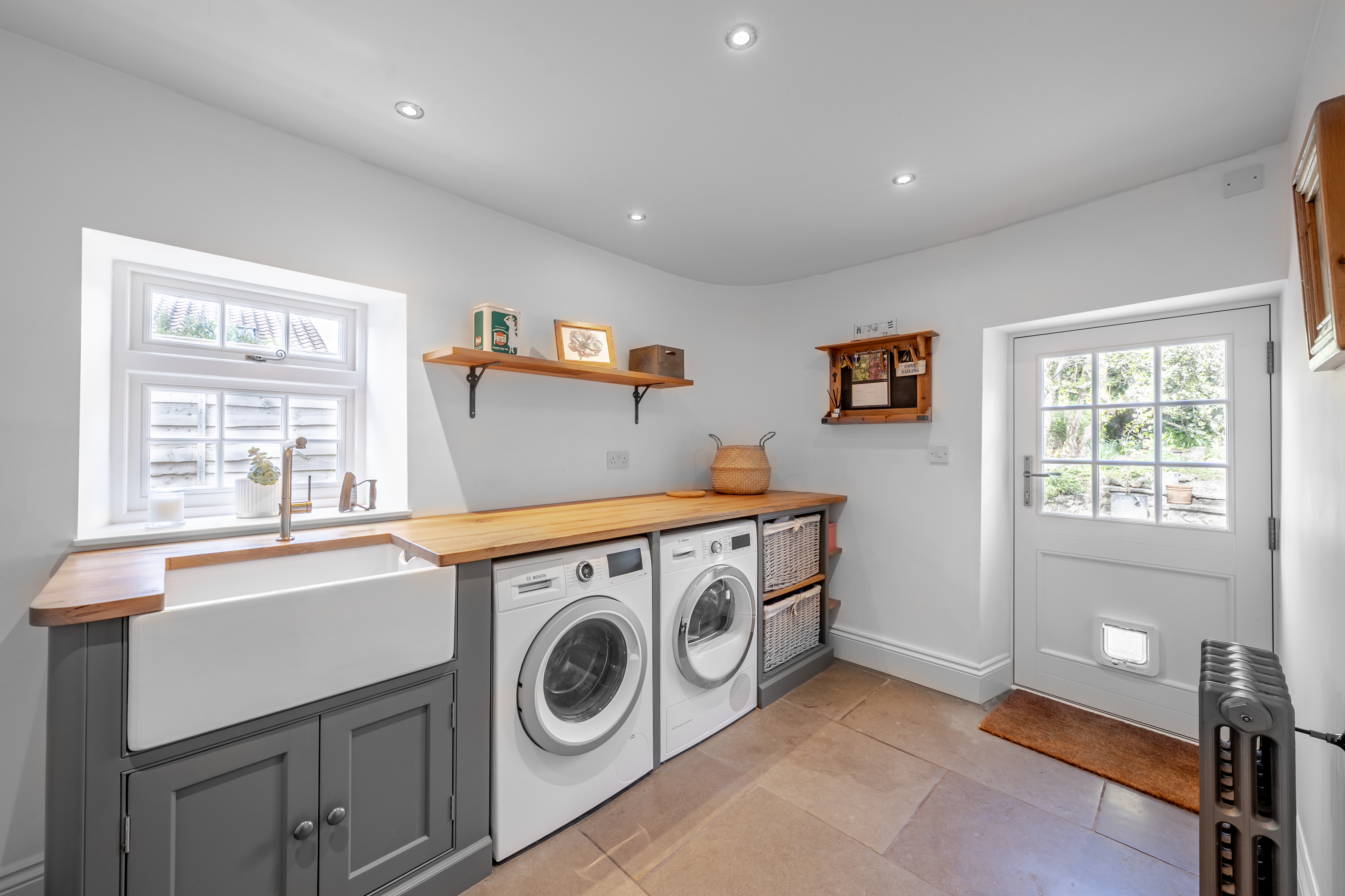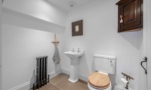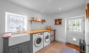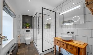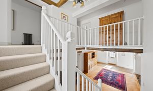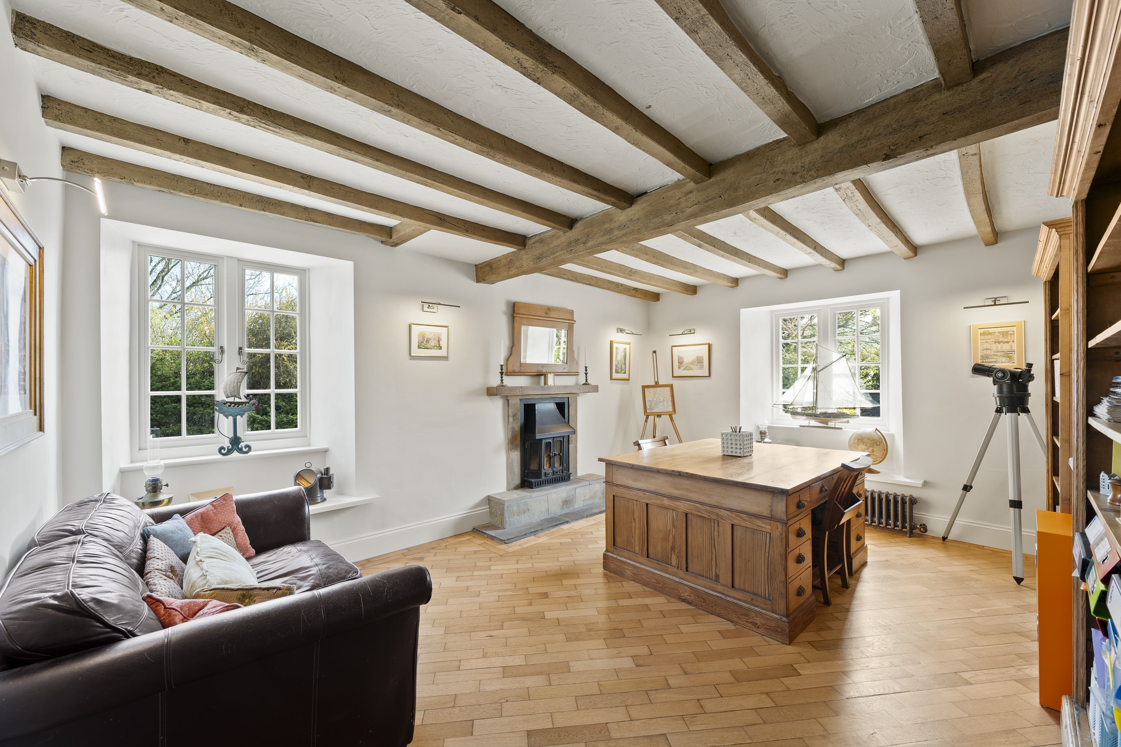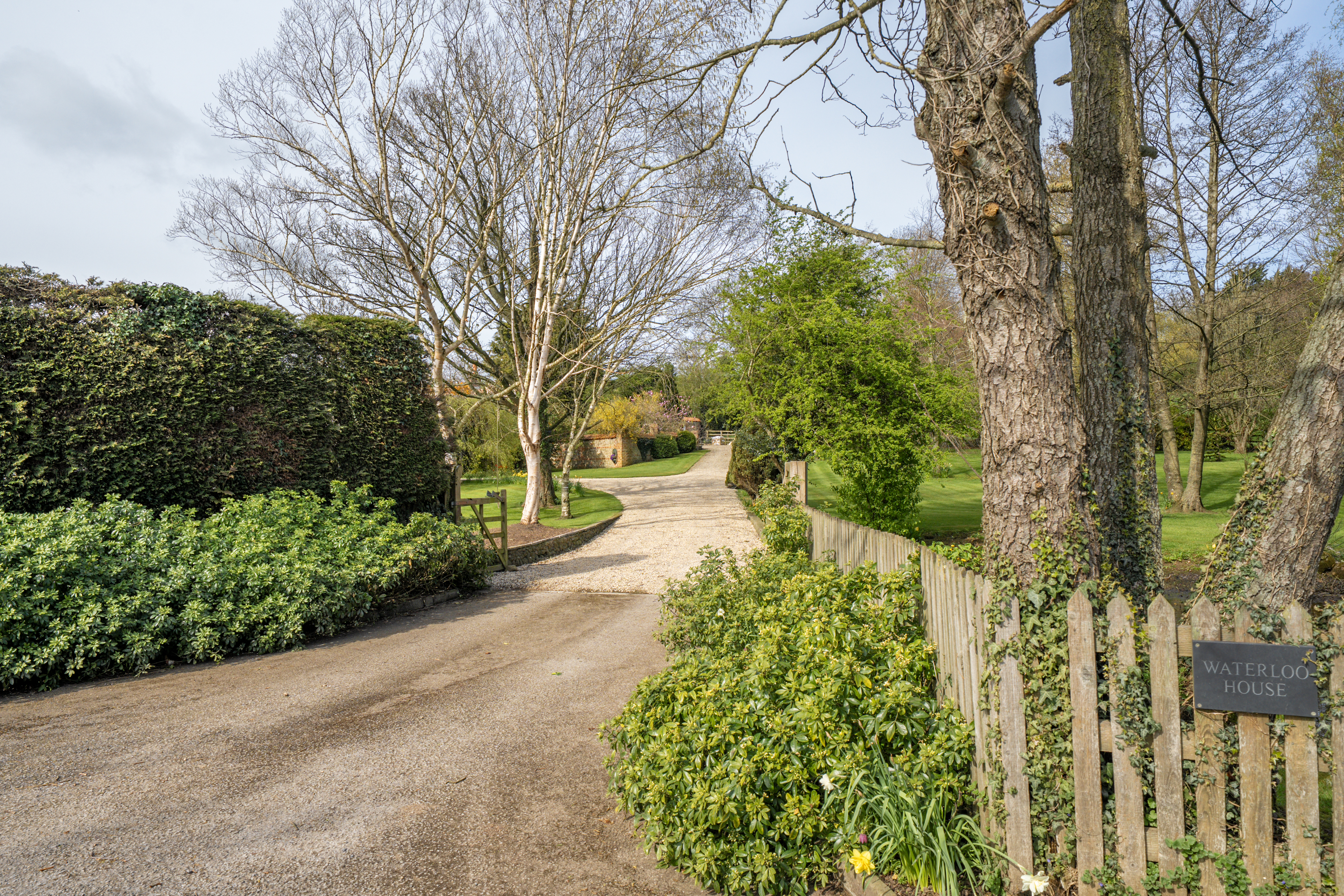 Approached via a long gravelled driveway that winds through beautifully established gardens, Waterloo House makes an immediate impression with its broad lawns, mature trees, colourful borders and two ornamental ponds that bring charm and tranquillity to the setting. Internally, the house has been comprehensively renovated over the past decade and now offers immaculately presented accommodation full of warmth, character and flexibility. A striking central reception hall forms the heart of the home, showcasing exposed beams, parquet flooring and an impressive fireplace, while the principal reception rooms each have their own distinct feel, including a superb drawing room of excellent proportions, a cosy study or formal dining room with feature fireplace, and a spacious family lounge with doors opening out to the gardens. The kitchen breakfast room is a standout space, finished with a large central island, ample fitted cabinetry, an Aga, vaulted ceiling with exposed trusses and skylights, creating a sociable and light-filled room perfectly suited to family life and entertaining alike. Complementing this are a practical boot room, stunning glazed pantry, utility and ground floor WC. The annexe wing is particularly well designed, comprising a bedroom with en-suite and adjoining lounge, ideal for dependent relatives, older children, guests, or those seeking multi-generational living. To the first floor, a bright galleried landing leads to four generous double bedrooms, including an impressive principal suite with fitted wardrobes and a stylish en-suite shower room with roll top bath, together with a beautifully appointed house bathroom.