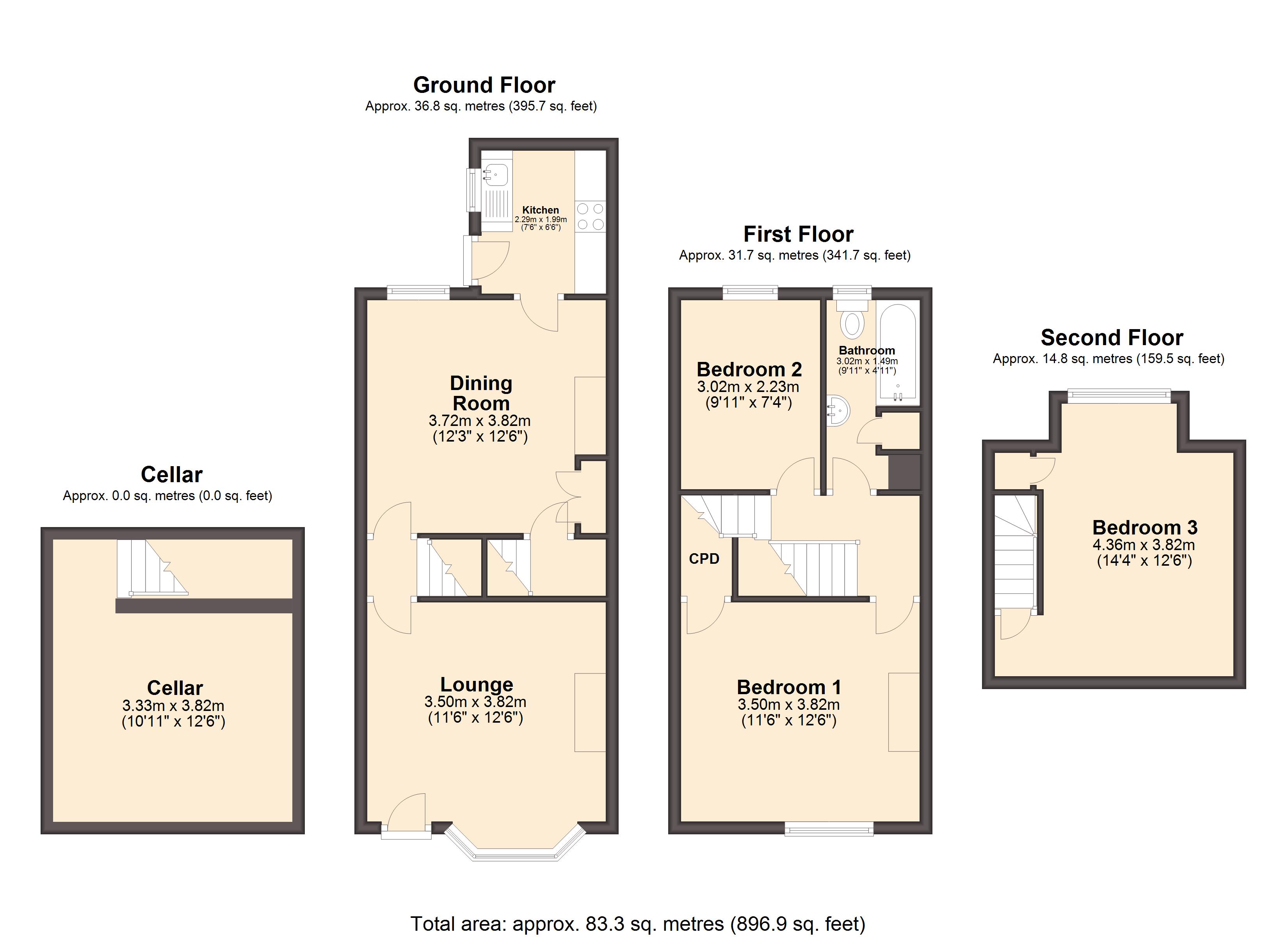 - Approx Sq Feet: 896 sqft
