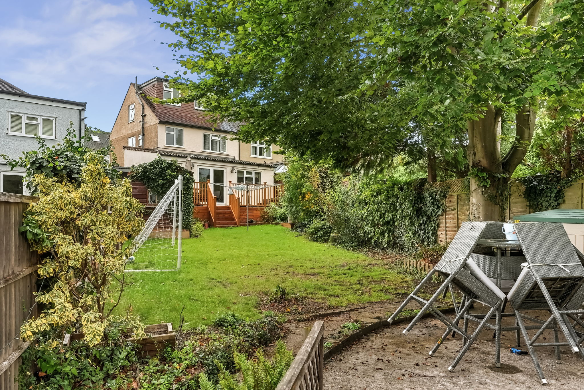 James Bailey is proud to present this incredible four bedroom semi-detached family home in Banstead. This lovely property has 1,547 square feet of living accommodation offering a double through reception room, a fully fitted kitchen with breakfast bar and direct access out to the decking and 164 ft. private garden. There is also on the ground floor a further reception/study room and a utility room and WC. On the first floor are two large double bedrooms, a further single bedroom and a modern family bathroom. The loft has been converted and provides a large bedroom and en-suite shower room. Further benefits include a music room and the driveway which is big enough for three cars.