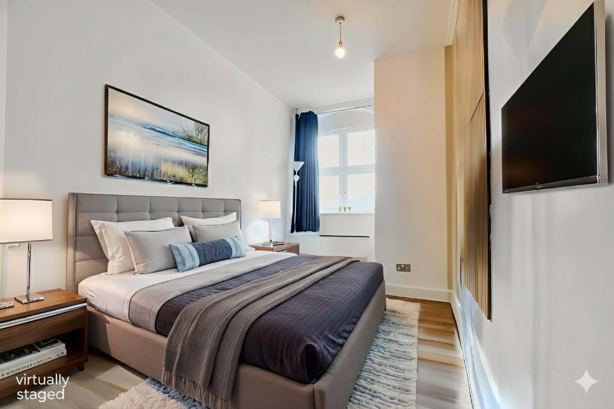 Irregular shape. With double glazed window to the front elevation, wood effect floor, TV point, built-in cupboard, electric wall heater.