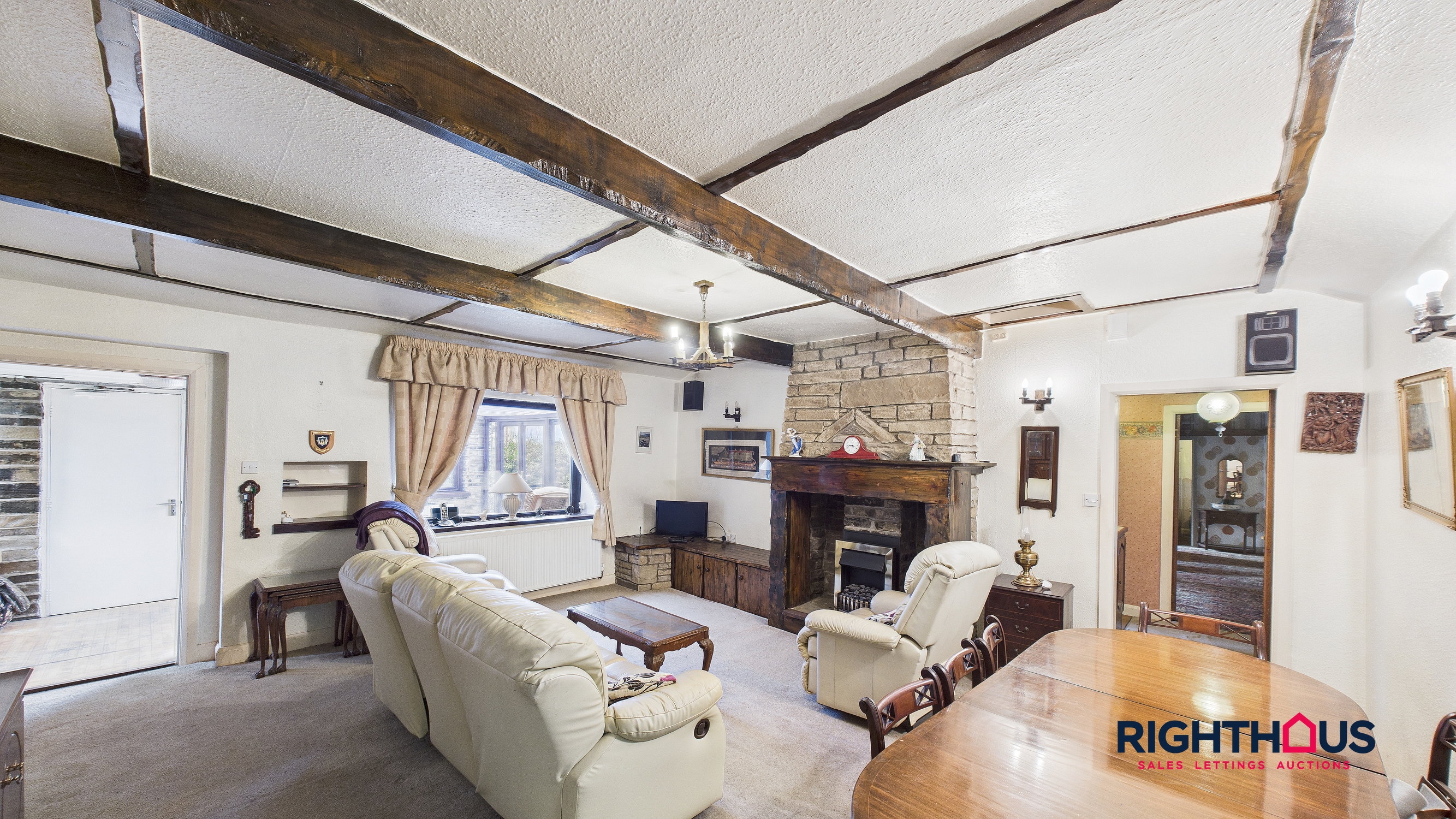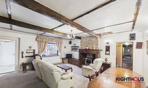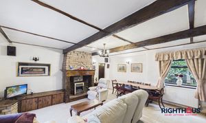 A particularly generous living room, the focal of which being a feature stone chimney breast with recess and timber surround together with matching Tv display plinth to alcove. Feature ceiling timber.