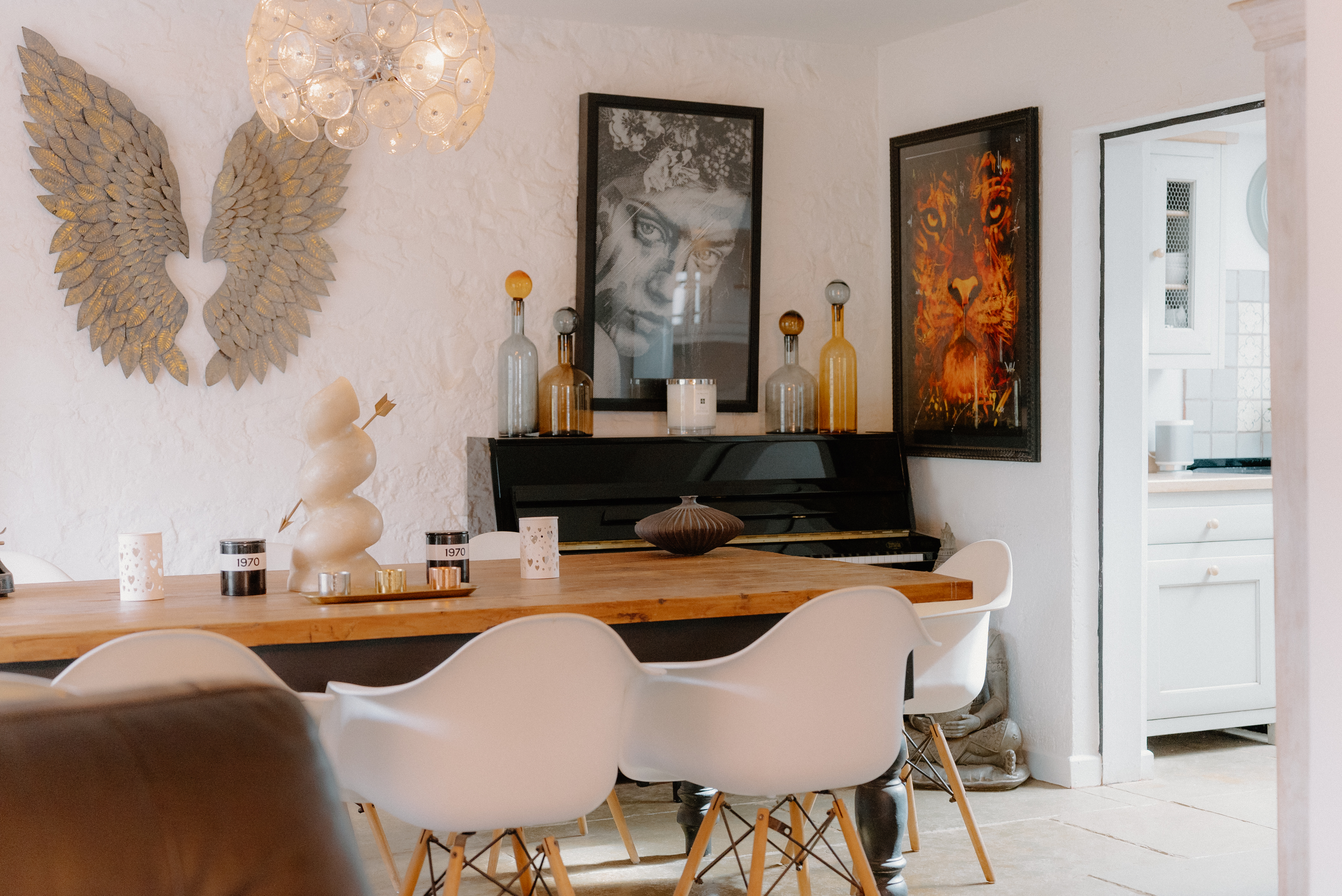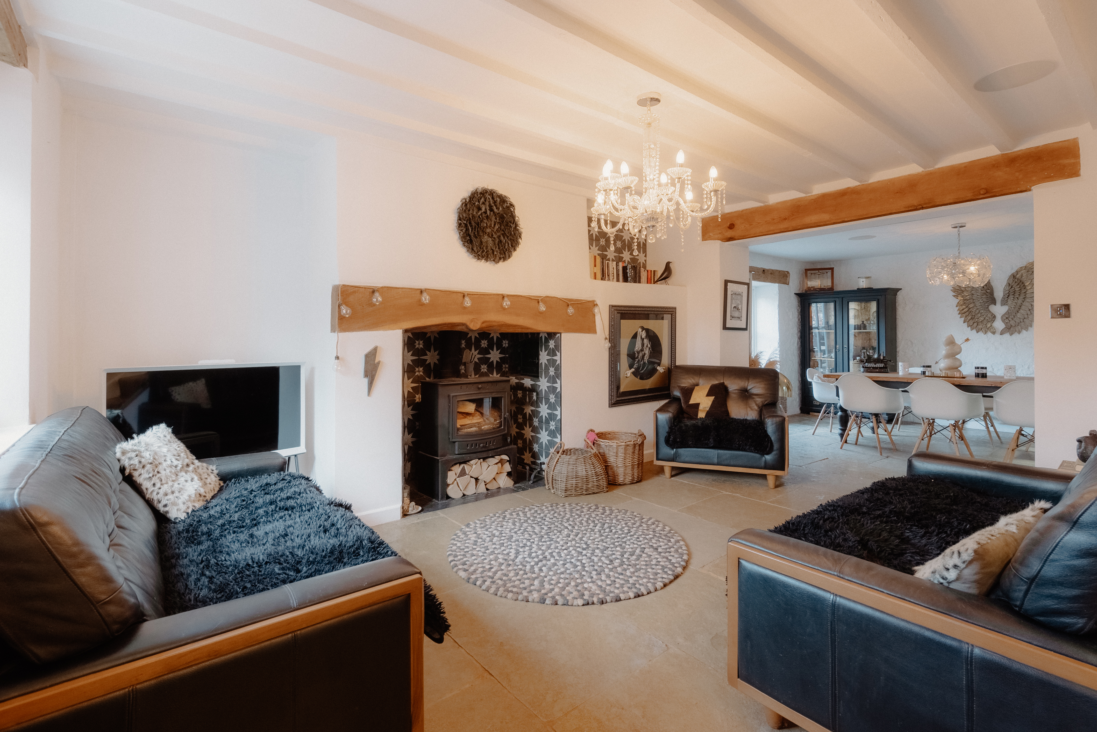 Sometimes the photos of a property and the reality don’t match up but on arrival you realise that this is everything you’d expect. The property is approached via a large gravel driveway, offering ample off-road parking and access through attractive wooden gates. The layout offers great space and a well-designed layout. Once through the useful (and pretty) entrance porch, you are into the living spaces. The striking oak and glass staircase leads up to the first floor from the sitting room where a window to the front offers views of the gardens, and the focal point of the room is a large fireplace with a wood burning stove, framed by a wooden beam over. The room is finished with tiled flooring and underfloor heating, and an archway leads into the elegant dining room which provides ample space for a large table and chairs, and a continuation of the flooring complete with wooden French doors that open out to a secluded gravelled al fresco dining area, enclosed by a beautiful stone wall. We love the way the property flows with a link though to the kitchen from the dining area. The kitchen is a true highlight of the home, with a stunning roof lantern allowing natural light to flood the space. The Fired Earth kitchen is complemented by solid wood worksurfaces, with the area beneath the lantern featuring a double Belfast sink, an integral washing machine, and dishwasher. The kitchen also benefits from wall and base cupboards that continue to include a convenient breakfast bar. Further units and large wooden worktops extend the kitchen space, with tiled flooring, underfloor heating, and a radiator with plenty of room for entertaining and space for the most committed chefs! There’s a useful downstairs cloakroom, which features a Fired Earth countertop basin and vanity unit, tiled walls and floors with underfloor heating and a WC.