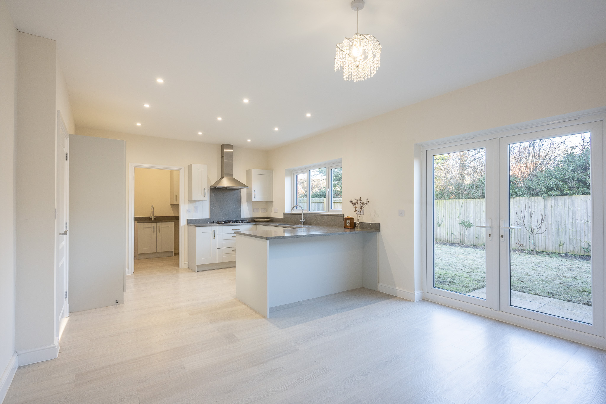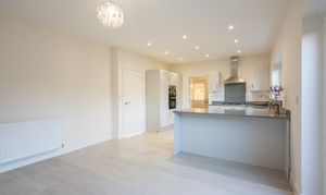 The heart of the home is the contemporary open plan kitchen and dining area, thoughtfully designed to accommodate both every-day living and social occasions, with ample room for a large dining table and direct access to the adjoining utility room for added convenience.