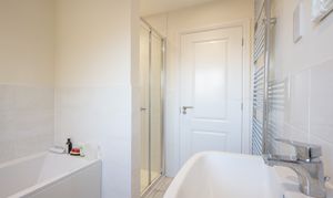 The family bathroom is well-appointed and complements the overall sense of comfort and functionality found throughout the home.