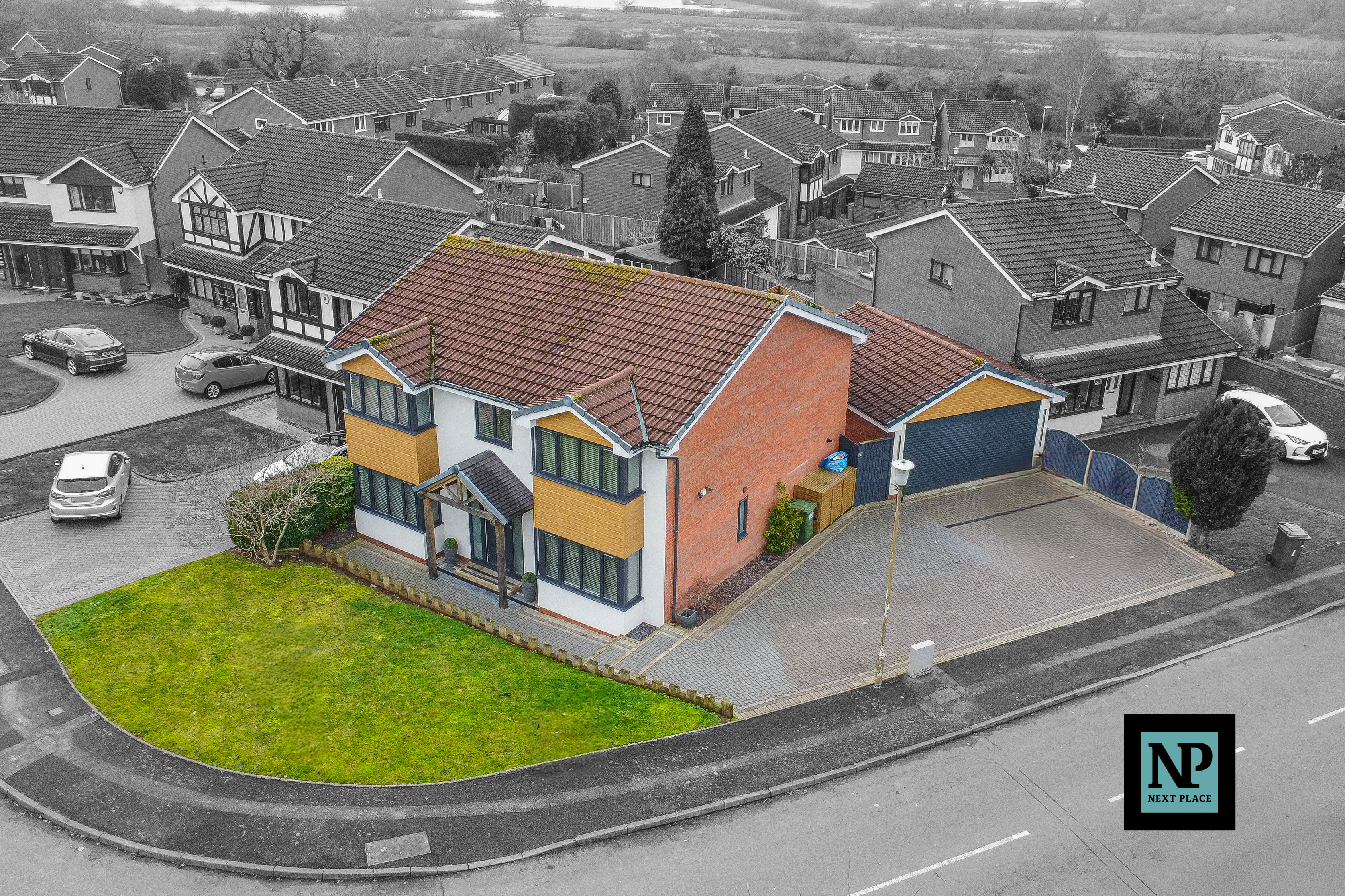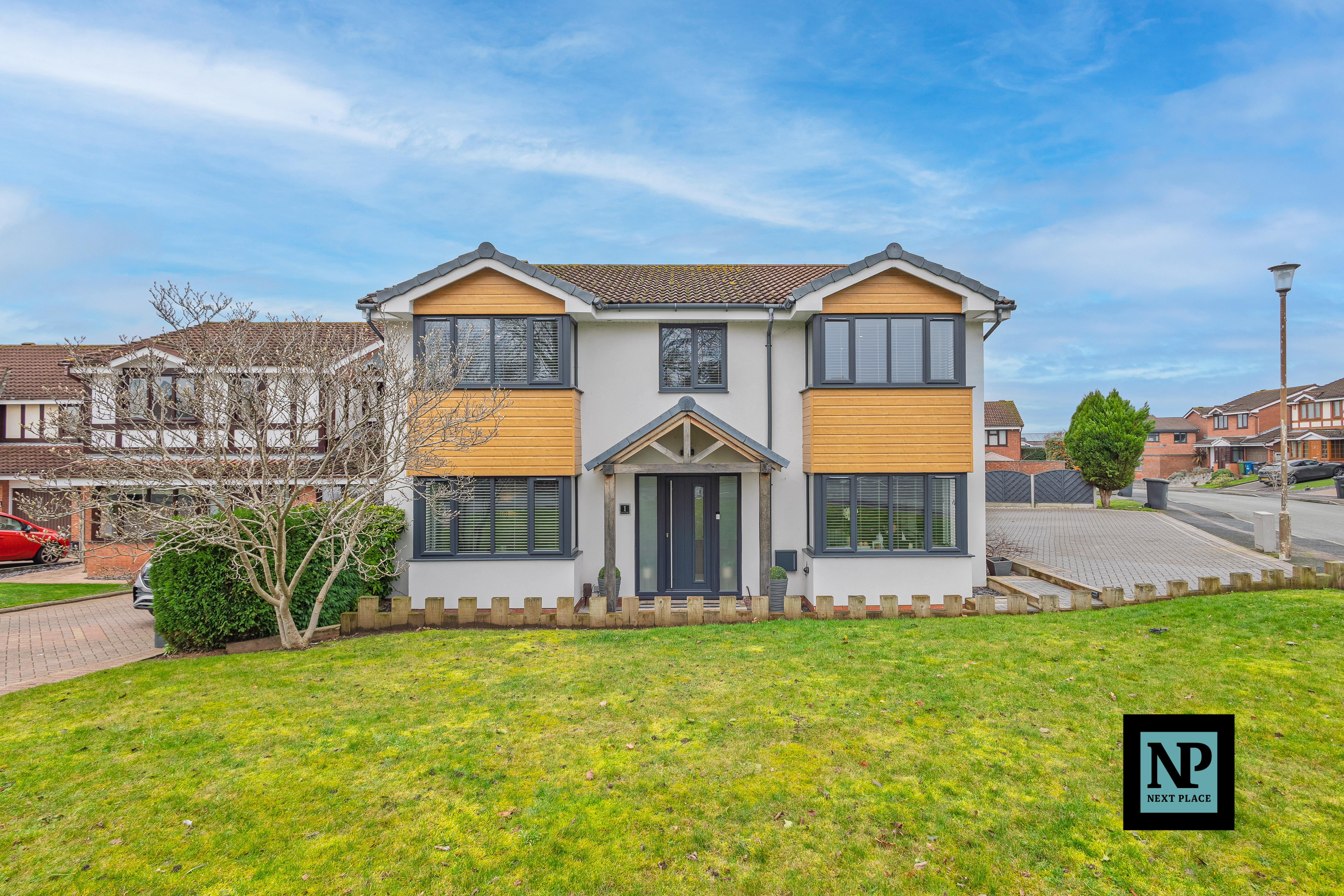 Next Place Property Agents Proudly presented for sale is this exceptional, heavily extended four-bedroom detached residence, occupying a prominent corner plot on one of the area’s most sought-after roads. Finished to an immaculate, show-home standard throughout, this outstanding property offers a rare opportunity to acquire a substantial family home where space, quality and design come together effortlessly.