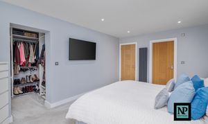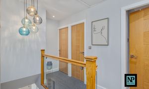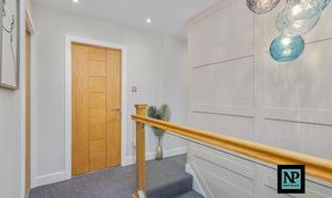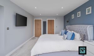 Upstairs, the property continues to impress with four generous double bedrooms. Two of the principal bedrooms benefit from large, contemporary en-suite bathrooms, finished to an exacting standard. The main master bedroom also features a walk-in wardrobe, creating a luxurious private retreat. A beautifully appointed family bathroom completes the first floor.